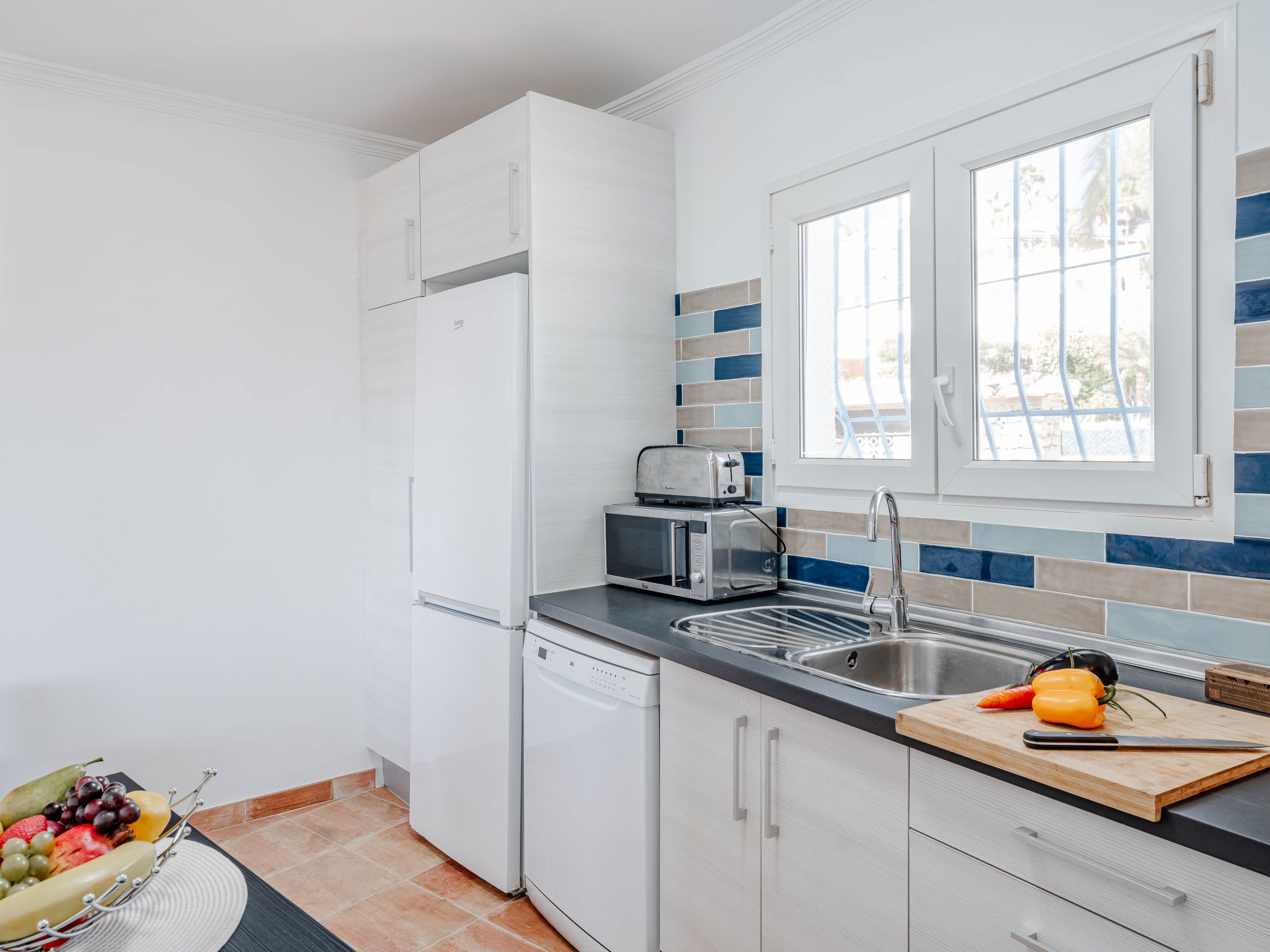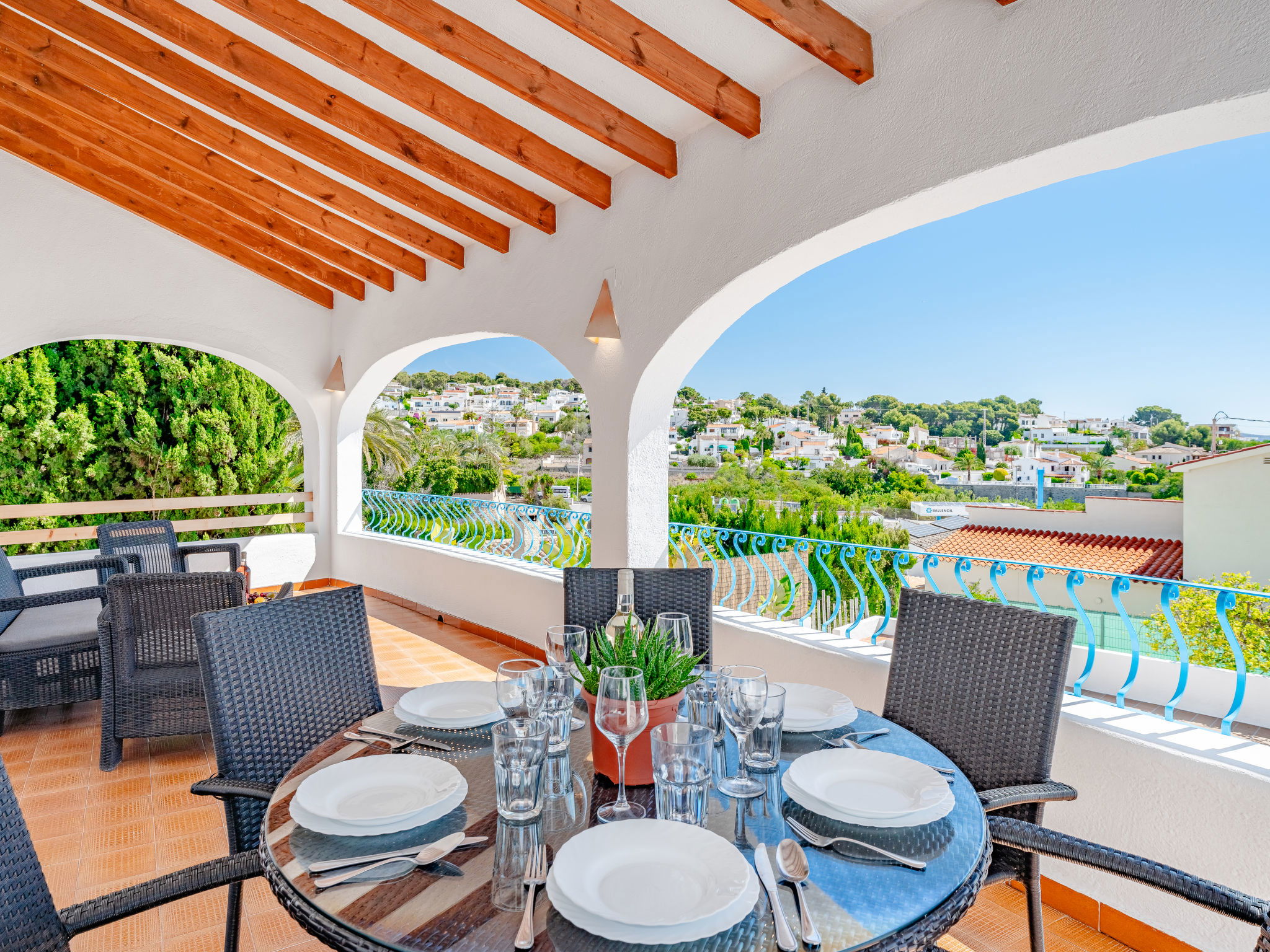 La Fustera: Villa "Luisa". 5.5 km from the centre of Calpe, 600 m from the sea. Private: property 800 m2, garden, swimming pool (4 x 8 m, seasonal availability: 01.Jan. - 31.Dec.). Outdoor shower. Supermarket, restaurant, bar 250 m, bus stop "Estación Bus" 5.6 km, railway station "Estación Tren Calp" 7.2 km, sandy beach 600 m. Nearby attractions: Aqualandia, Mundormar, Terra Mítica, Terra Natura, y Benidorm Palace (Benidorm). Barbecue house with bread oven. Table tennis.