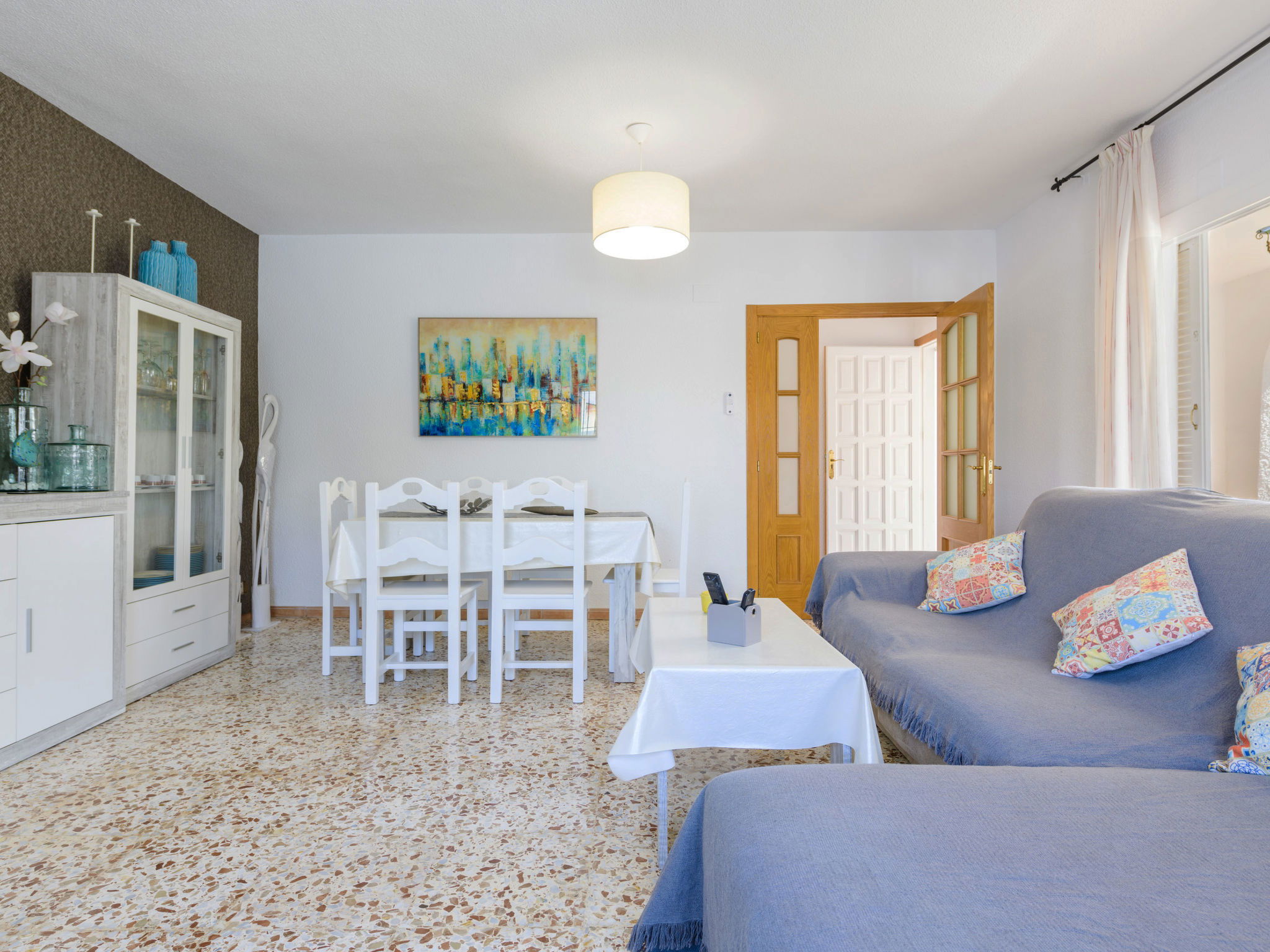 Costa Norte 5 km from Centro Vinaros: Cosy villa "Villa Lolin", detached, renovated in 2023. In the district of Zona Norte 5 km from the centre of Vinaròs, 25 km from the centre of Peñiscola, in the residential district, 500 m from the sea, 800 m from the beach, in a cul-de-sac. Private: property 558 m2 (fenced) with lawn and trees, lawn for sunbathing (fenced), beautiful garden to relax, swimming pool (8 x 4 m, depth 150 cm, seasonal availability: 01.Jan. - 31.Dec.). Outdoor shower, barbecue, pool maintenance by the owner/gardener. Narrow motor access. Parking (for 2 cars) on the premises. Supermarket 400 m, restaurant, café 400 m, bus stop "C/ 29 septiembre, Vinaròs" 3 km, railway station "Vinaròs" 4.6 km, sandy beach "Playa de Colón / Fora del Forat" 3 km, shingle beach "Playa Barbiguera" 800 m. Sports harbour 4 km, golf course (18 hole) 17 km. Nearby attractions: Peñiscola 23 km, Delta del Ebro 19 km, Museo Ciencia y Artes Valencia 155 km, Ermita de Vinaros 8 km, Golf Panoramica 17 km. Hiking paths: La Foradada del Montsia 19 km, Pantano Senia 33 km. Please note: no lift. Suitable for families. Object suitable for 6 adults. Loading and unloading of baggage is possible at the holiday house.