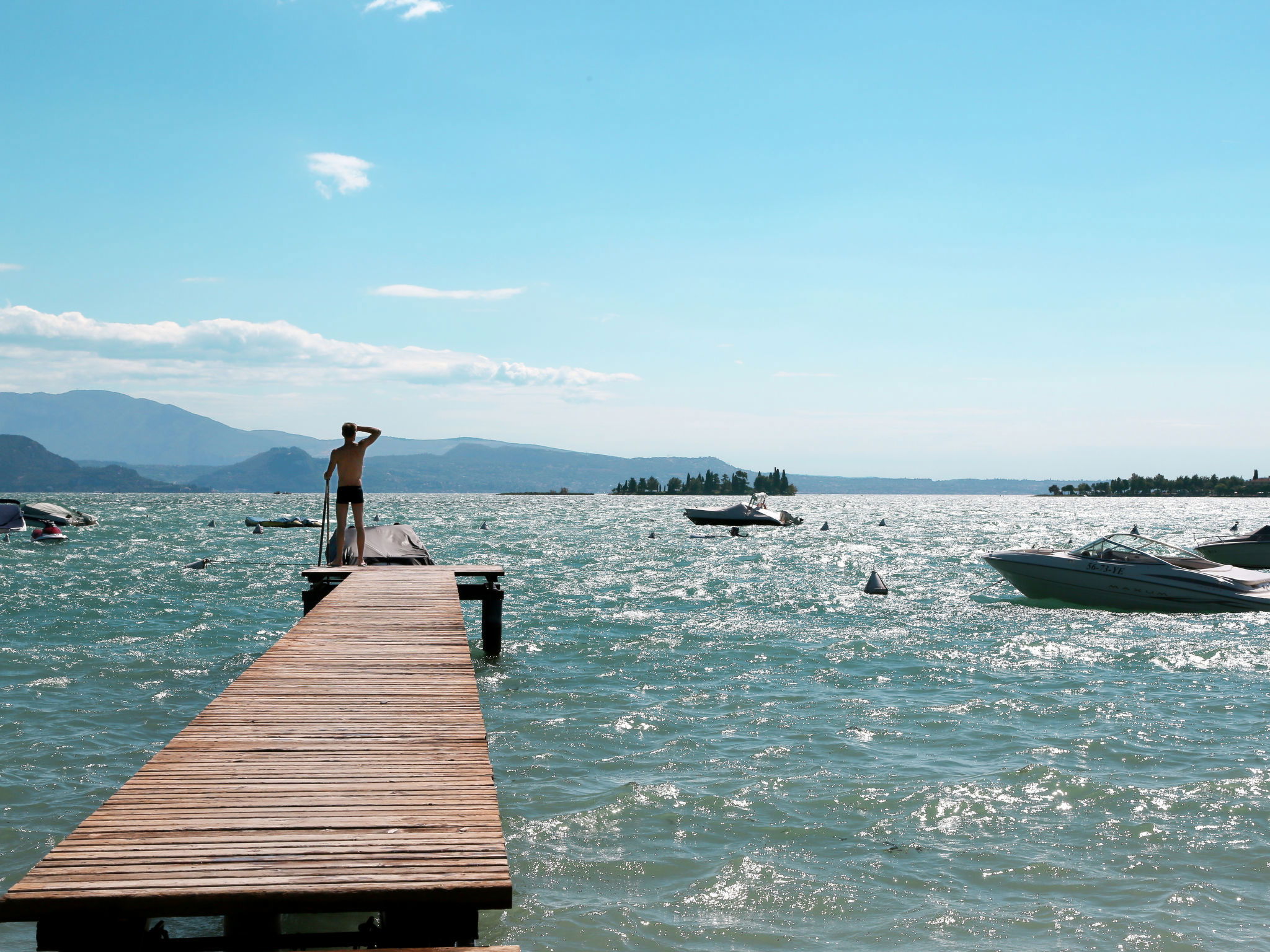 Large, child friendly resort "Sanghen". In the district of Pieve di Manerba 3.5 km from the centre of Manerba del Garda, on a slope, 250 m from the lake, 250 m from the beach, direct access to the beach. For shared use: property 70'000 m2 (fenced), trees, lawn for sunbathing, 3 swimming pools (seasonal availability: 01.May. - 30.Sep. and 01.Jul. - 31.Aug. pool opening hours: 08:30-13:00 and 15:30-19:30). Children's pool, outdoor shower, hot tub, tennis, children's playground. In the complex: reception, restaurant, bar, WiFi, washing machine (extra), tumble dryer (for shared use, extra). Bread roll service, breakfast and half board possible (extra). Stepped path to the house. Parking (limited number of spaces) on the premises. Bus stop 50 m, pebble beach 250 m. Golf course (27 hole) 6 km. Nearby attractions: Salò 9 km, Desenzano del Garda 15 km, Brescia 38 km. Please note: entertainment in the season. Suitable for families. Private mooring (extra) on request.