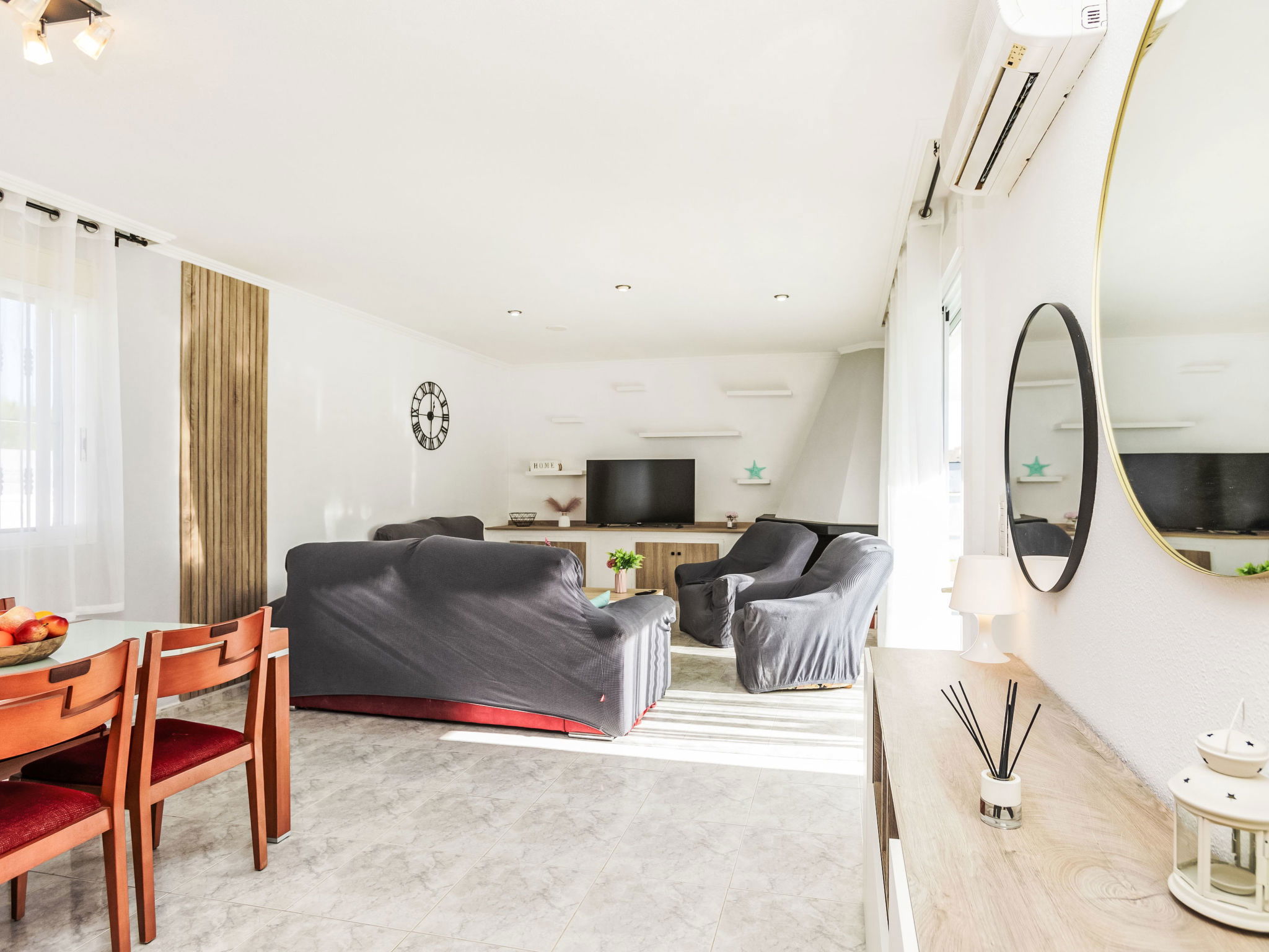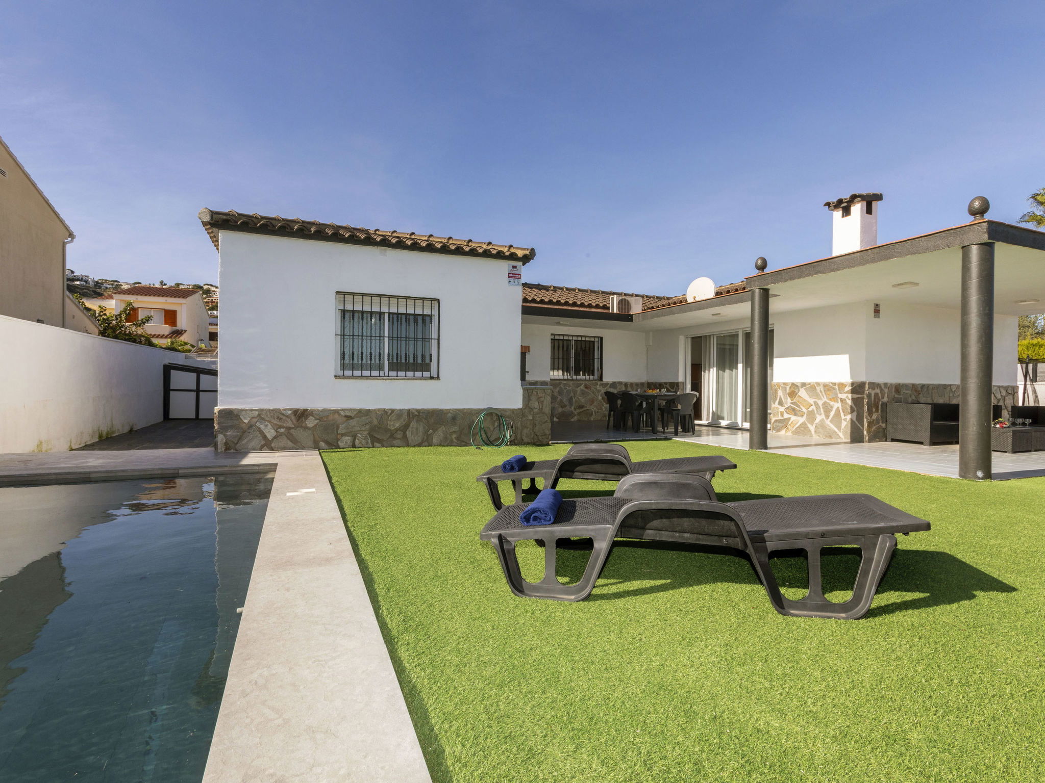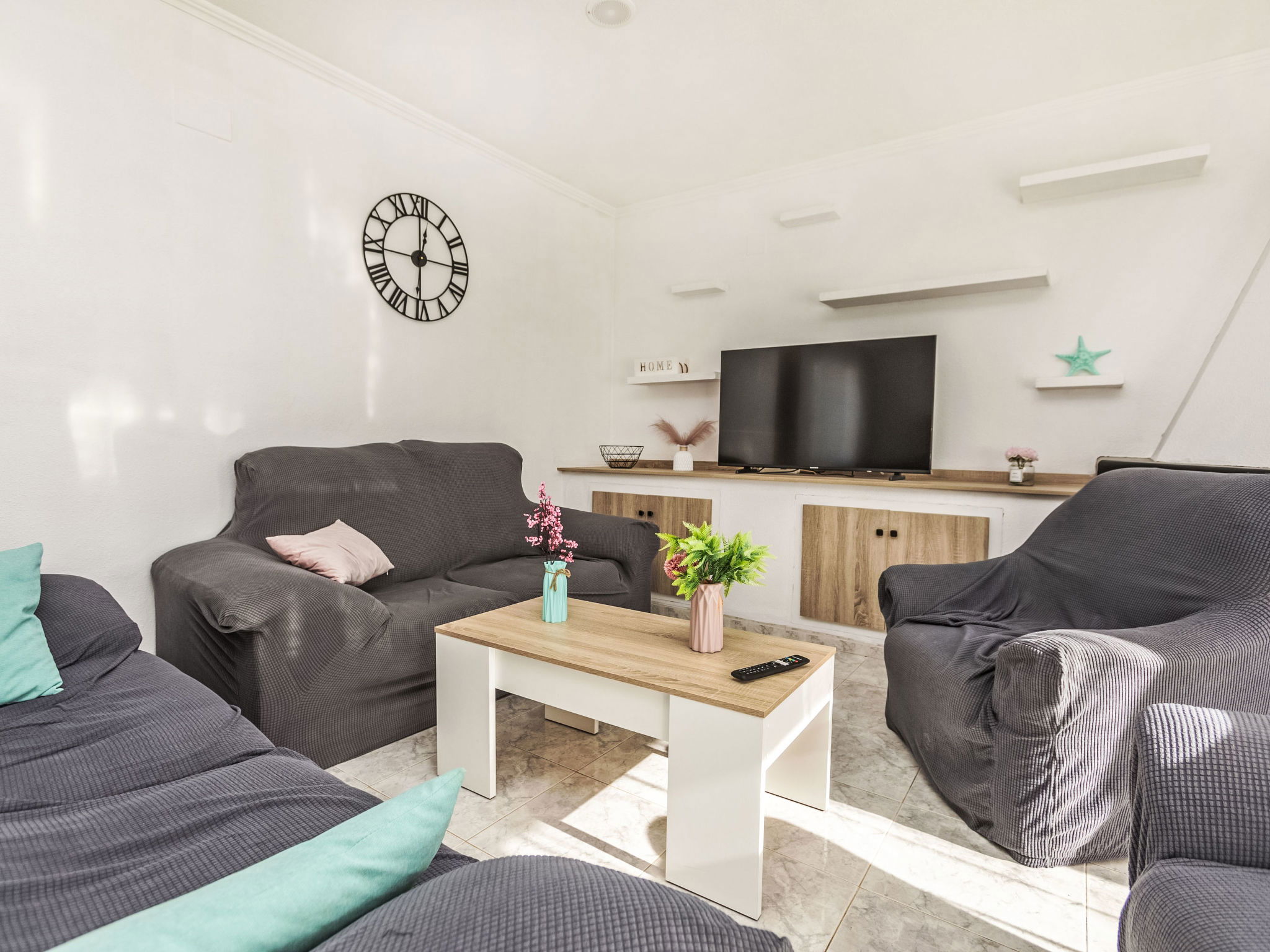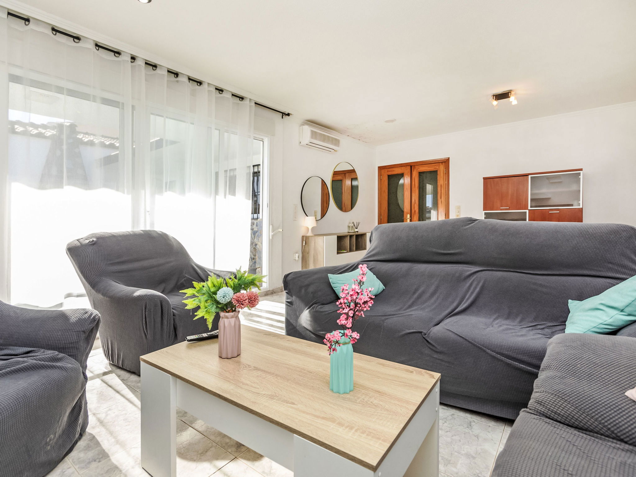 "Villa Miami", 5-room house 170 m2, on the lower ground floor. Practical and comfortable furnishings: living/dining room with dining table, digital TV, air conditioning and forced-air heating. Exit to the terrace, to the patio. 2 rooms, each room with 2 beds (90 cm, length 190 cm), air conditioning and forced-air heating. 2 rooms, each room with 1 french bed (1 x 135 cm, length 190 cm), air conditioning and forced-air heating. Large kitchen (oven, 4 ceramic glass hob hotplates, toaster, microwave, electric coffee machine). Bath/WC, shower/WC. Patio. Terrace furniture, deck chairs. No view. Facilities: washing machine, iron, hair dryer. Internet (WiFi, free). Parking. Please note: non-smoking house. 1 small pet/ dog allowed. TV only ES. The pool mentioned in the description is for private use. VT-42794CS // Reg. Nr.: ESFCTU000012009000917627000000000000000000VT-42794CS9