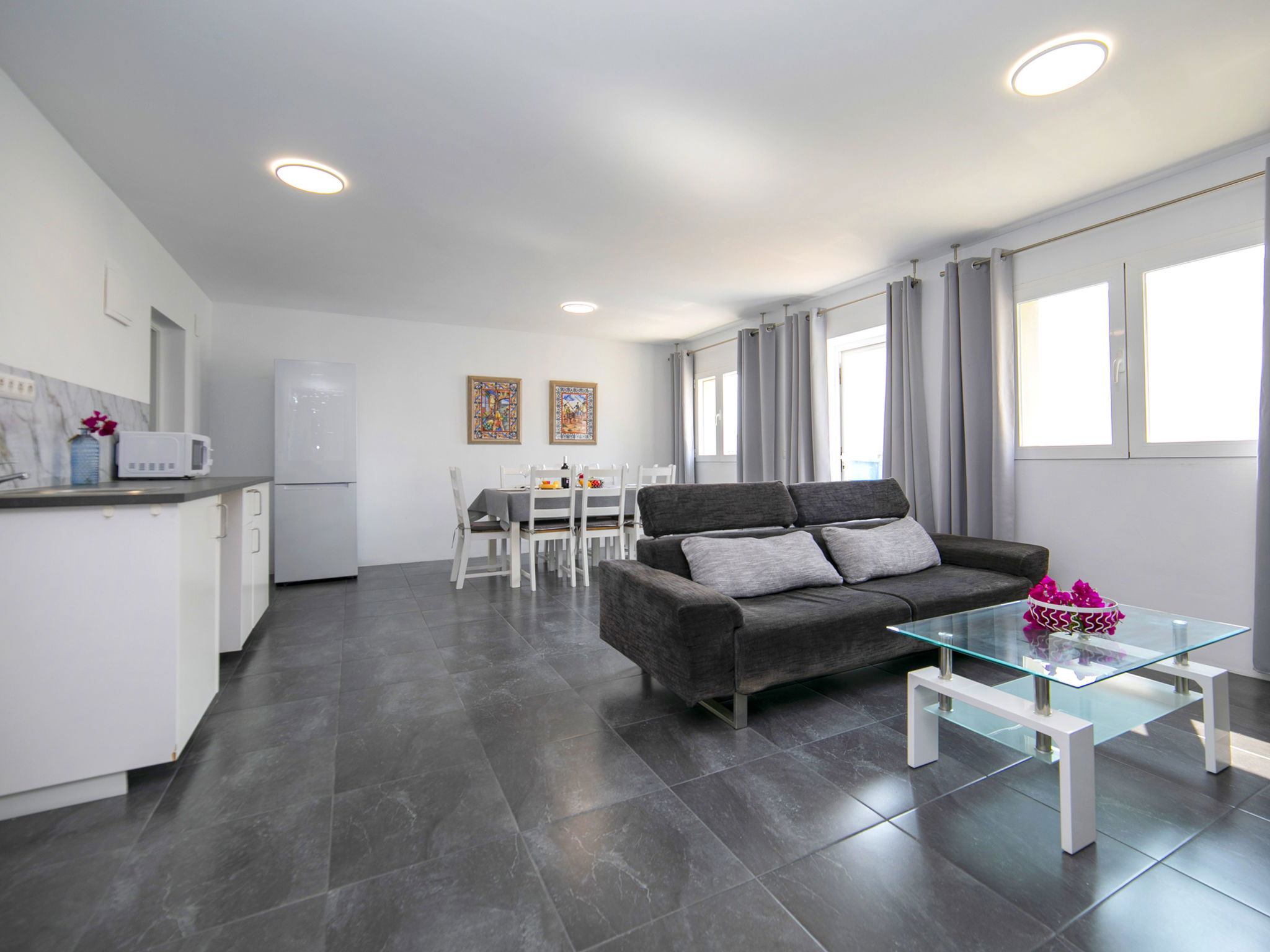 "Guadalete", 7-room villa 282 m2 on 2 levels, south facing position. Renovated in 2025, comfortable and modern furnishings: living/dining room with digital TV, air conditioning and forced-air heating. 1 room with 1 french bed (150 cm, length 190 cm). 1 room with Dressing room with 1 french bed (160 cm, length 190 cm), bath/shower/WC, air conditioning and forced-air heating. Kitchen (oven, dishwasher, 3 ceramic glass hob hotplates, toaster, kettle, microwave, freezer, electric coffee machine). Shower/WC. On the lower ground floor: living/dining room with dining table, kitchen corner, digital TV, air conditioning and forced-air heating. Exit to the patio. 1 room with 2 beds (90 cm, length 190 cm), fan. 1 room with 1 double bed (2 x 90 cm, length 190 cm), fan. Kitchenette (microwave). Shower/WC. Terrace furniture, barbecue, deck chairs, sitting area. Facilities: washing machine, iron, children's high chair, baby cot for up to 2 year olds, hair dryer. Internet (WiFi, free). Parking (fenced 3 cars), garage (1 car). Maximum 1 pet/ dog allowed. VT-516432-A // Reg. Nr.: ESFCTU00000302900050021800000000000000000VT-516432-A8