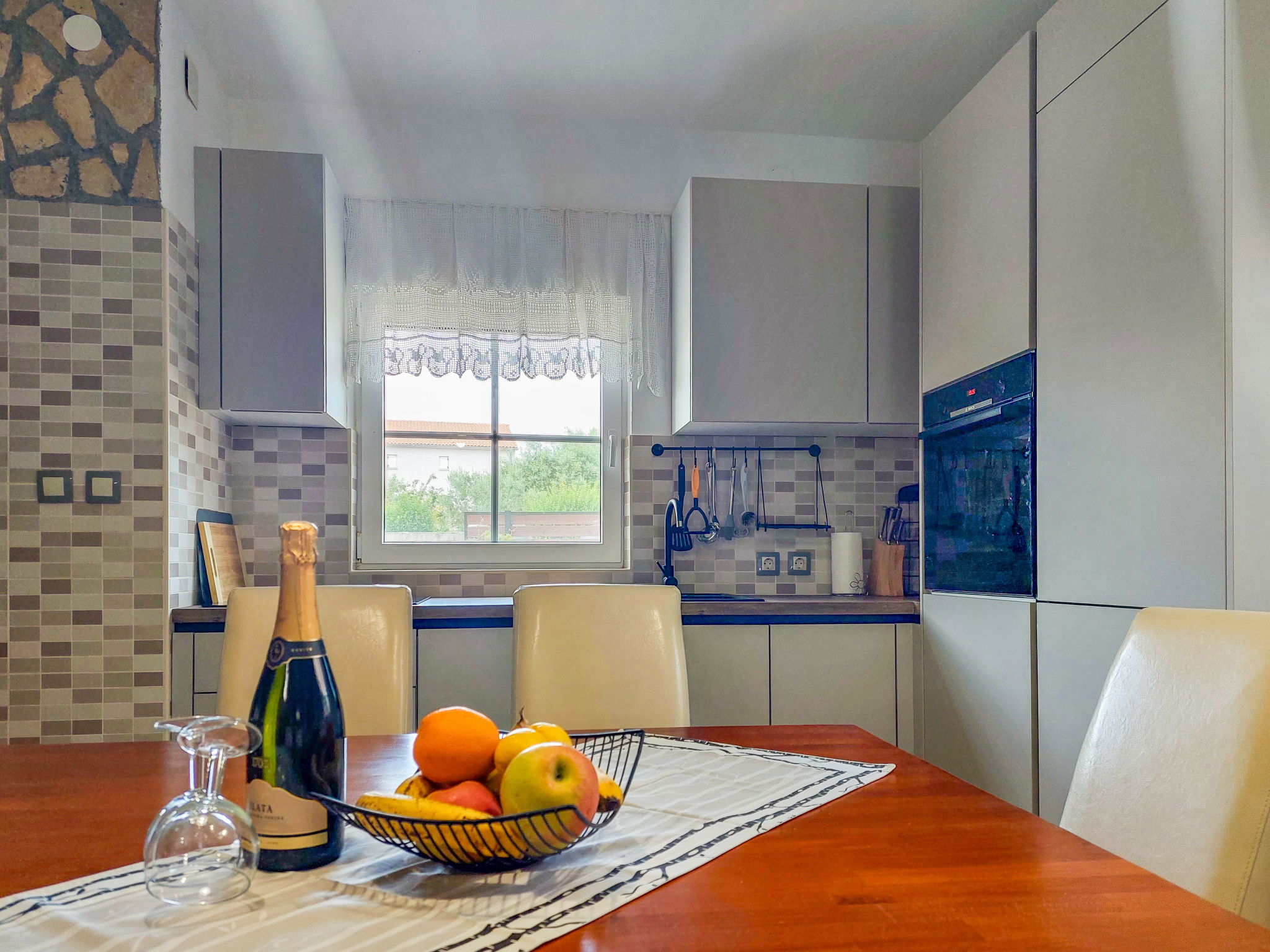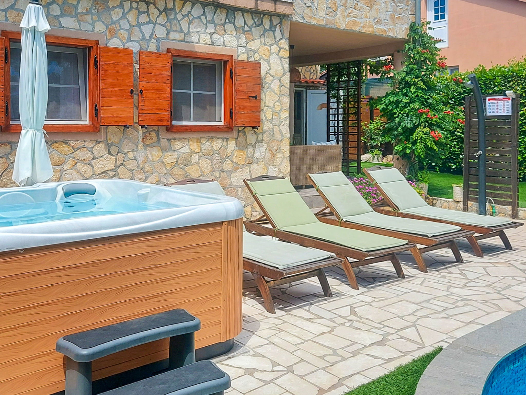 House "Mikac", 2 storeys. In the hamlet Županje 12 km from the centre of Malinska, 3 km from the centre of Šilo, 13 km from the centre of Vrbnik, 3.1 km from the sea, 3.1 km from the beach. Private: property 400 m2 (fenced), swimming pool (7 x 3 m, depth 120 cm, seasonal availability: 15.Mar. - 15.Nov.). Outdoor shower, hot tub, terrace (9 m2), garden furniture, barbecue, pool maintenance by the owner/gardener. In the house: internet access, sauna, washing machine. Parking (for 5 cars) on the premises. Shop 1.4 km, bus stop 3.5 km, sandy beach 4 km pebble beach 3.1 km. The owner does not accept any youth groups. Please note: the owner lives in the same residence. Airfield 16 km from the property. The owner lives in an apartment on the upper floor.