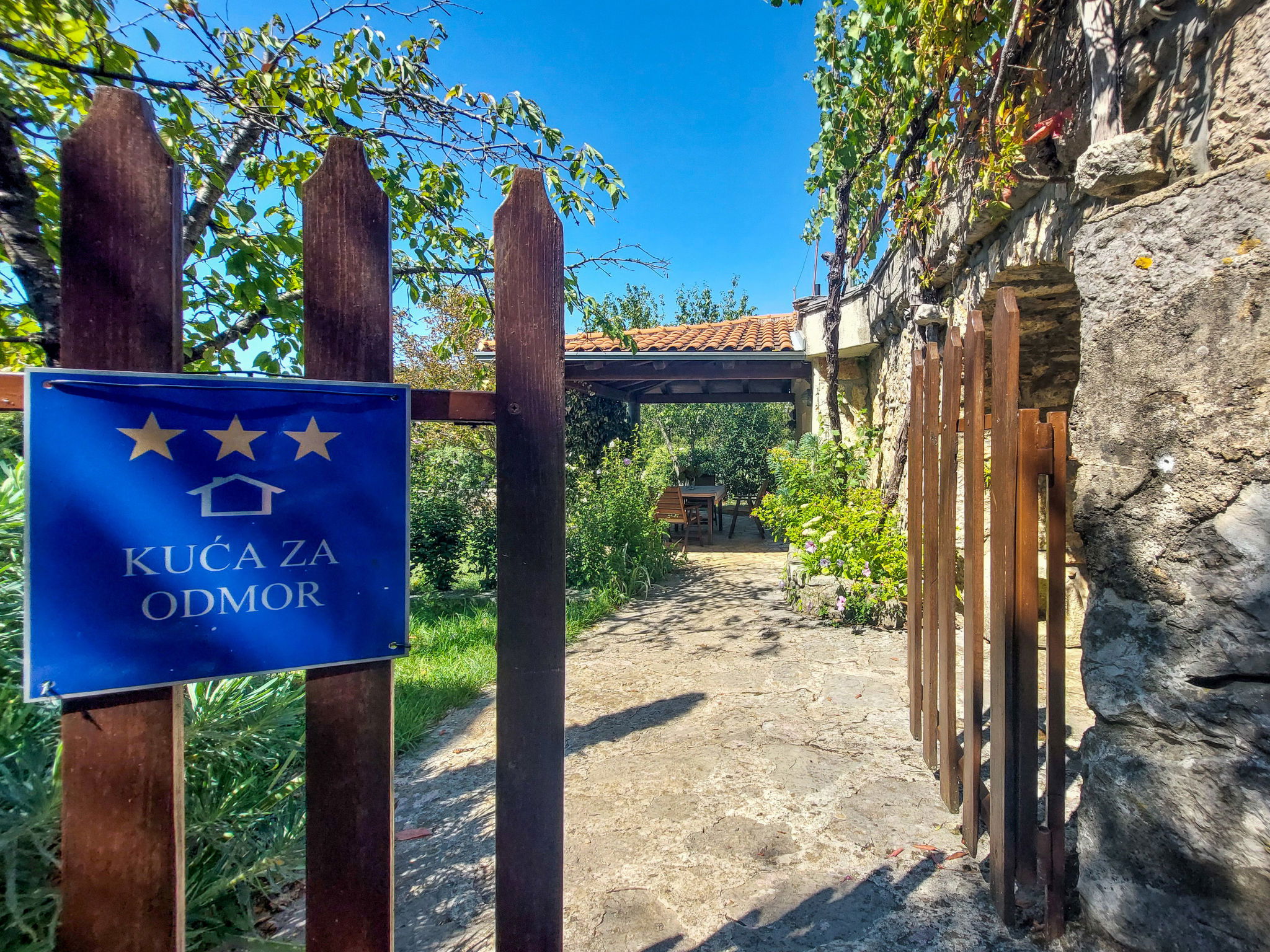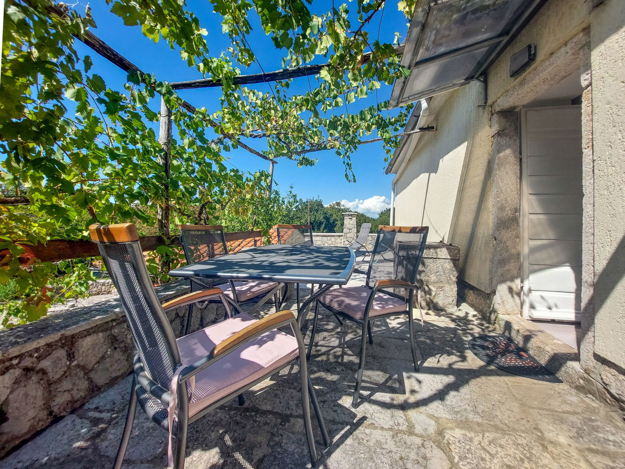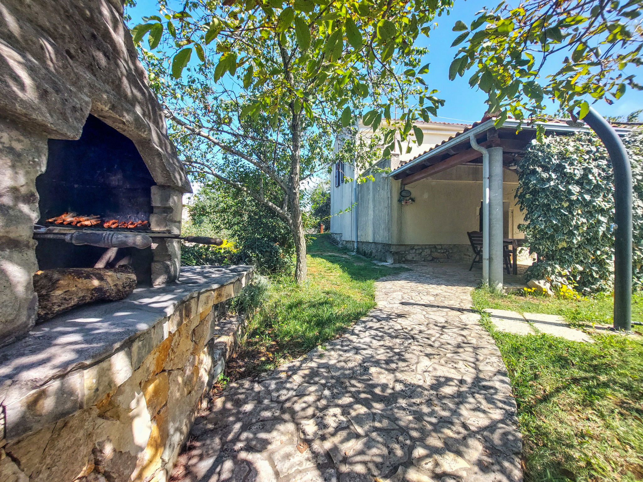 Single-family house "Ljudevit", 2 storeys. 13.5 km from the centre of Malinska, 450 m from the centre of Polje, 13 km from the centre of Vrbnik, 2.5 km from the sea, 2.5 km from the beach. Private: property 1'500 m2 with trees, meadow. Outdoor shower, barbecue, children's playground (swing). In the house: internet access, washing machine. Parking (for 3 cars) on the premises. Shop 450 m, bus stop 1.8 km, sandy beach 2.5 km. Please note: airfield 17 km from the property.