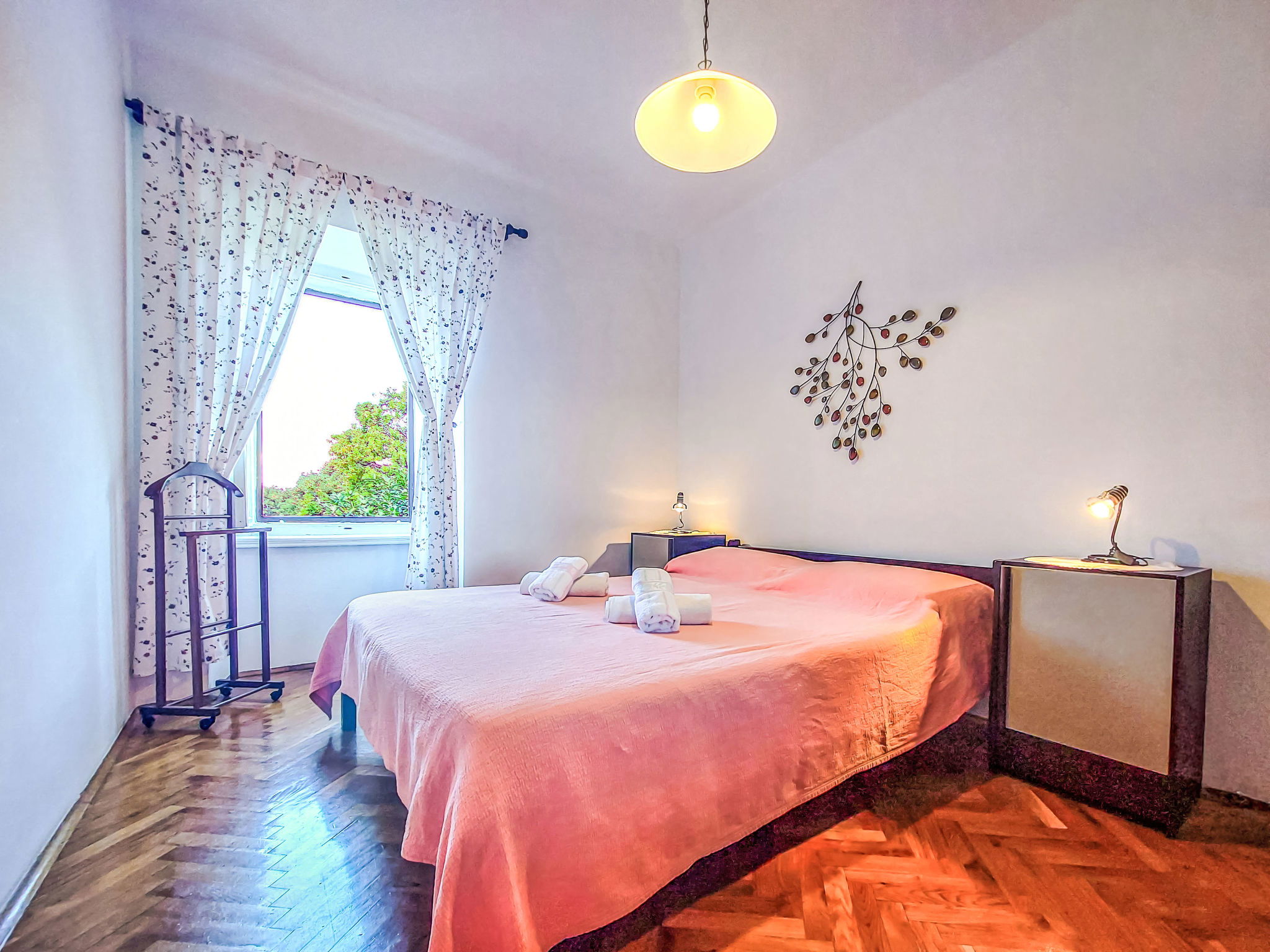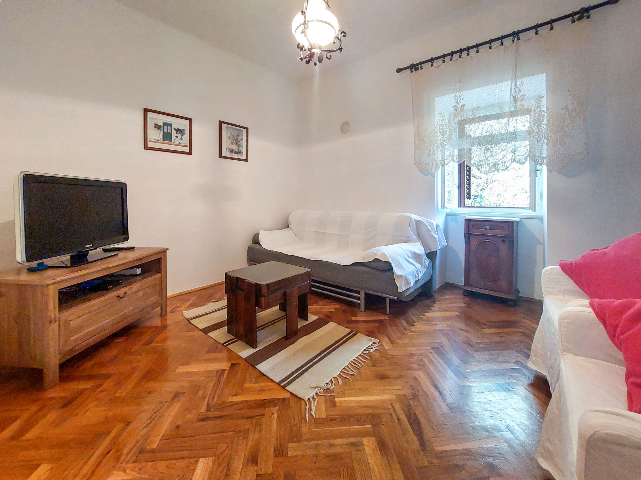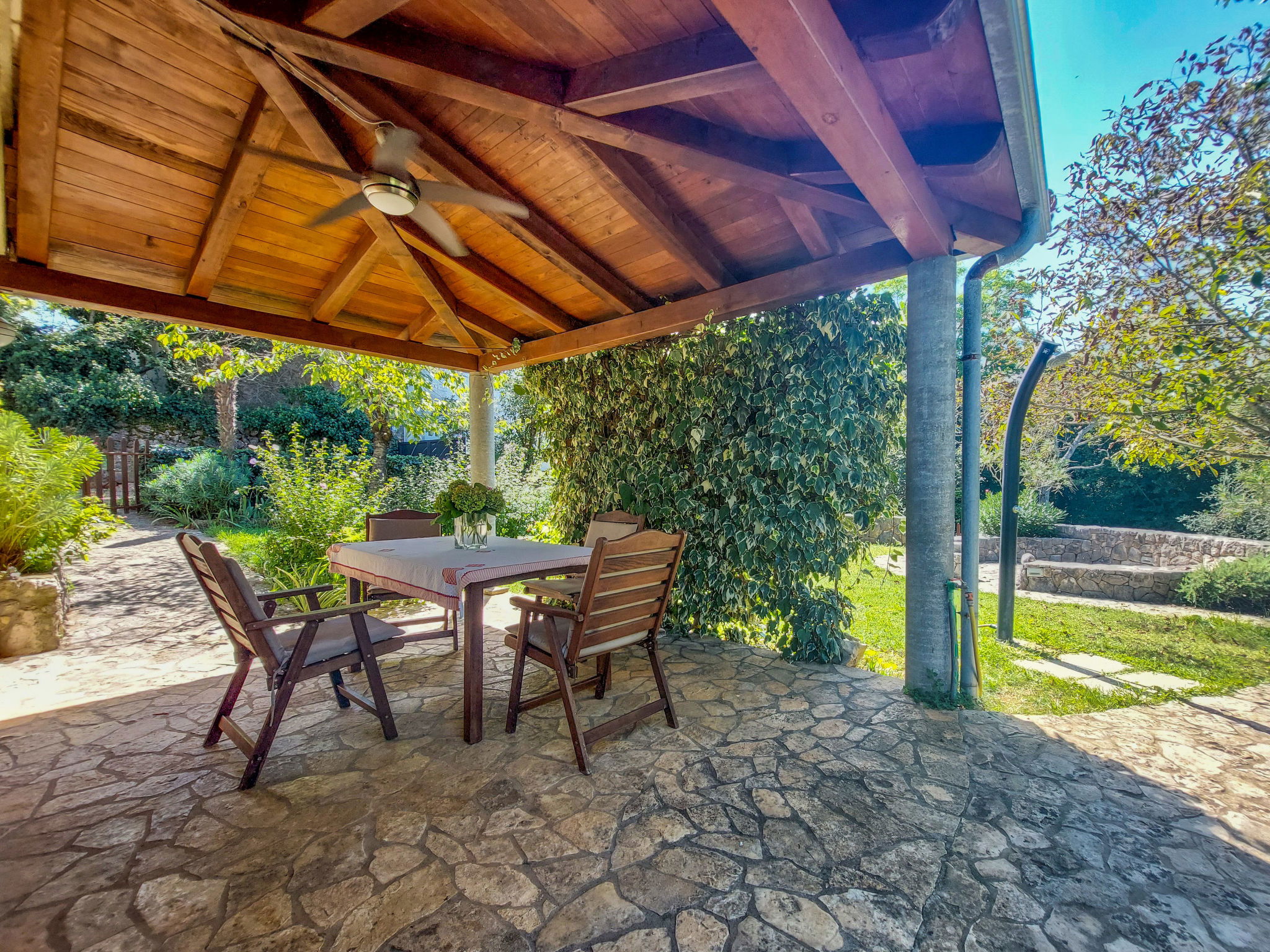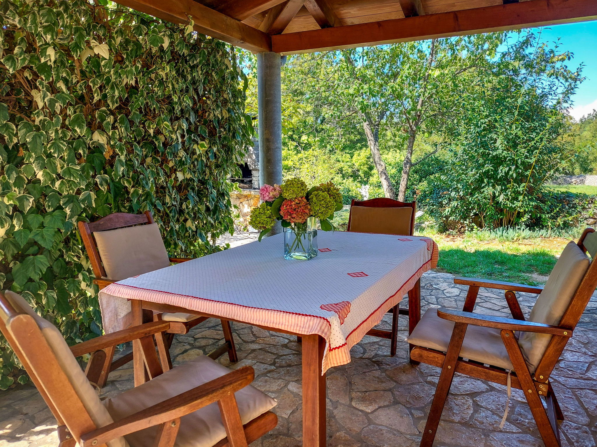 Single-family house "Ljudevit", 2 storeys. 13.5 km from the centre of Malinska, 450 m from the centre of Polje, 13 km from the centre of Vrbnik, 2.5 km from the sea, 2.5 km from the beach. Private: property 1'500 m2 with trees, meadow. Outdoor shower, barbecue, children's playground (swing). In the house: internet access, washing machine. Parking (for 3 cars) on the premises. Shop 450 m, bus stop 1.8 km, sandy beach 2.5 km. Please note: airfield 17 km from the property.