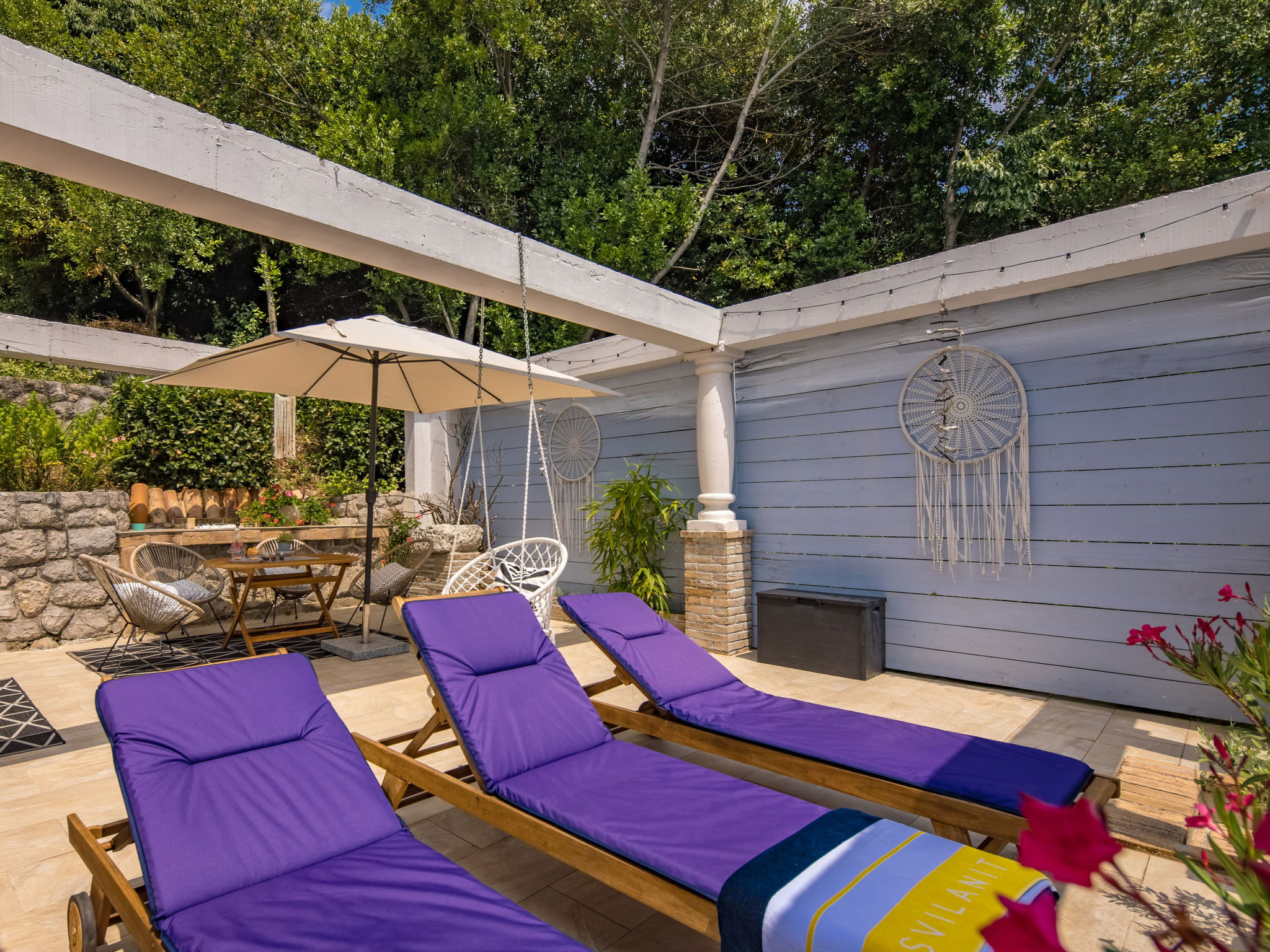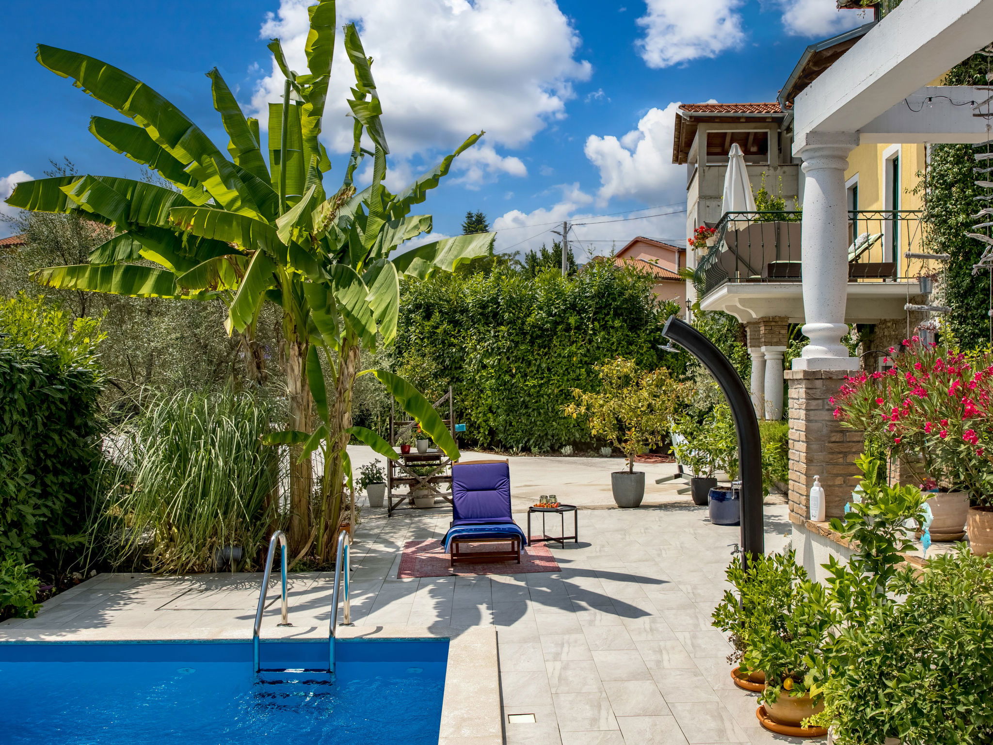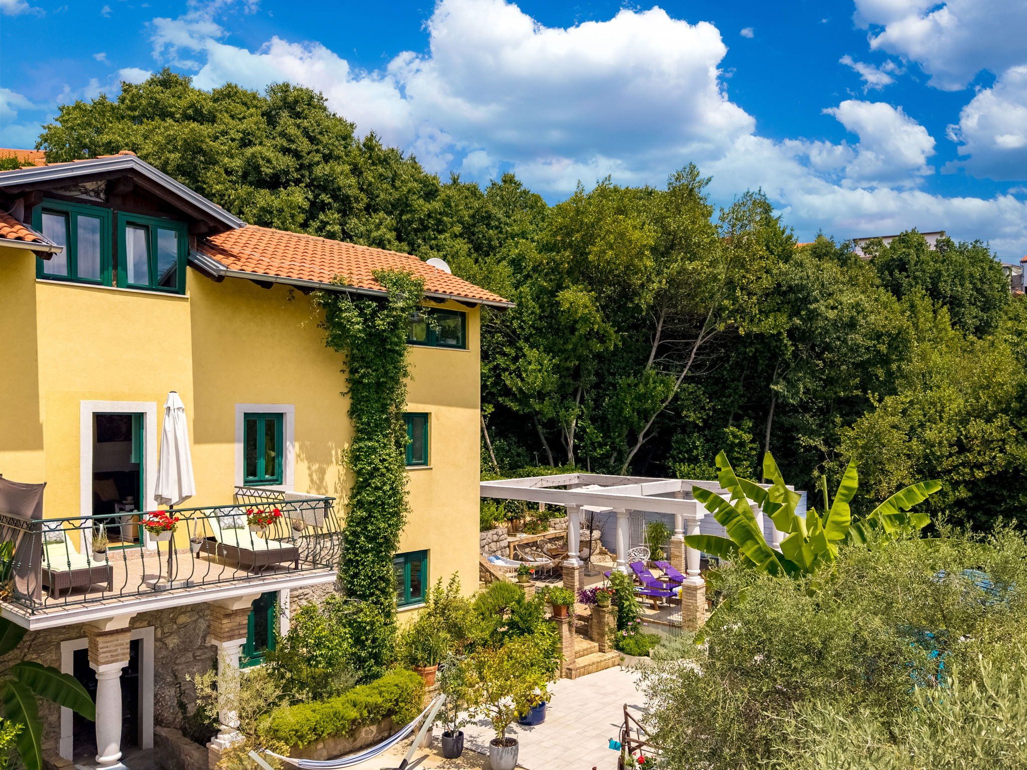 Semi-detached house "Nika", 2 storeys. 5 km from the centre of Opatija, 2 km from the centre of Kastav, 1 km from the centre of Matulji, in a quiet, sunny position, 4 km from the sea, 4 km from the beach, in the countryside. Private: property 950 m2 (fenced) with beautiful garden to relax, swimming pool (7 x 4 m, depth 150 cm, seasonal availability: 01.May. - 01.Oct.) with internal staircase and salt-electrolysis pool-cleaning system. Unconventional pool shape. Outdoor shower, terrace (50 m2), garden furniture, barbecue. In the house: internet access, washing machine, tumble dryer. Parking (for 2 cars) at the house on the premises. Supermarket 600 m, restaurant 500 m, bus stop 650 m, pebble beach 4 km, public bathing area 4 km, concrete beach 4 km. Part of the house is closed and unoccupied.