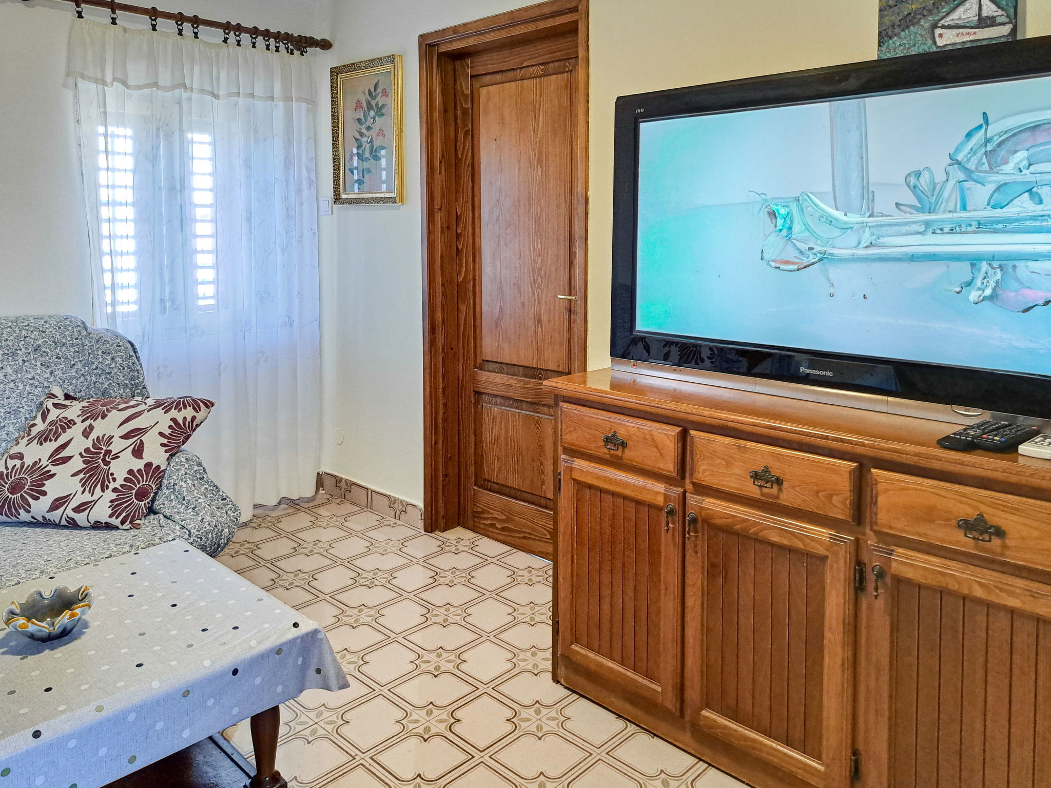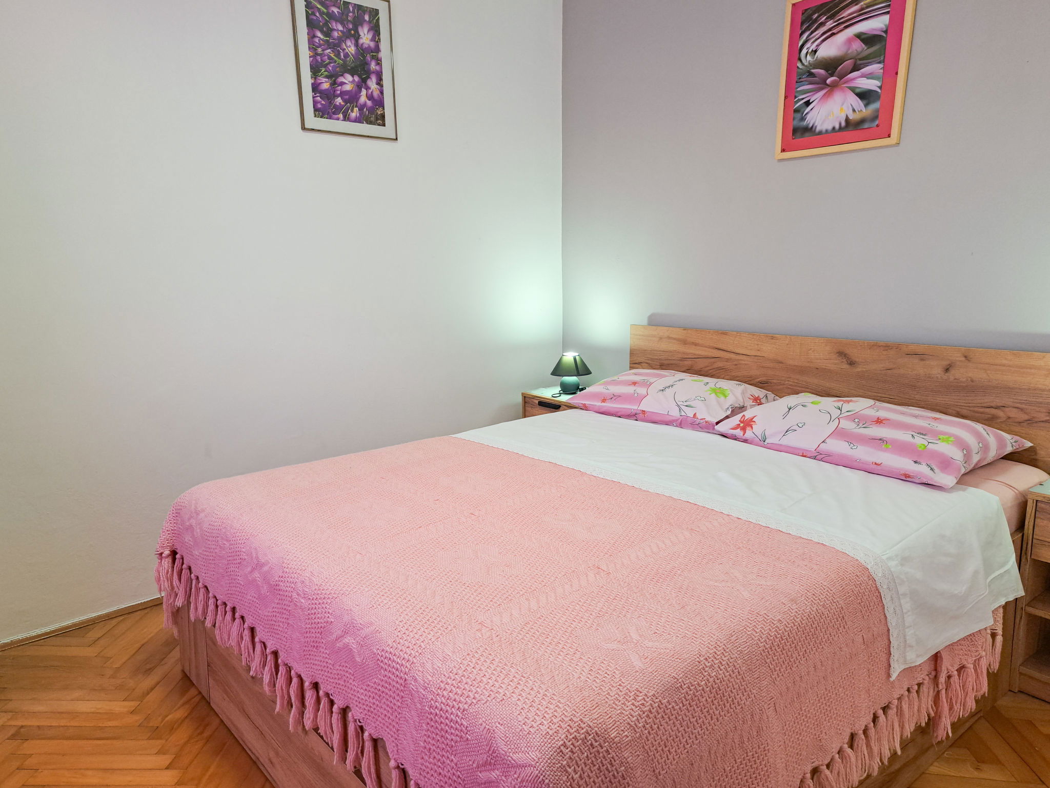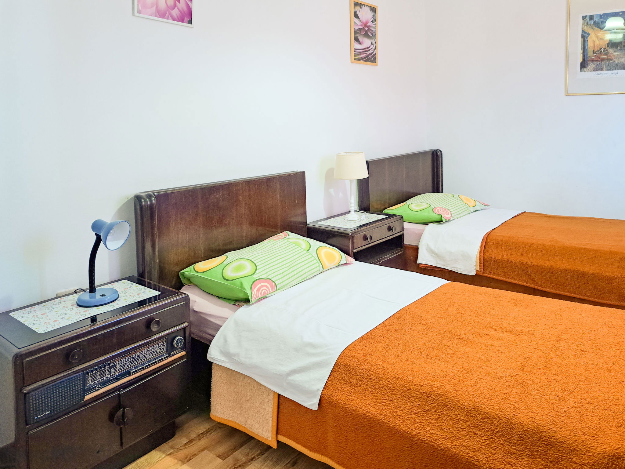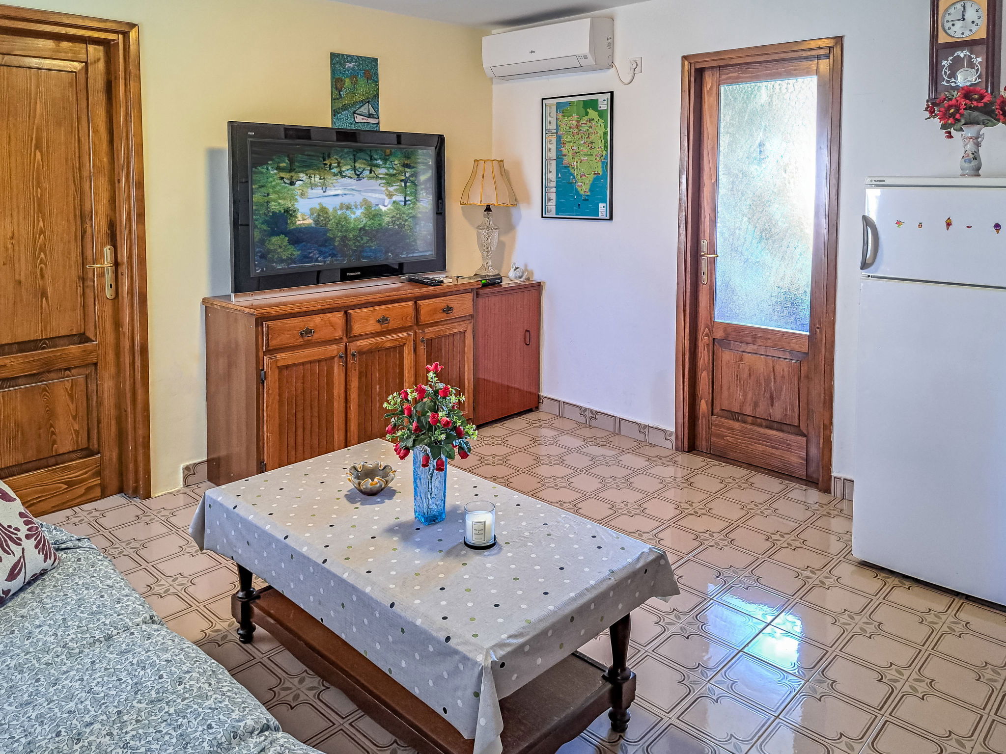 4-room terraced house 80 m2 on 2 levels. Upper floor: living room with satellite TV and air conditioning. Exit to the terrace. 1 room with 1 french bed (160 cm, length 200 cm). Dining room. Open kitchen (1 hot plate, oven, 3 gas rings, toaster, kettle, microwave, electric coffee machine). Bidet, bath/shower/WC. 2nd upper floor: 1 room with 1 french bed (160 cm, length 200 cm). 1 room with 2 beds. No heating option. Terrace. Terrace furniture, barbecue (portable). Facilities: Internet (WiFi, free). Please note: non-smoking house. Maximum 1 pet/ dog allowed. 2471/1