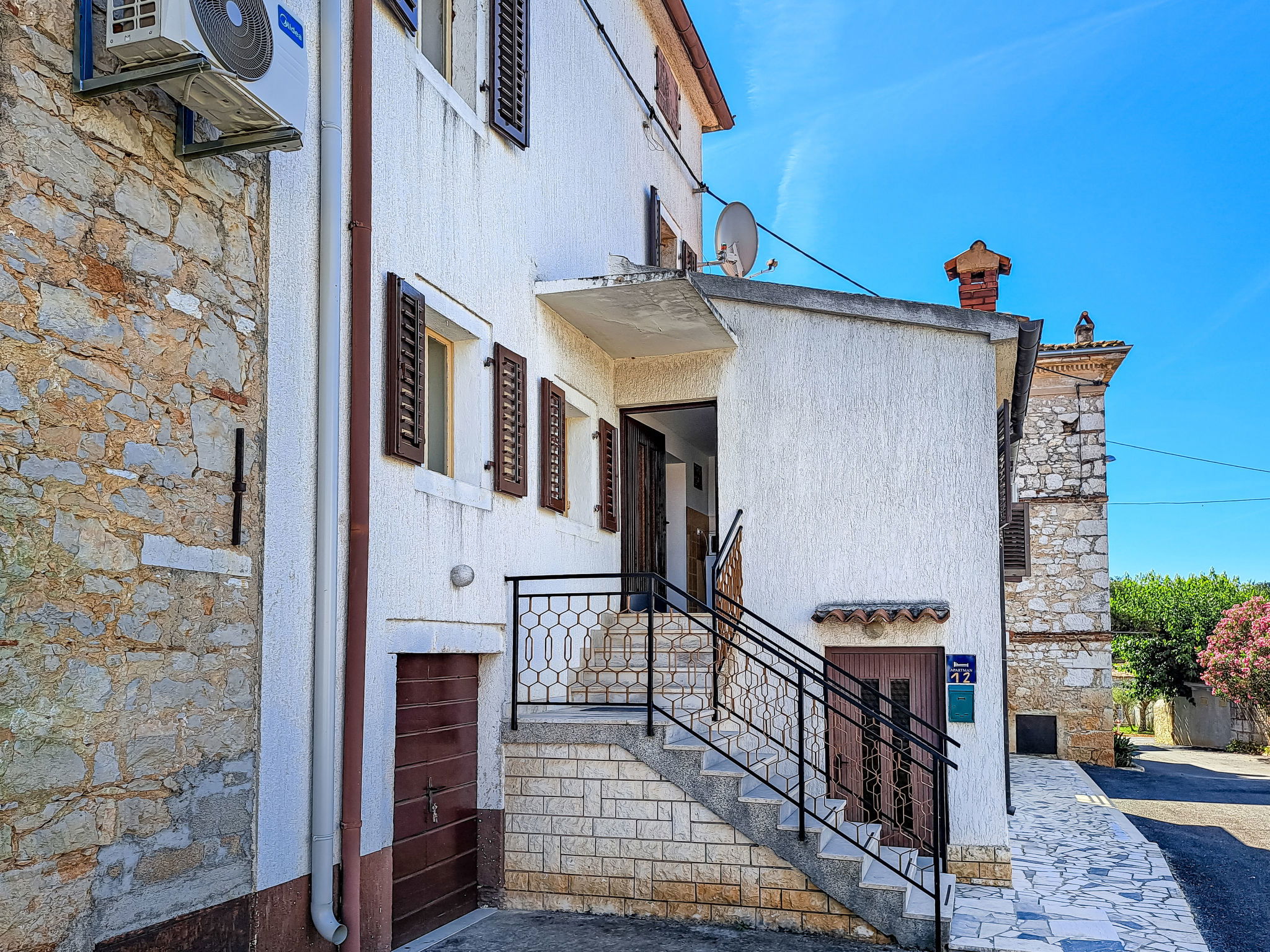 Terraced house "Mirjana", 2 storeys. 3 km from the centre of Nova Vas, 5 km from the centre of Poreč, 15 km from the centre of Novigrad, 5 km from the sea. In the house: internet access. Parking (for 4 cars) on the premises. Shop 3 km, supermarket 4 km, restaurant 3 km, bus stop 8 km, railway station 35 km, pebble beach 5 km. Marina 8 km.