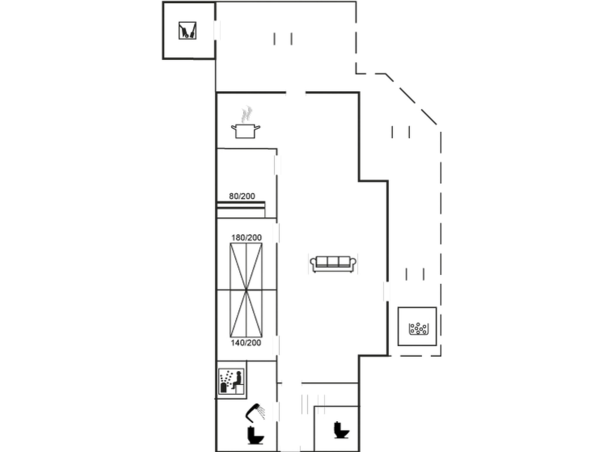 "Dufa" - 3.2km from the sea", 3-room house 93 m2. Object suitable for 6 adults + 1 child. Living room with TV, video, CD-player, hi-fi system and DVD. 1 room with 1 x 2 bunk beds. 1 room with 1 double bed. 1 room with 1 double bed. Kitchen (4 hot plates, oven, dishwasher, microwave, freezer). 2 showers/WC. Facilities: children's high chair, baby cot. Internet (WiFi). Please note: non-smokers only. Maximum 2 pets/ dogs allowed. 550-12698