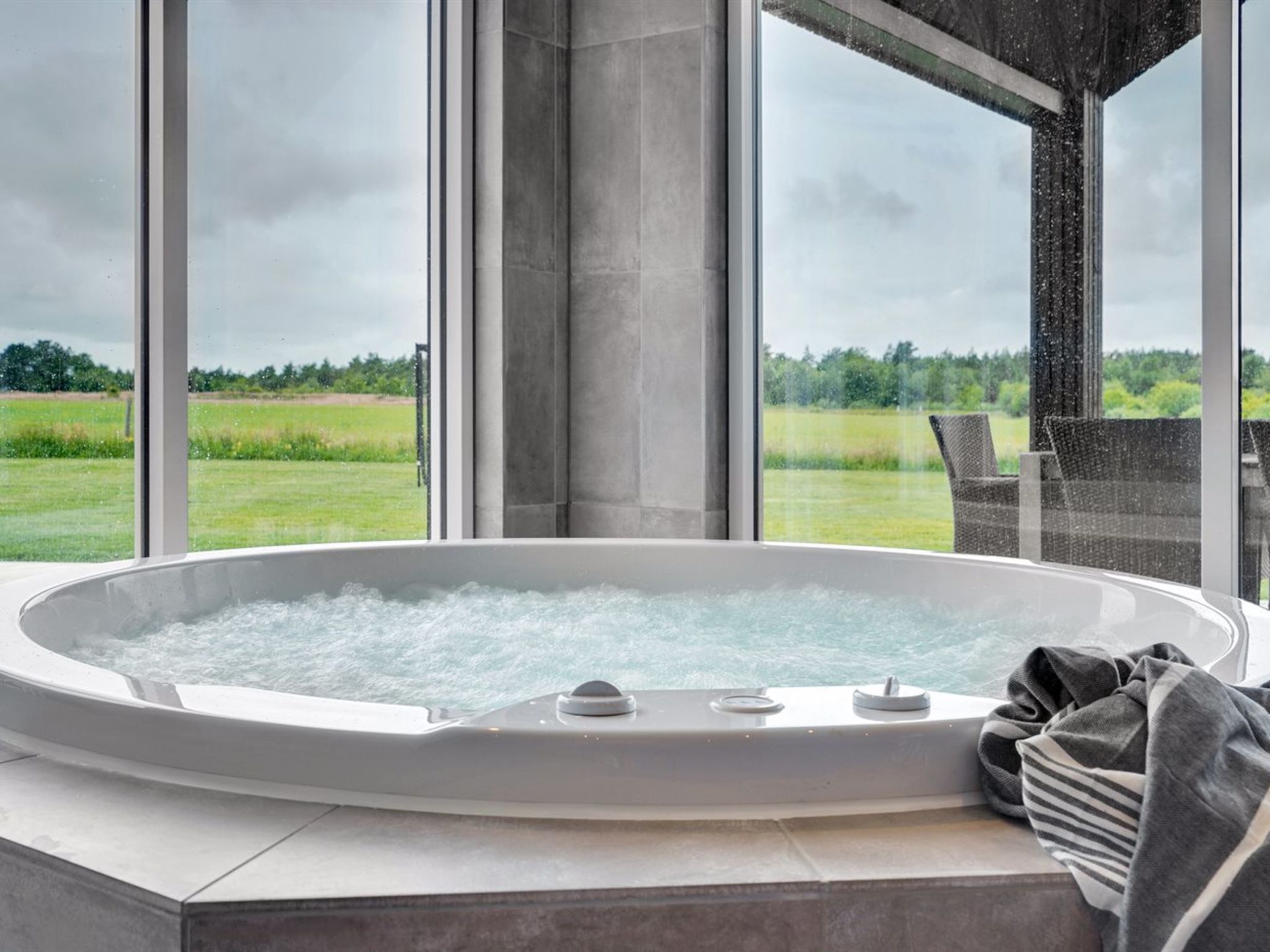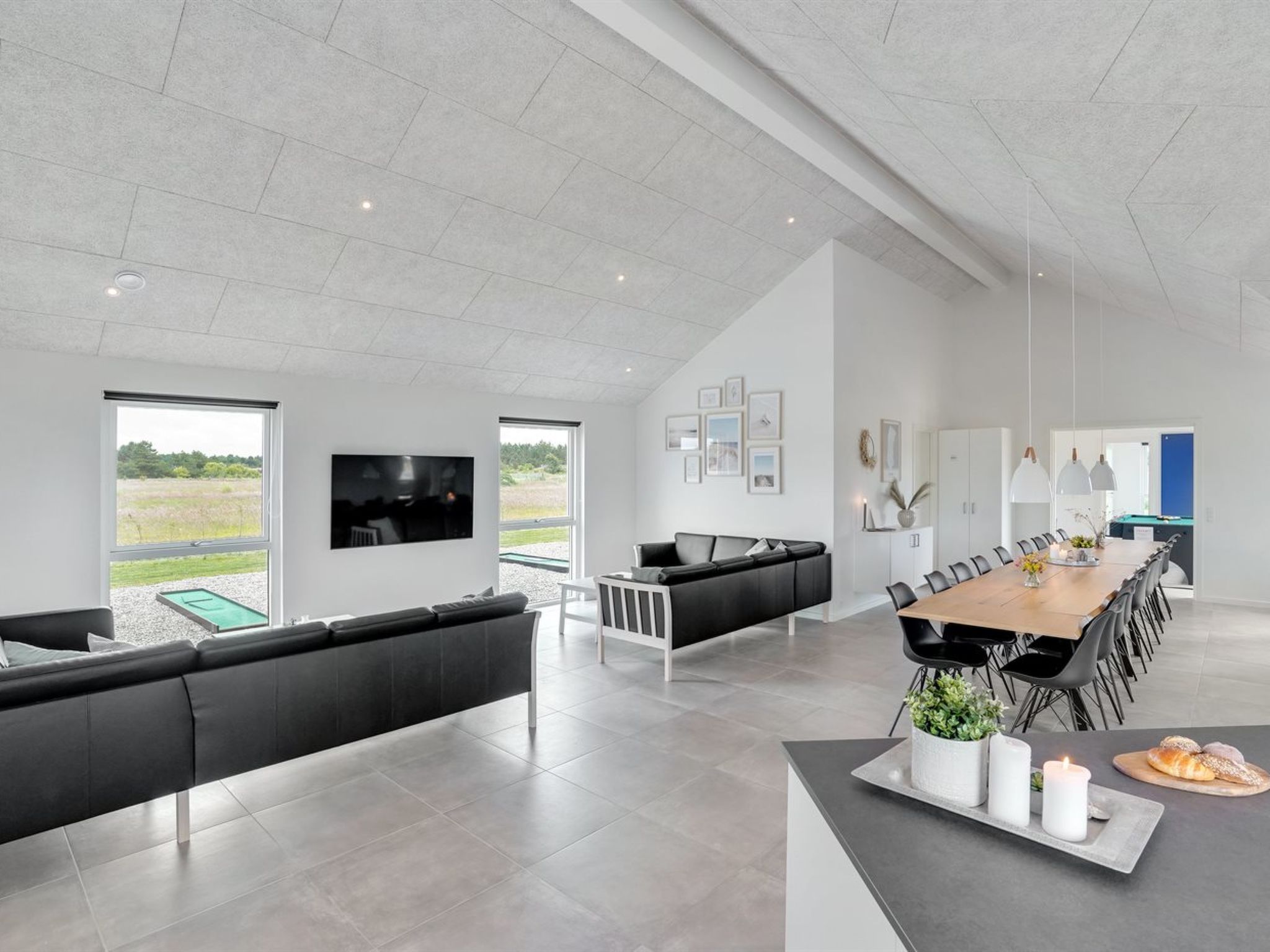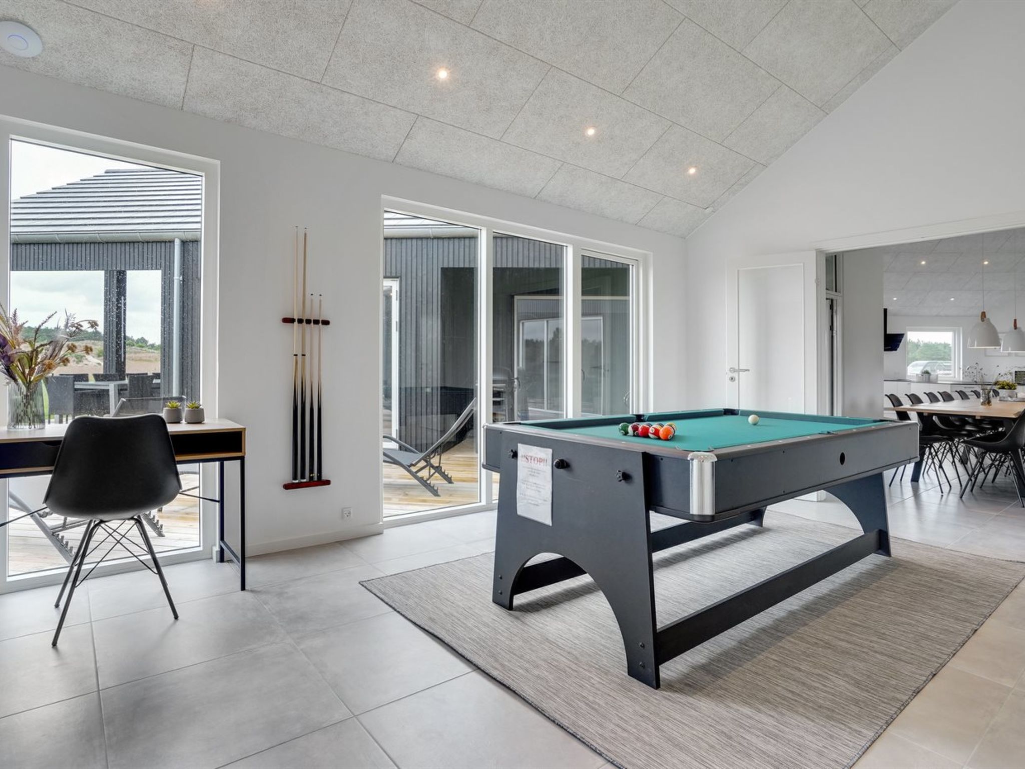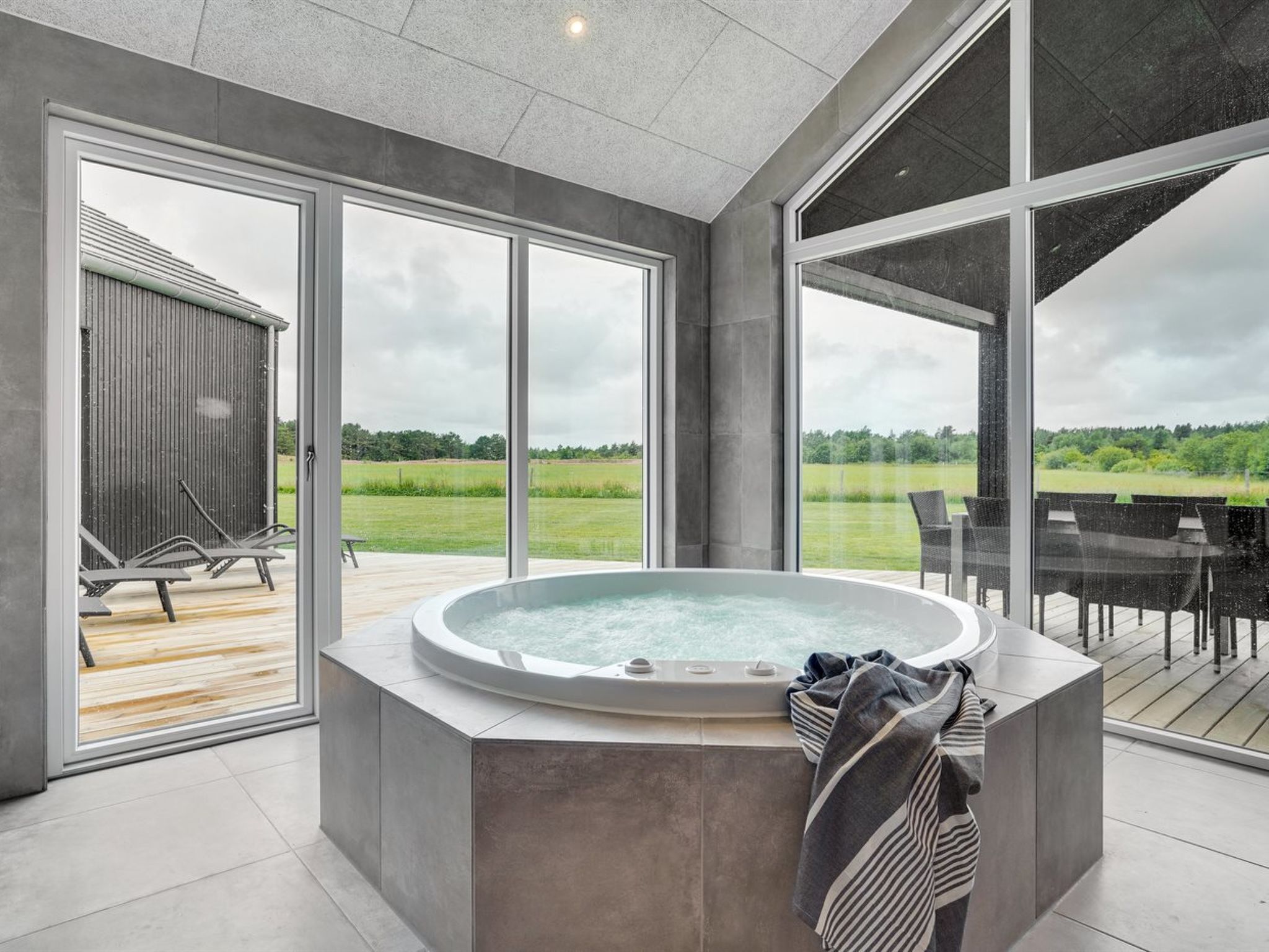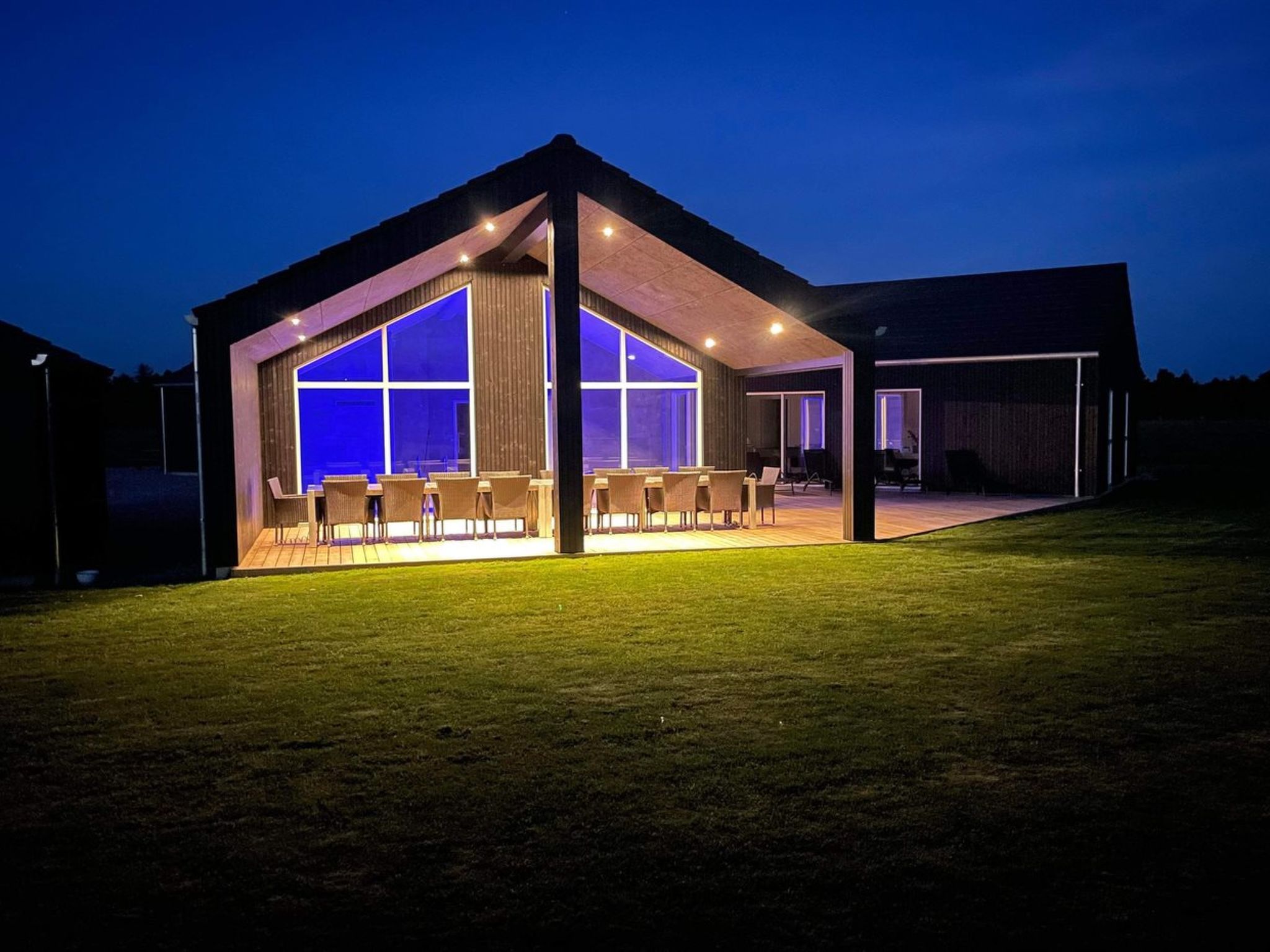 Single-family house, built in 2022. 4 km from the sea. Private: natural state property 2'500 m2, indoor pool (3 x 6 m, 18 m2, depth 140 - 140 cm). Barbecue. In the house: sauna, washing machine, tumble dryer. Parking at the house. E-charging station. Grocery 2.2 km. Golf course 3.2 km. The owner does not accept any youth groups.