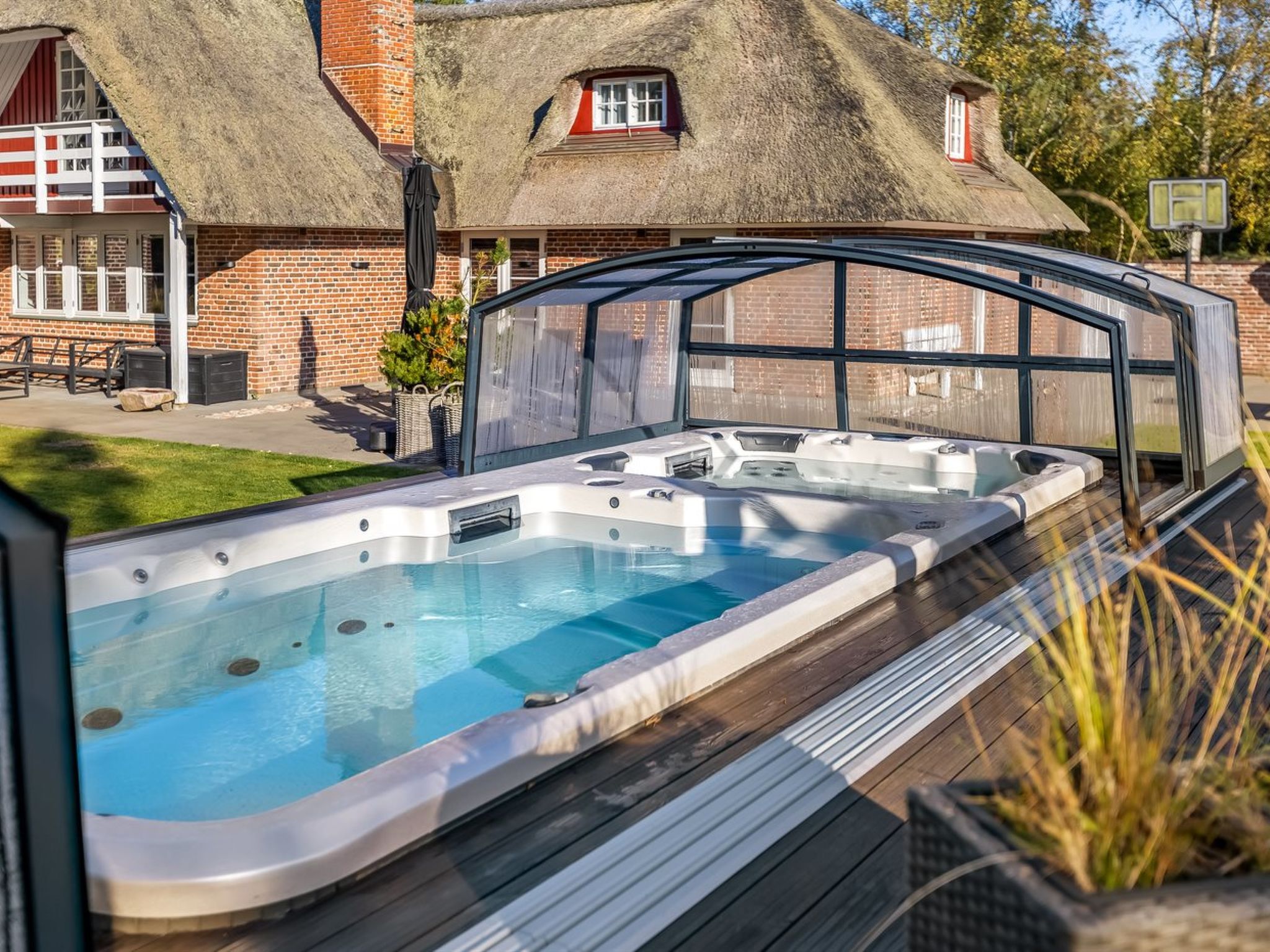 Single-family house, built in 1977. 3.5 km from the sea. Private: property 2'800 m2. Terrace (200 m2), children's playground (swing). In the house: trampoline, washing machine, tumble dryer. Parking at the house. E-charging station. Grocery 1 km. Golf course 5.3 km. The owner does not accept any youth groups.