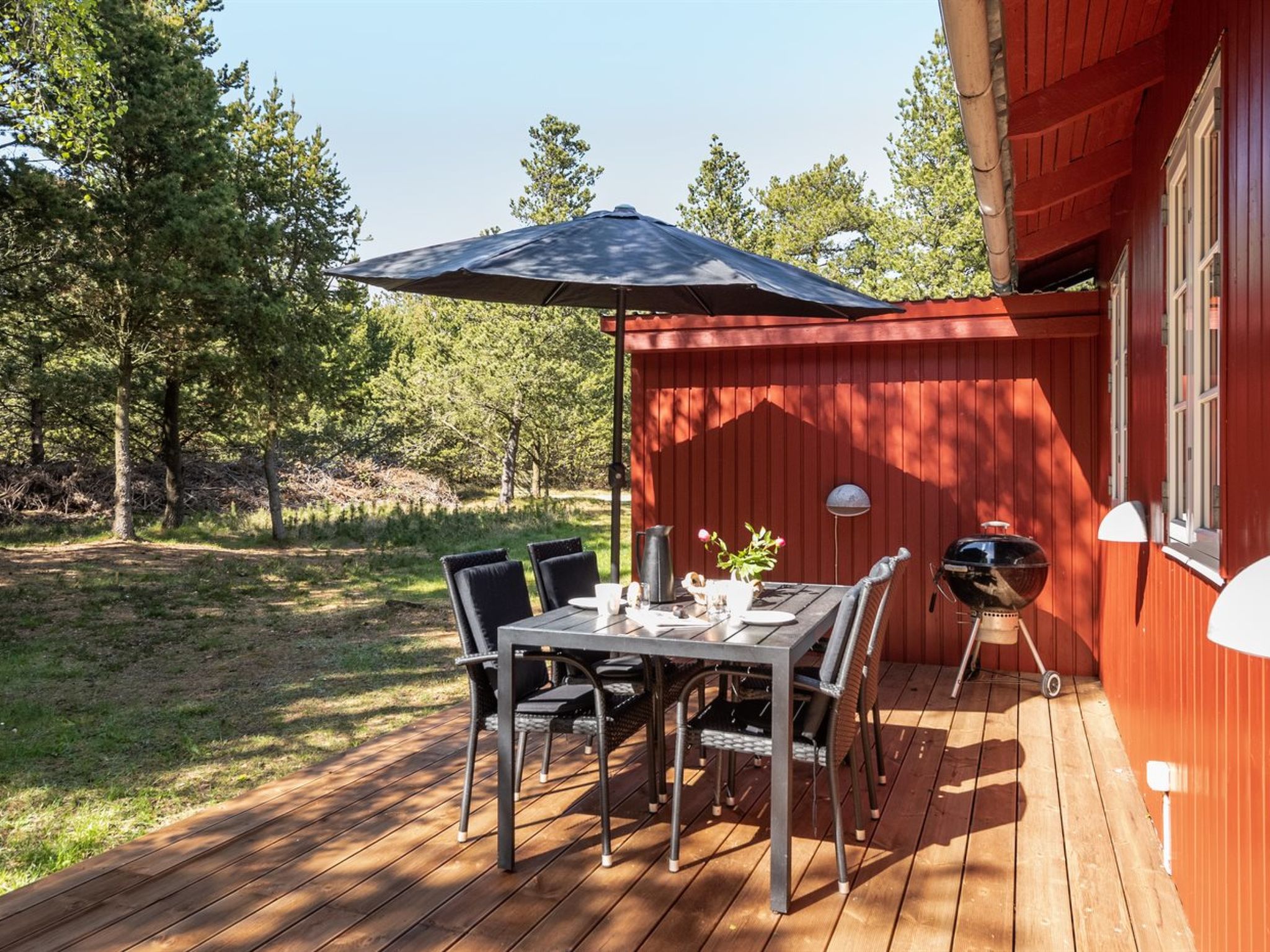 Single-family house, built in 1969. 900 m from the sea. Private: natural state property 2'500 m2. Terrace (70 m2). In the house: sauna, washing machine. Parking at the house. Grocery 1.3 km. Golf course 2 km. The owner does not accept any youth groups.