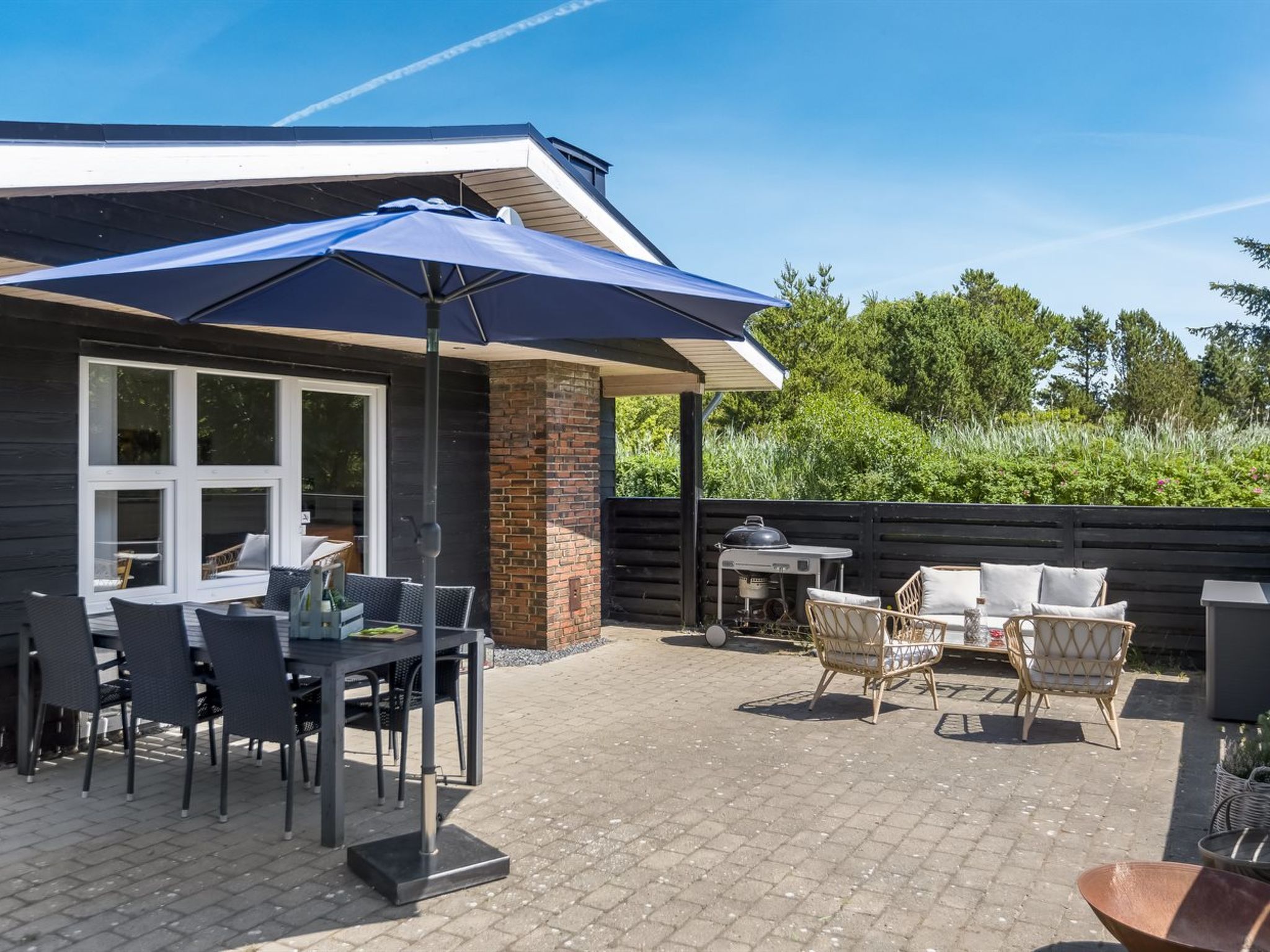 Single-family house, built in 1978. 2.3 km from the sea. Private: natural state property 2'500 m2. Terrace (76 m2), barbecue, children's playground. In the house: sauna, washing machine, tumble dryer. Parking at the house. Grocery 3 km. Golf course 9 km. The owner does not accept any youth groups.