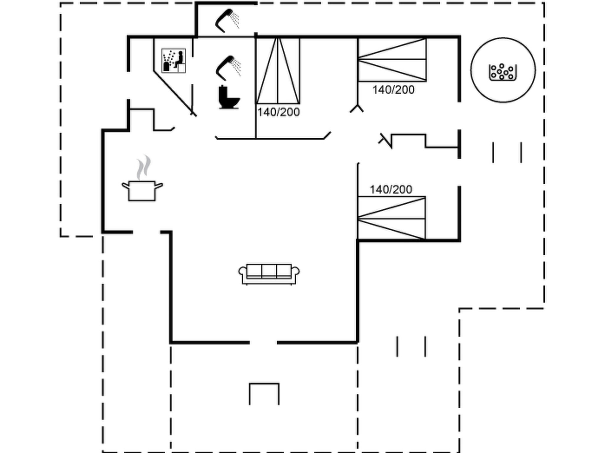 "Gubbe" - 500m from the sea", 4-room house 75 m2. Object suitable for 6 adults + 1 child. Living room with TV and hi-fi system. 1 room with 1 double bed. 1 room with 1 double bed. Open gallery, 1 room with 1 double bed and 2 sleeping facilities. Kitchen (oven, dishwasher, 4 ceramic glass hob hotplates, microwave, freezer). Shower/WC. Terrace 17 m2, roofed. Facilities: baby cot. Internet (WiFi). Please note: non-smokers only. Maximum 1 pet/ dog allowed. 550-9522