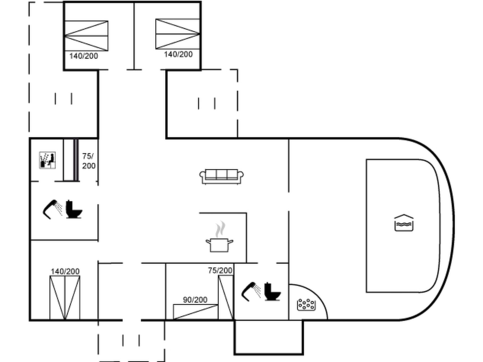 Single-family house, built in 1977. 3.1 km from the sea. Private: natural state property 3'000 m2, indoor pool (3 x 5 m, 1'9.5 m2, depth 120 - 120 cm). Terrace (30 m2), children's playground. In the house: sauna, trampoline, washing machine, tumble dryer. Parking at the house. Grocery 3.4 km. The owner does not accept any youth groups.