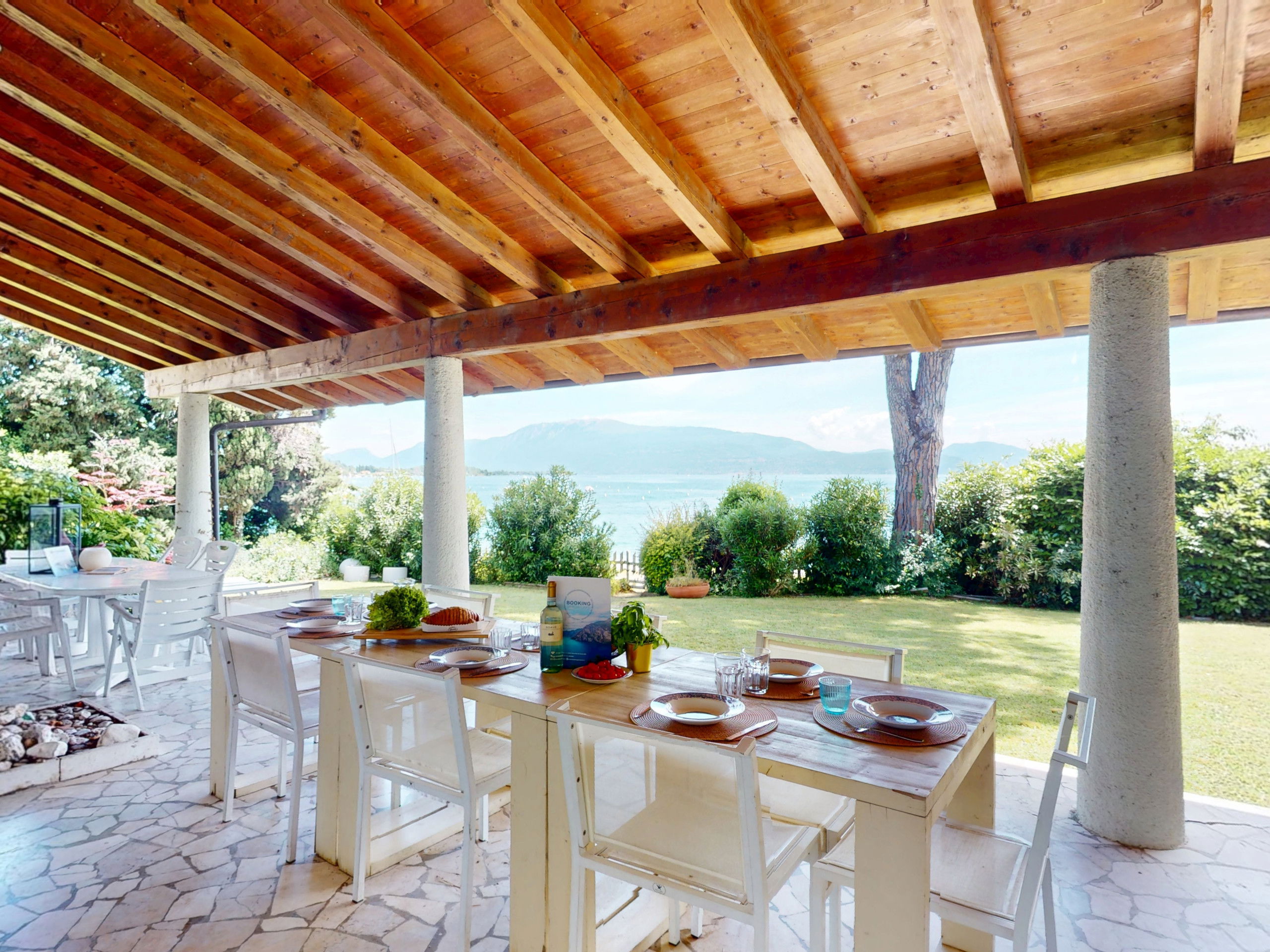 The heart of the house is the large external porch: furnished, spacious, overlooking a garden with direct access to the beach. A magical place to enjoy breakfast in the morning, relax at sunset or dine under the stars, immersed in the natural beauty of the most prestigious area of Lake Garda.