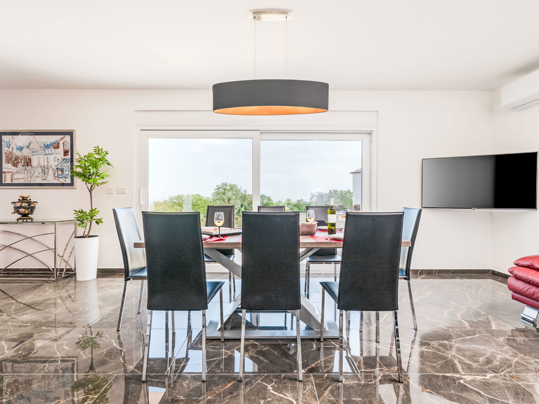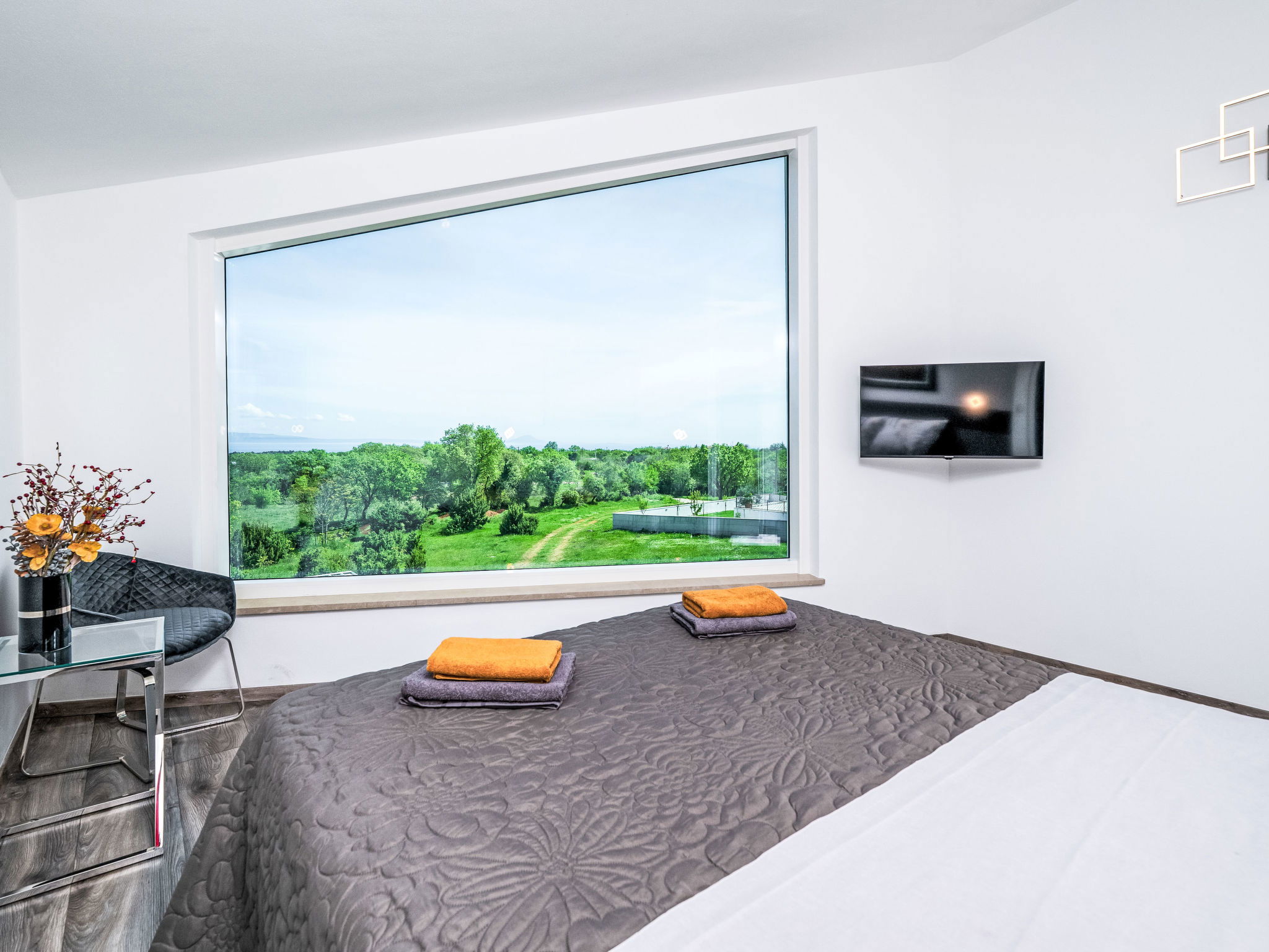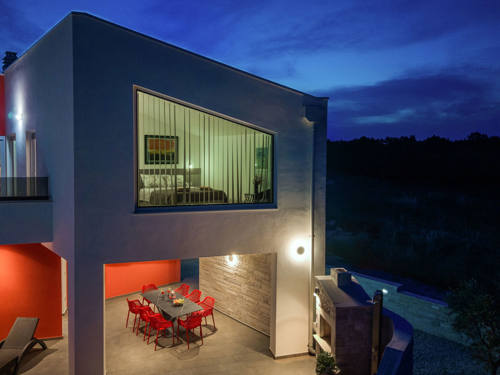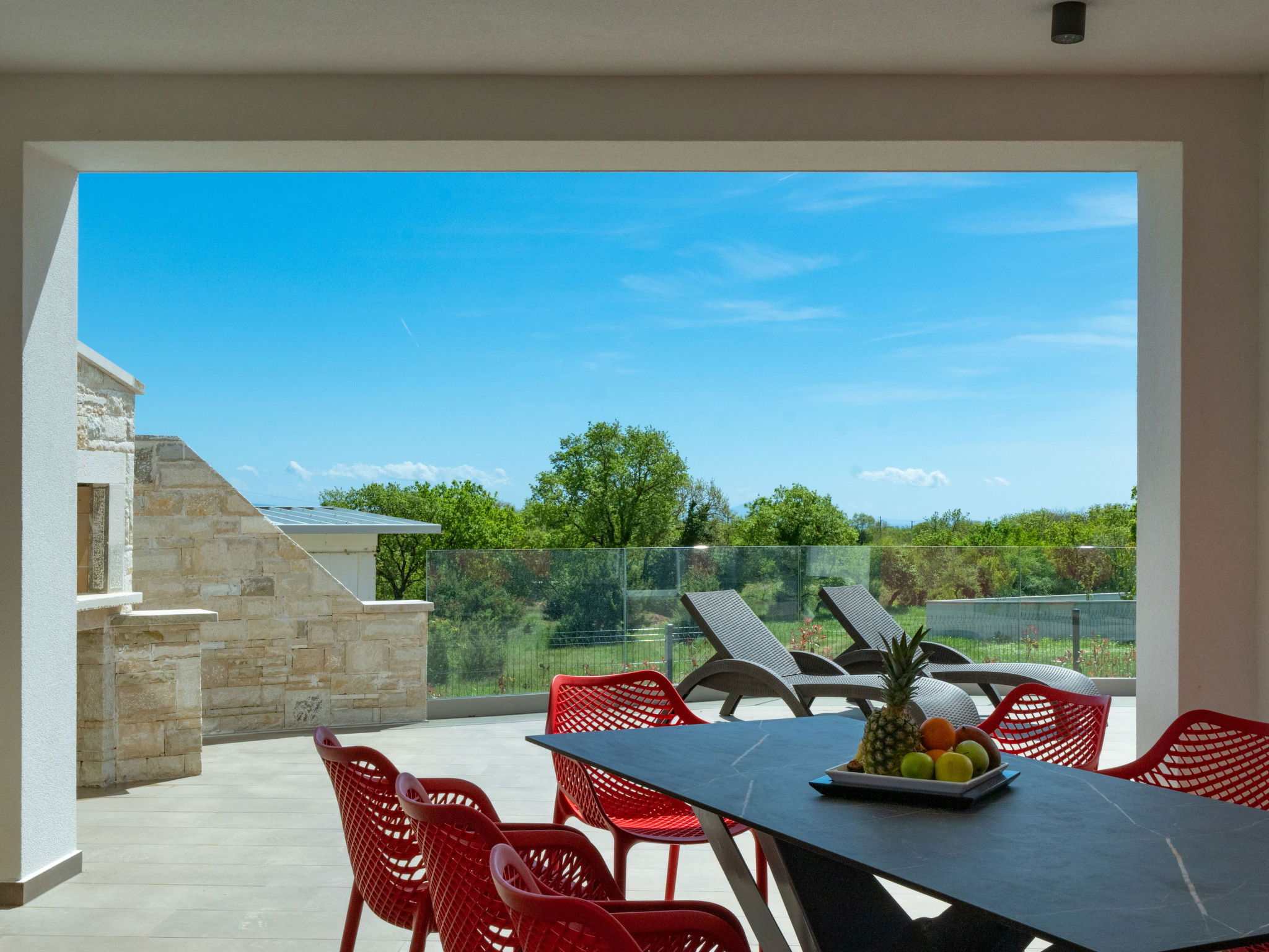 Krnica 22 km from Pula: Modern, beautiful villa "Lumi". In a quiet, sunny position, 2.5 km from the sea, 2.5 km from the beach. Private: property 650 m2 (fenced), garden with flowers and trees, swimming pool angular (8 x 3 m, 28 m2, depth 140 cm, seasonal availability: 01.Jan. - 31.Dec.) with internal staircase. Outdoor shower, terrace (20 m2), garden furniture, barbecue, pool maintenance by the owner/gardener. In the house: internet access, washing machine. Parking (for 2 cars) at the house on the premises. Shop, restaurant 200 m, bus stop 500 m, pebble beach 5 km, rocky beach 2.5 km, indoor swimming pool 5 km. Tennis 5 km, riding stable 6 km, sports centre 5 km, walking paths from the house 3 km, cycle lane 3 km.