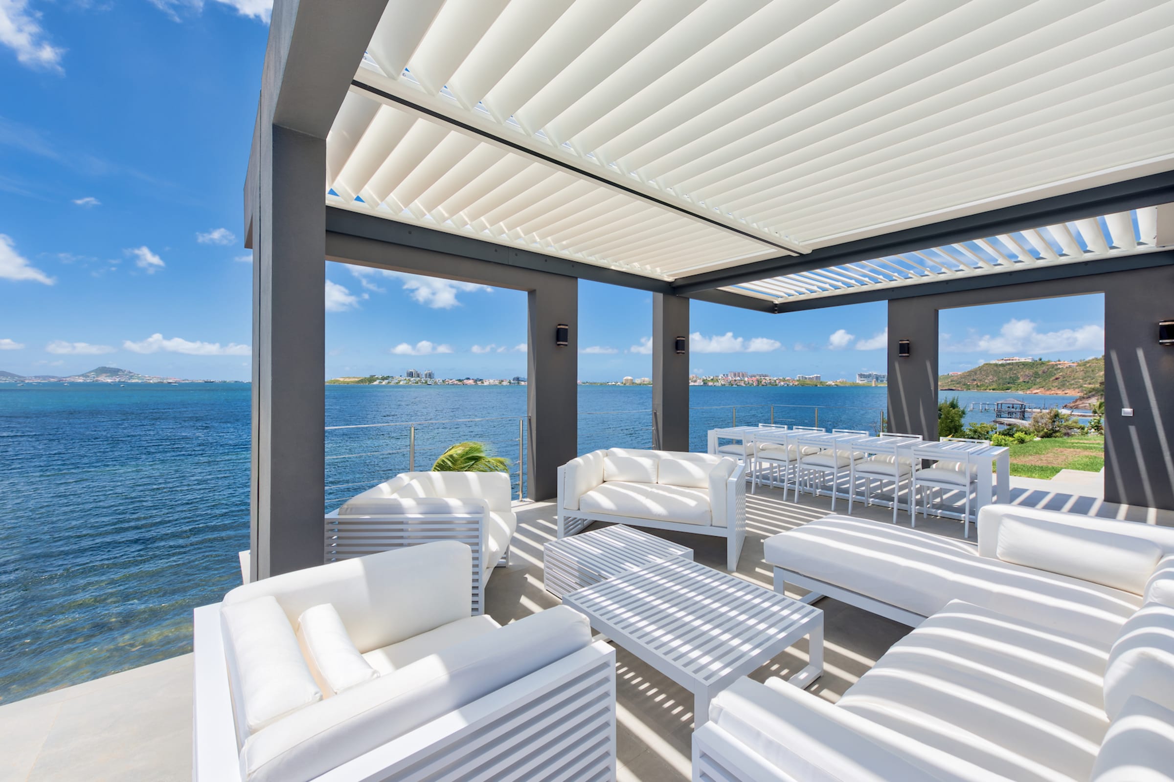 Villa Mirabelle is a stunning waterfront property situated on top of a hill, offering breathtaking views of the Simpson Bay lagoon in St Martin. This gorgeous villa is nestled in the midst of a tropical garden and boasts its own private beach.