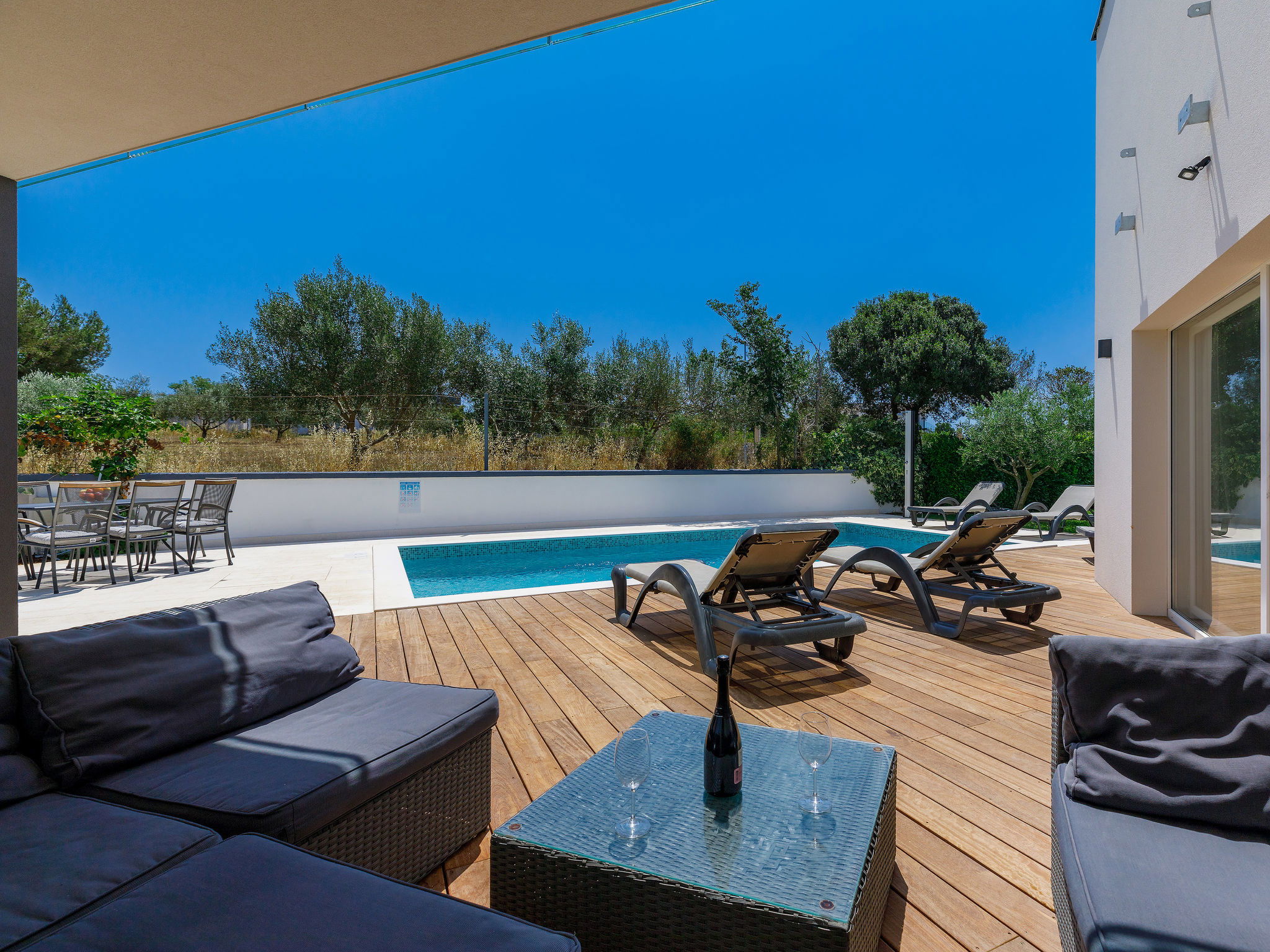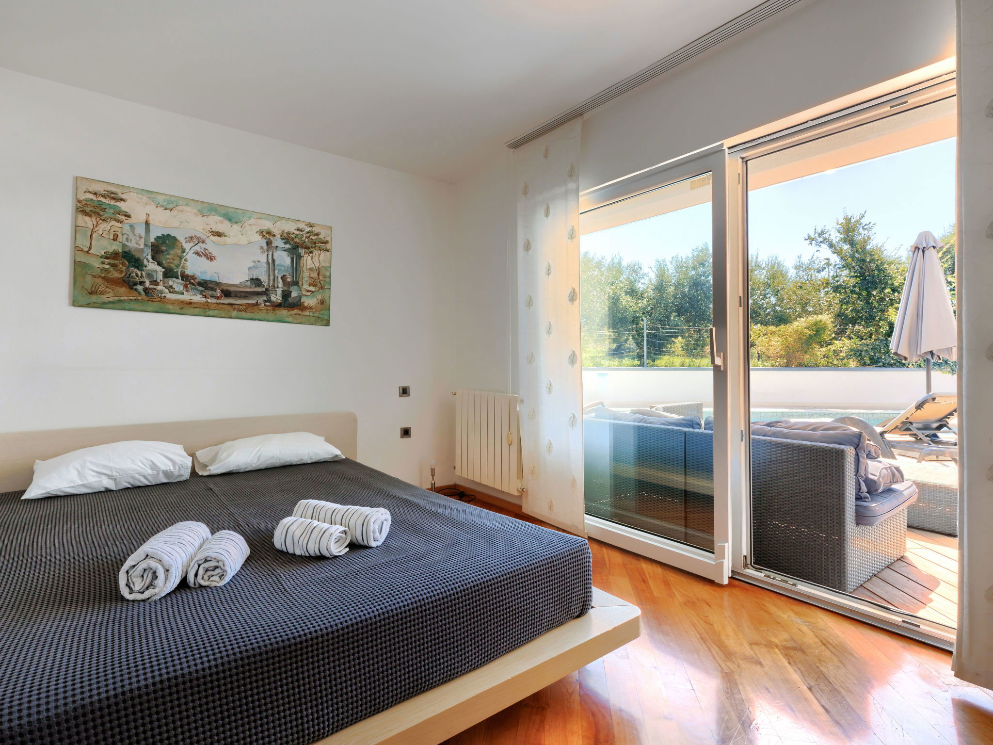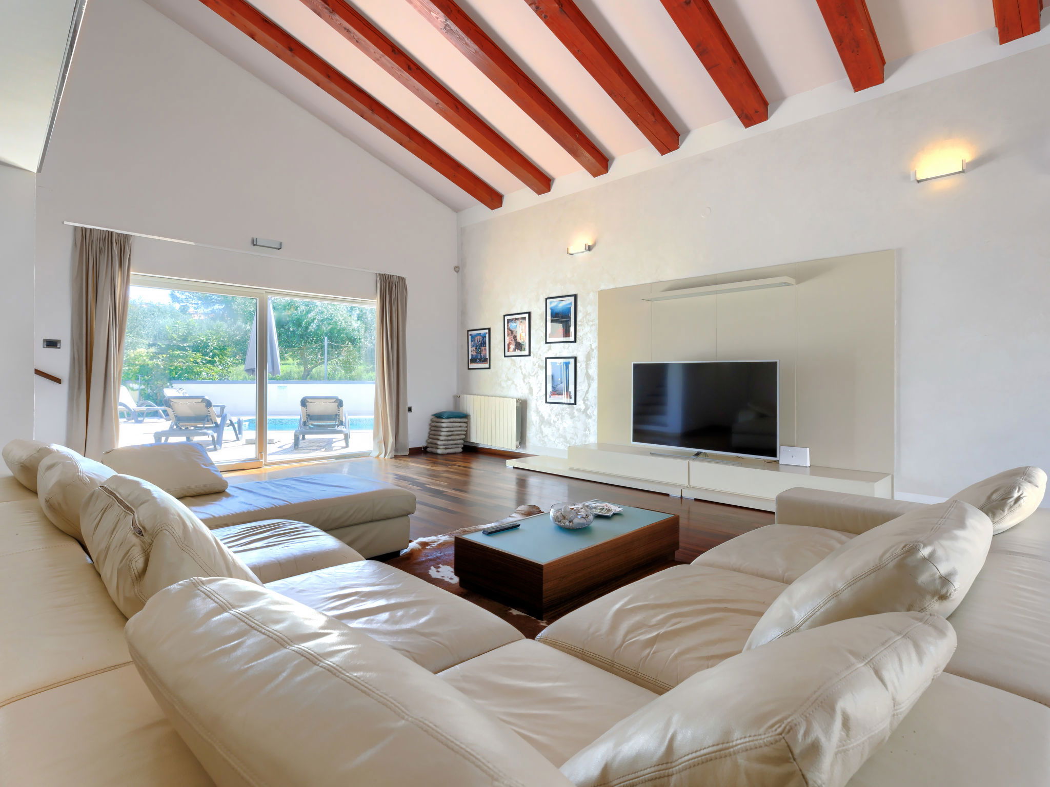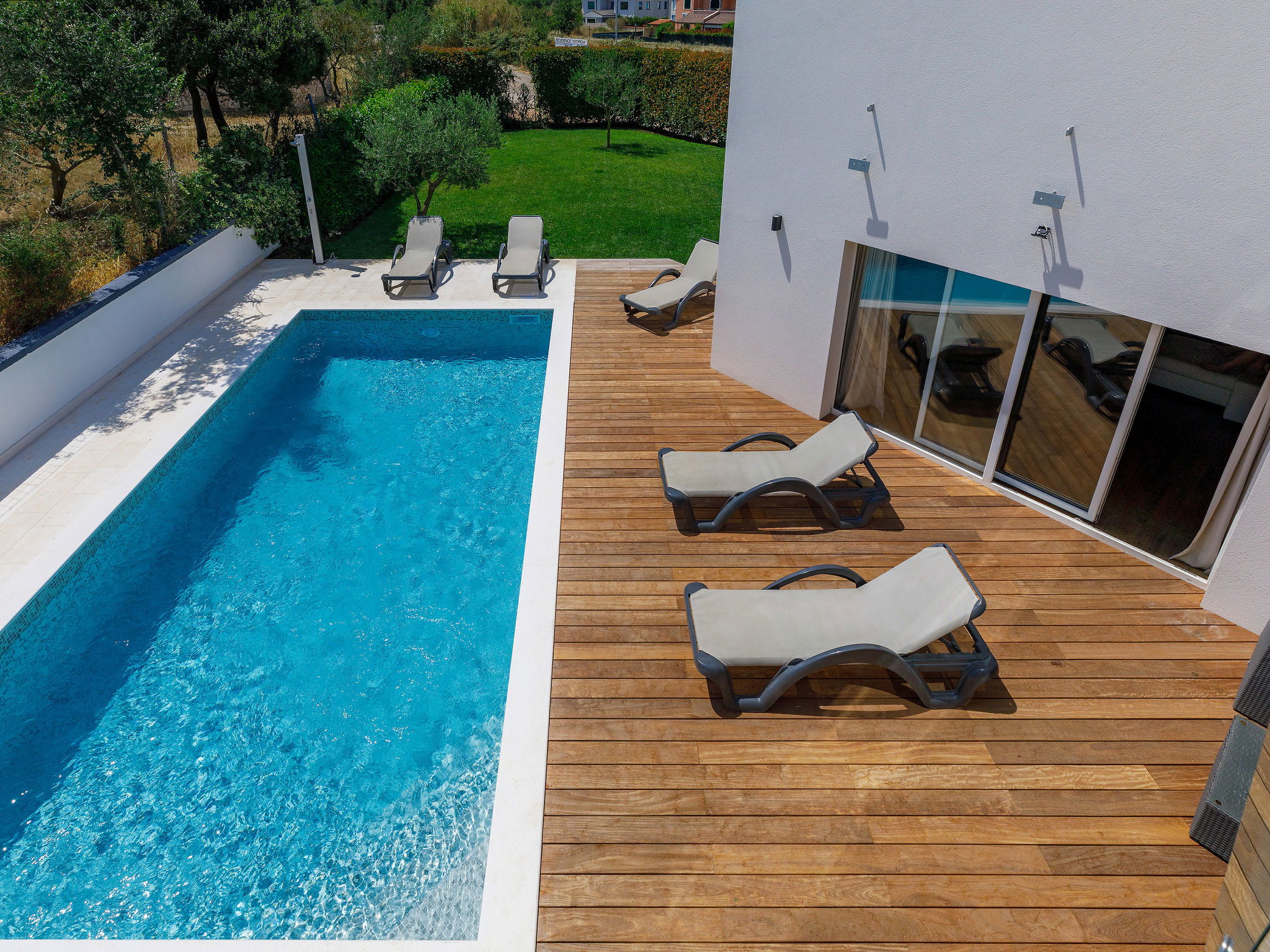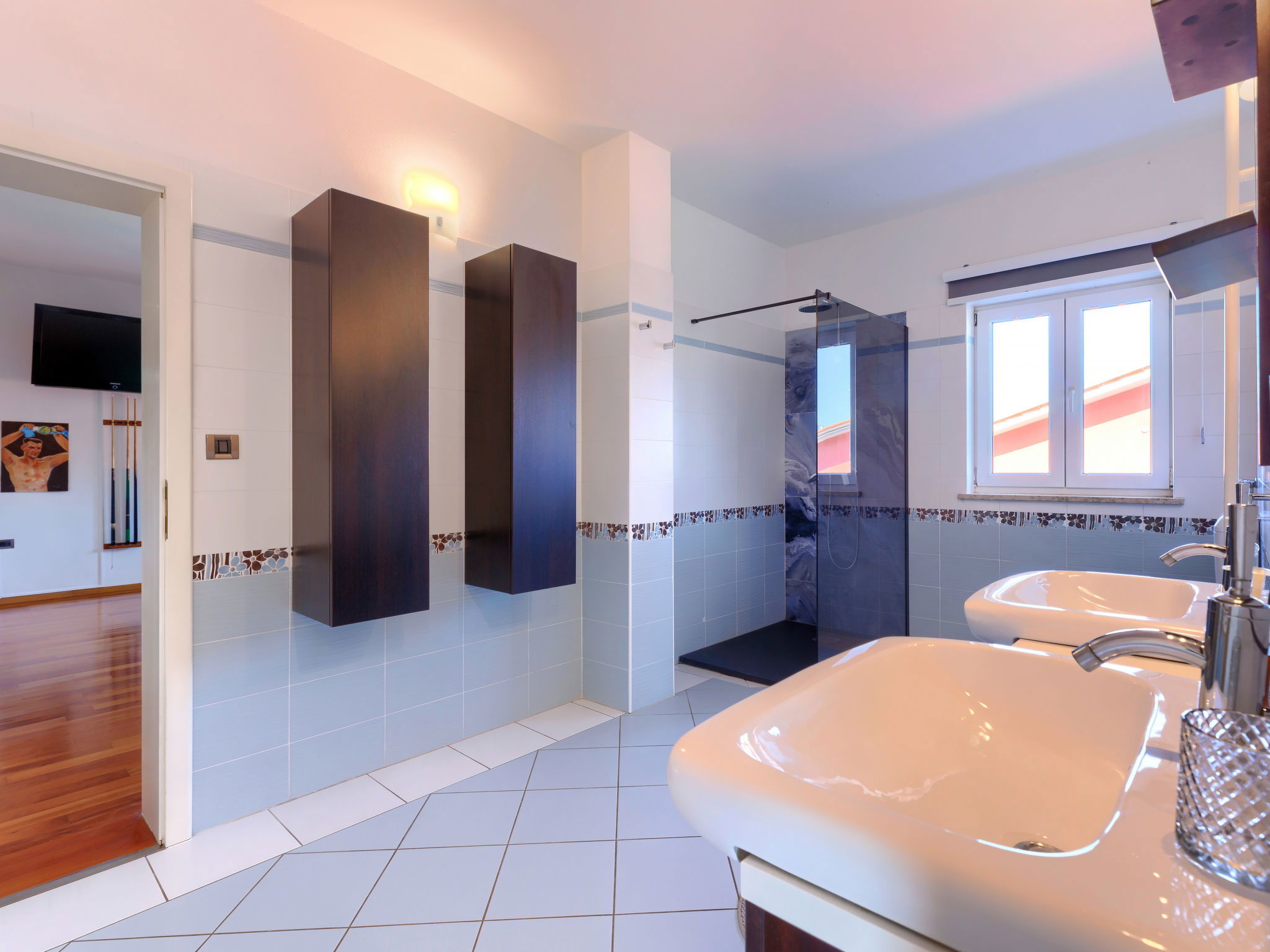 Banjole 7 km from Pula: Child friendly, beautiful single-family house "Lana", 2 storeys. In the hamlet Volme 300 m from the centre of Banjole, 300 m from the sea, 500 m from the beach. Private: property 780 m2 (fenced), swimming pool angular (8 x 4 m, depth 140 cm, seasonal availability: 25.Apr. - 26.Sep.) with internal staircase. Outdoor shower, barbecue. In the house: internet access, fitness room, billiard table, central heating system, washing machine. Parking (for 4 cars) at the house on the premises. Supermarket 800 m, restaurant 100 m, bus stop 250 m, pebble beach 1 km, rocky beach 500 m. Nearby attractions: Park prirode rt Kamenjak 3 km. Please note: airfield 15 km from the property. Swimming pool with counterflow and hydromassage. The fitness room is large (55 m2) and very well equipped.