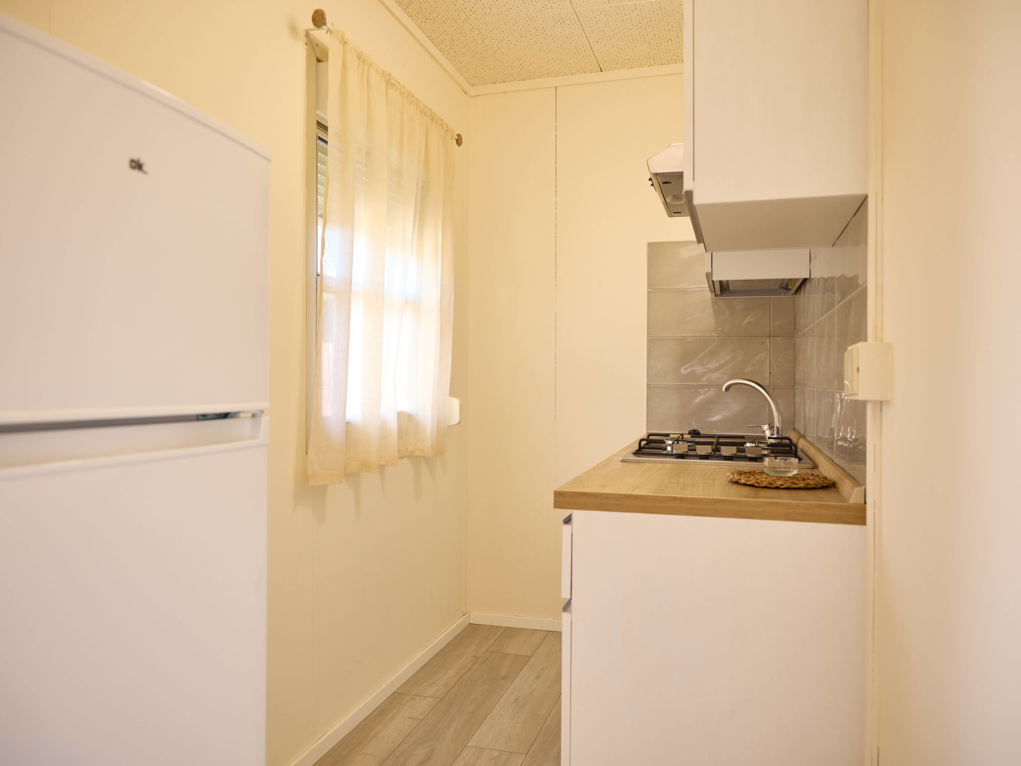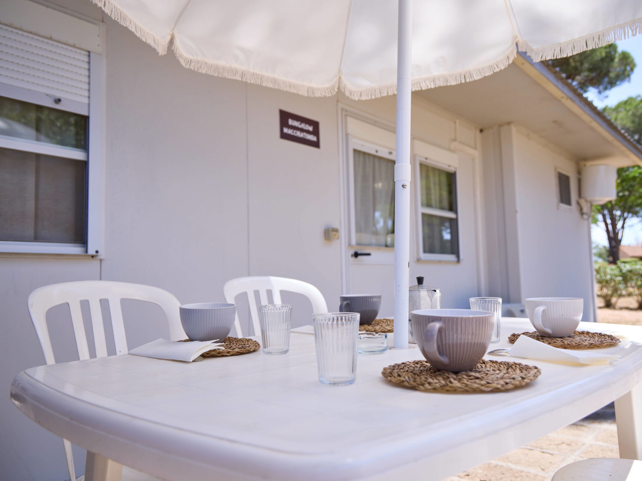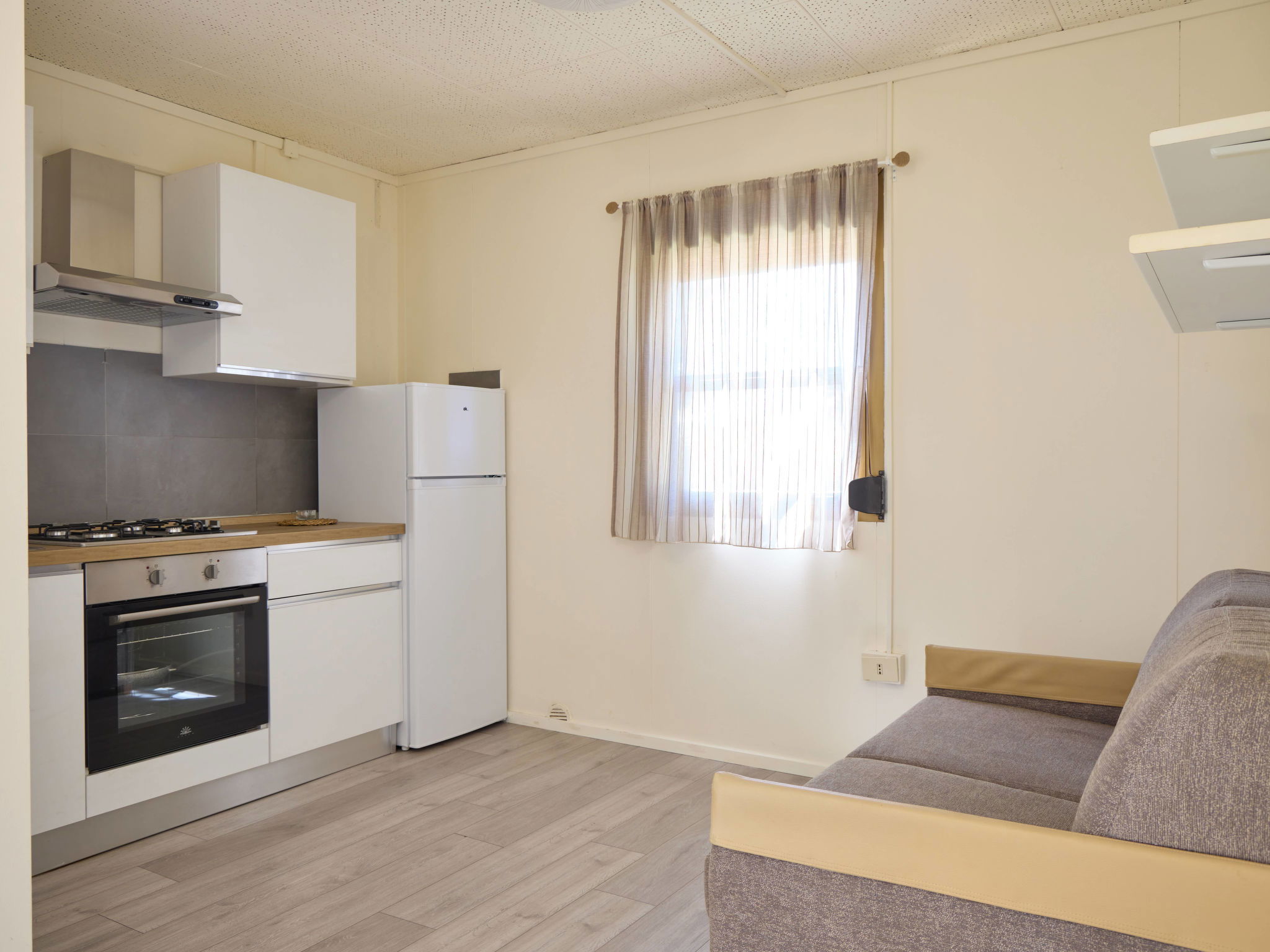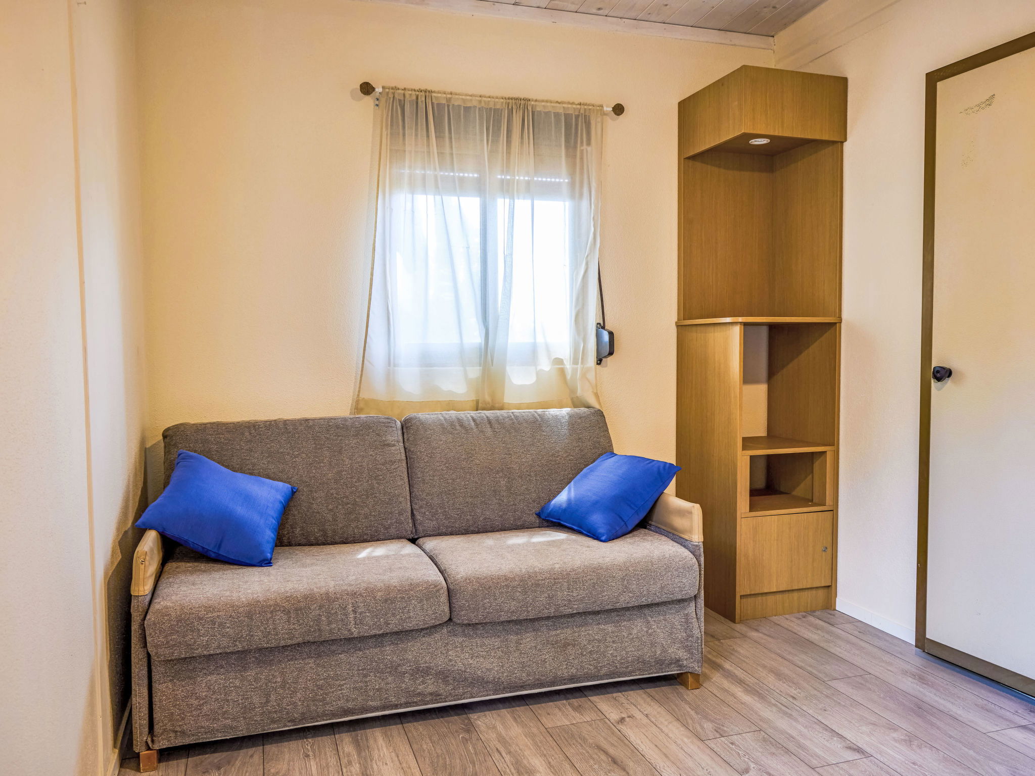 "Bungalow Superior", 3-room bungalow 38 m2, on the ground floor. Practical furnishings: living/dining room with 1 sofabed and TV. Exit to the terrace. 1 double bedroom. 1 room with 2 beds. Kitchenette (4 hot plates). Exit to the terrace. Shower/bidet/WC. Air-conditioning, forced-air heating. Terrace. Terrace furniture. Parking (fenced 1 car). Please note: non-smokers only. Maximum 1 pet/ dog allowed. Private entrance.