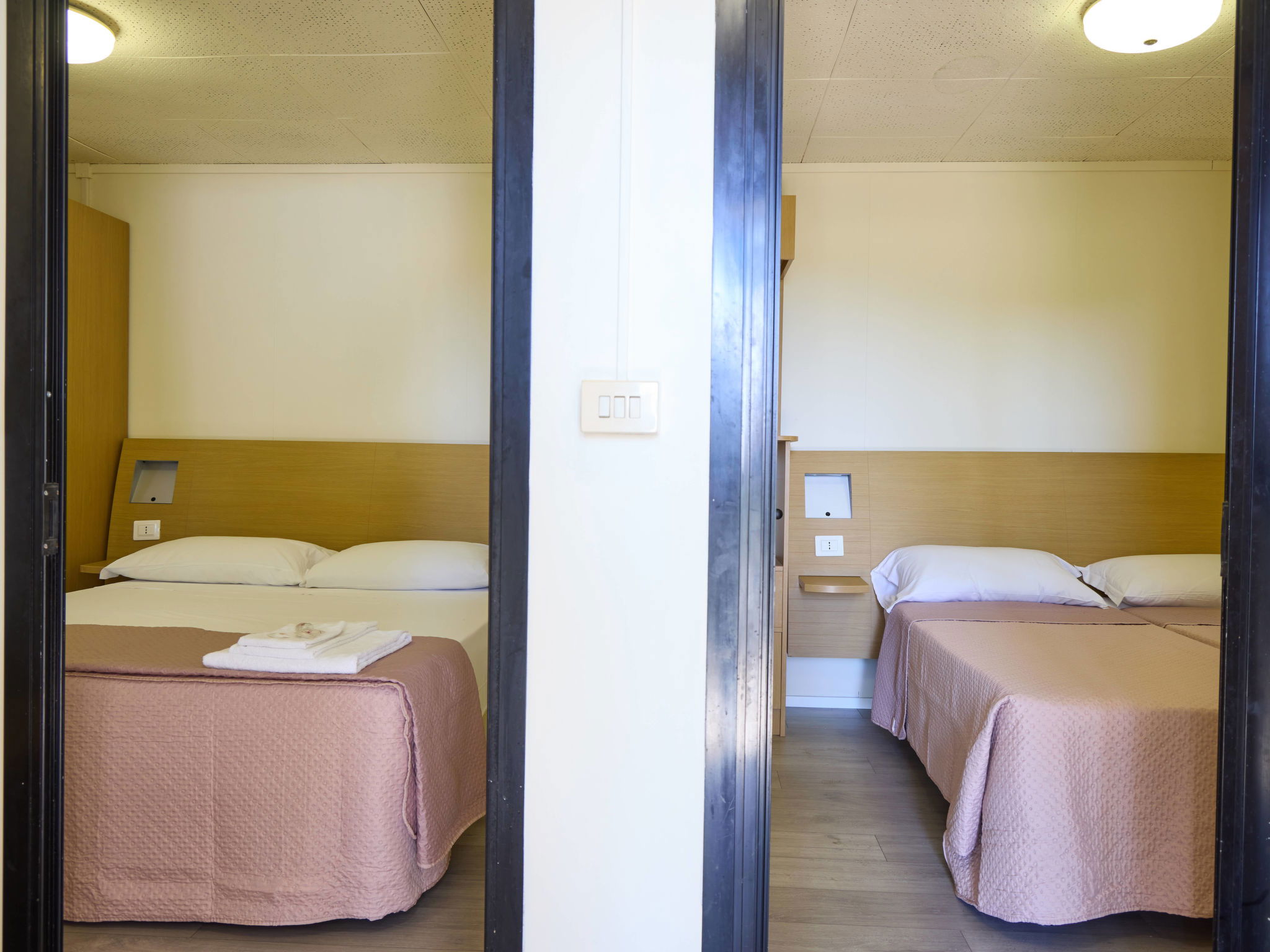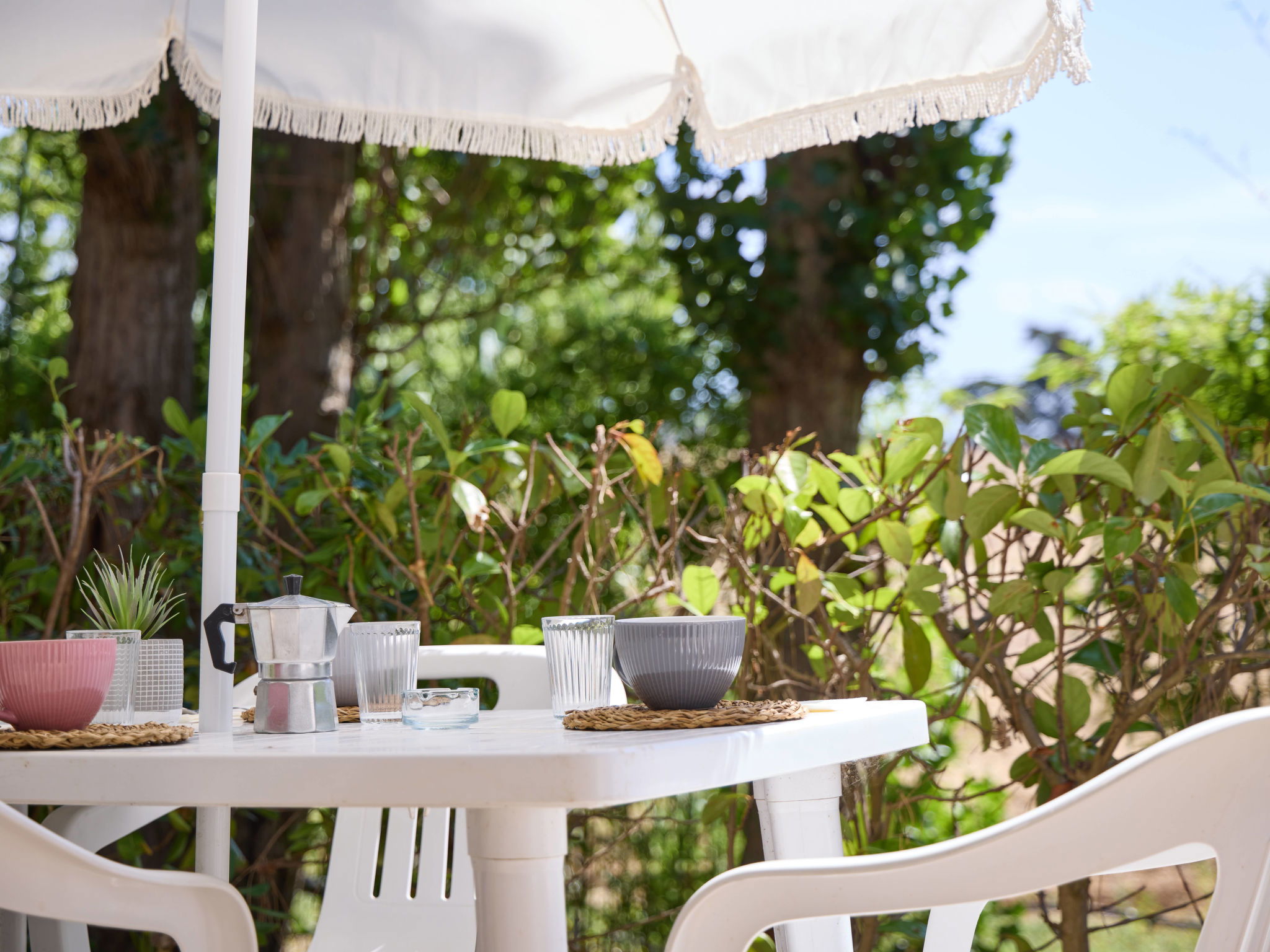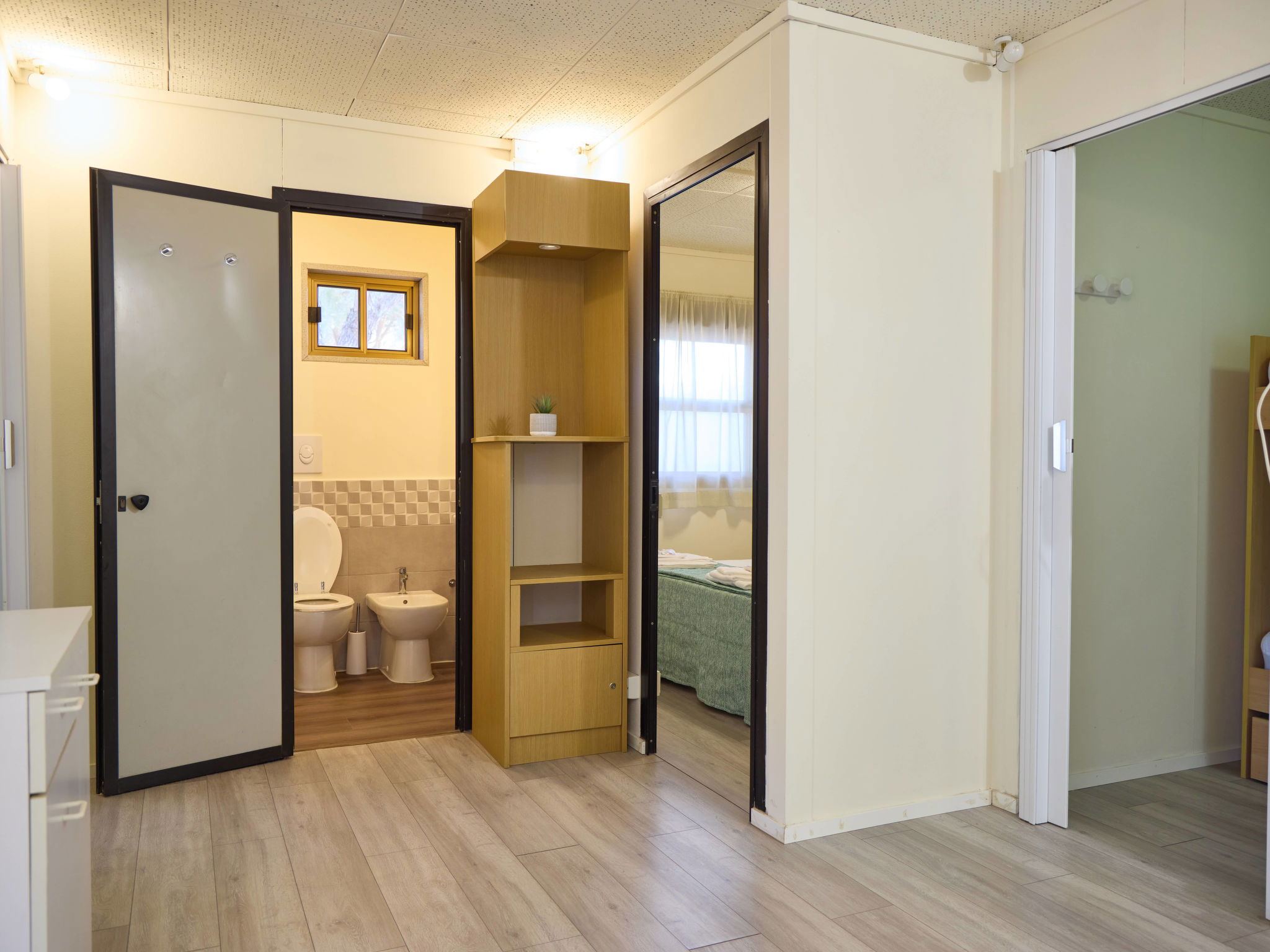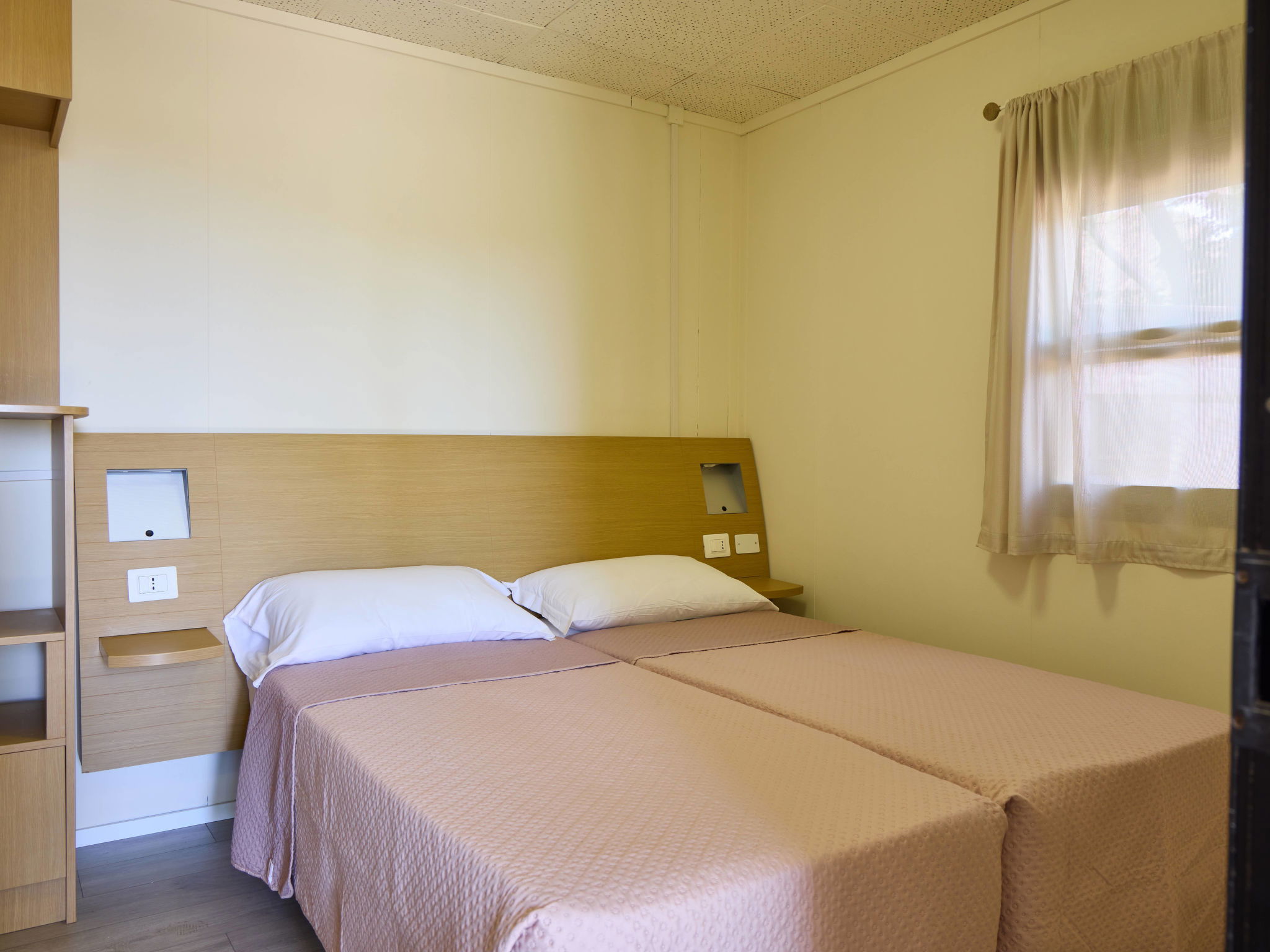"Bungalow Superior", 3-room bungalow 38 m2, on the ground floor. Practical furnishings: living/dining room with 1 sofabed and TV. Exit to the terrace. 1 double bedroom. 1 room with 2 beds. Kitchenette (4 hot plates). Exit to the terrace. Shower/bidet/WC. Air-conditioning, forced-air heating. Terrace. Terrace furniture. Parking (fenced 1 car). Please note: non-smokers only. Maximum 1 pet/ dog allowed. Private entrance.