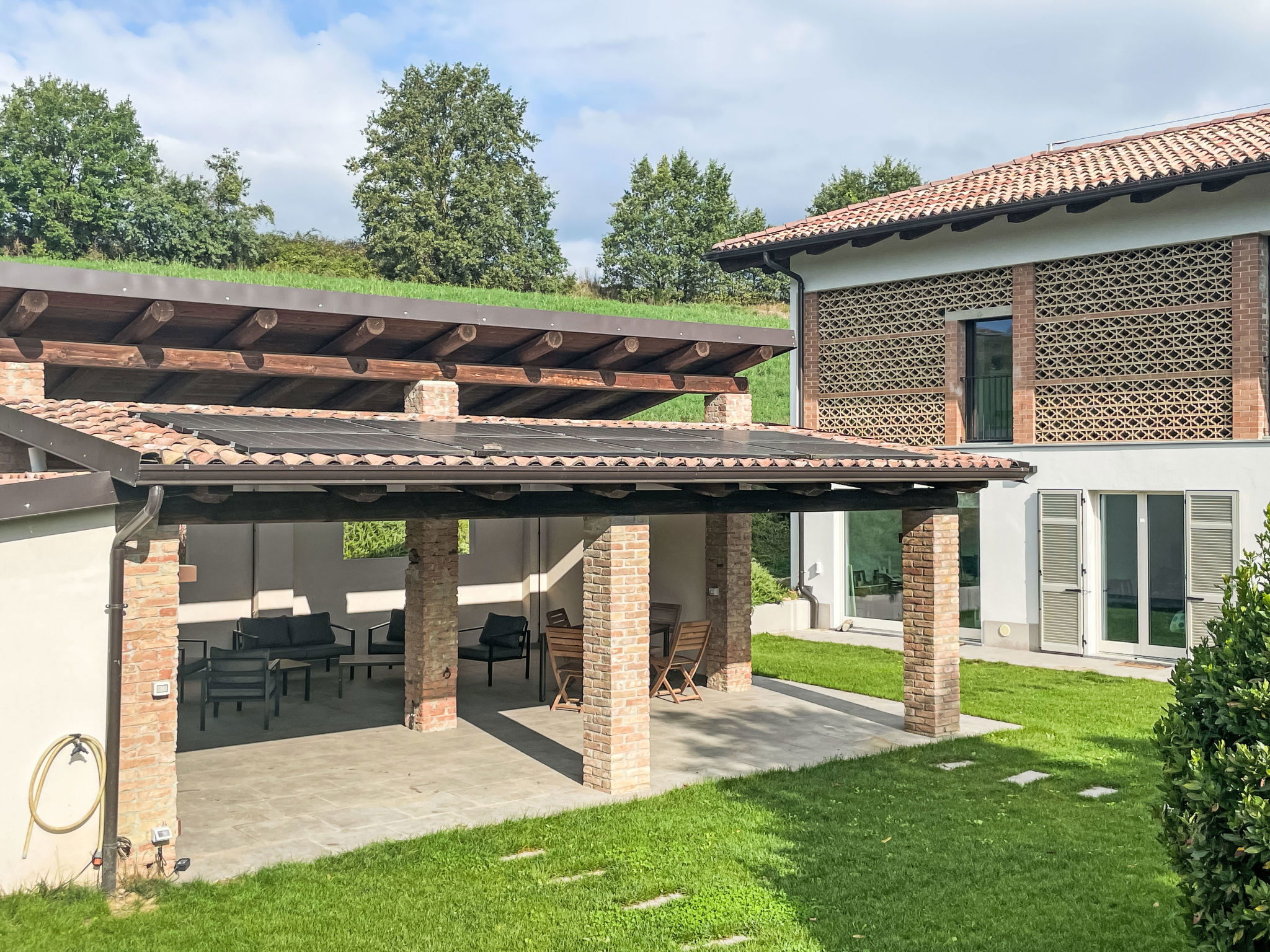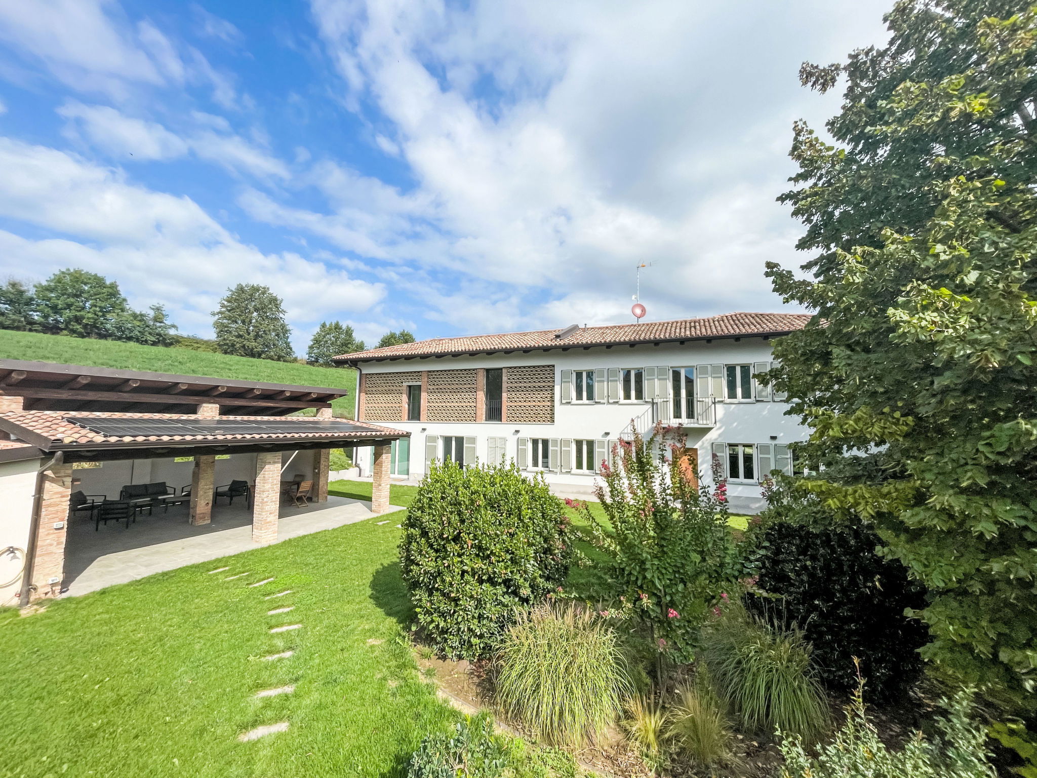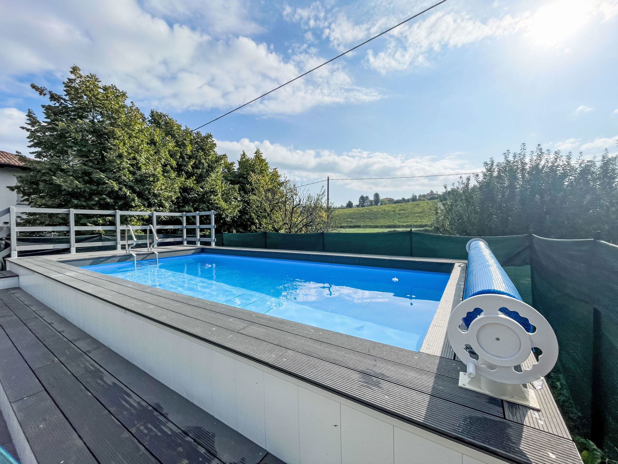 Very modern single-family house "CUADRAT", 2 storeys, built in 2025, surrounded by trees, fields and vineyards. Outside the resort, 2 km from the centre of Isola d'Asti. Private: property 2'000 m2 (fenced), garden with meadow, swimming pool (above ground) (7 x 3 m, seasonal availability: 28.Mar. - 15.Oct.). Parking at the house on the premises. Shopping centre 2 km, restaurant 2 km, bus stop 2 km, railway station "Asti" 10 km. Nearby attractions: Asti 10 km, Alba 30 km, Turin 70 km. Please note: car recommended. Residence with electric gates.