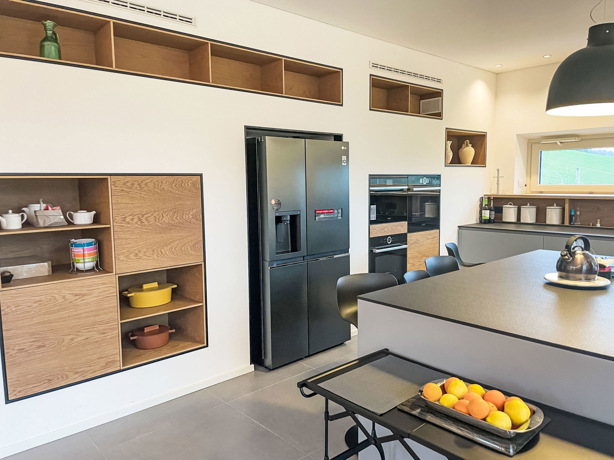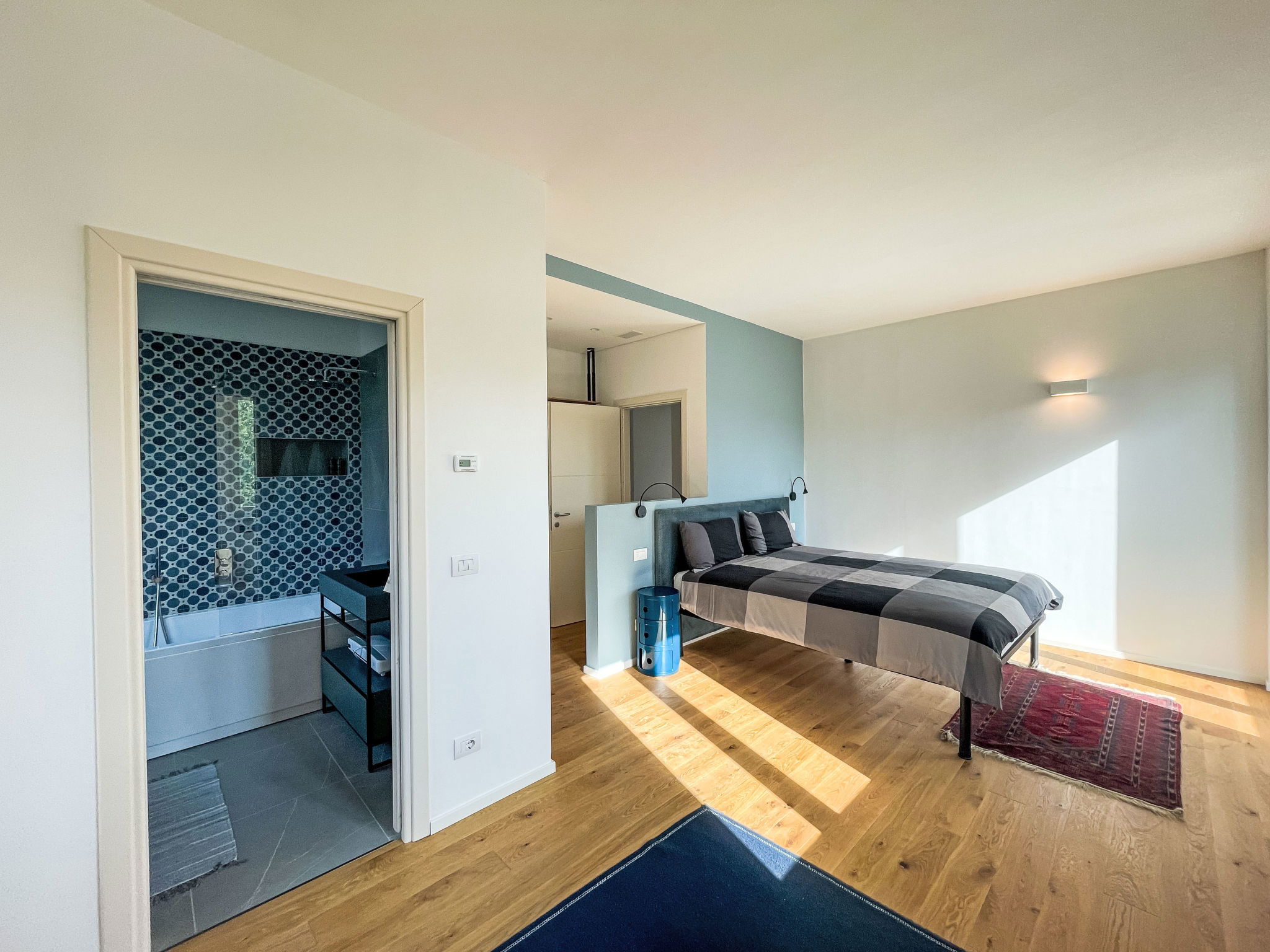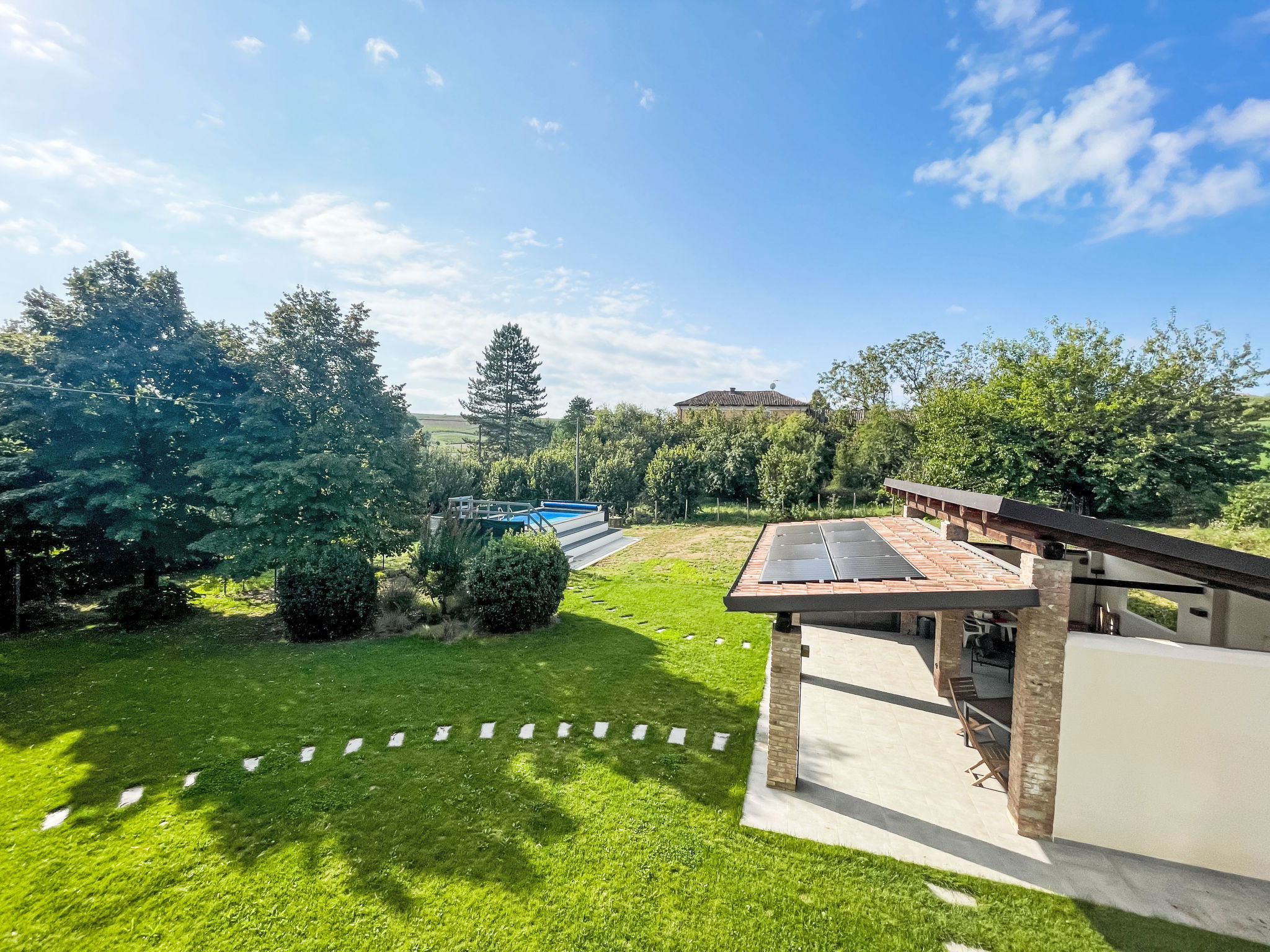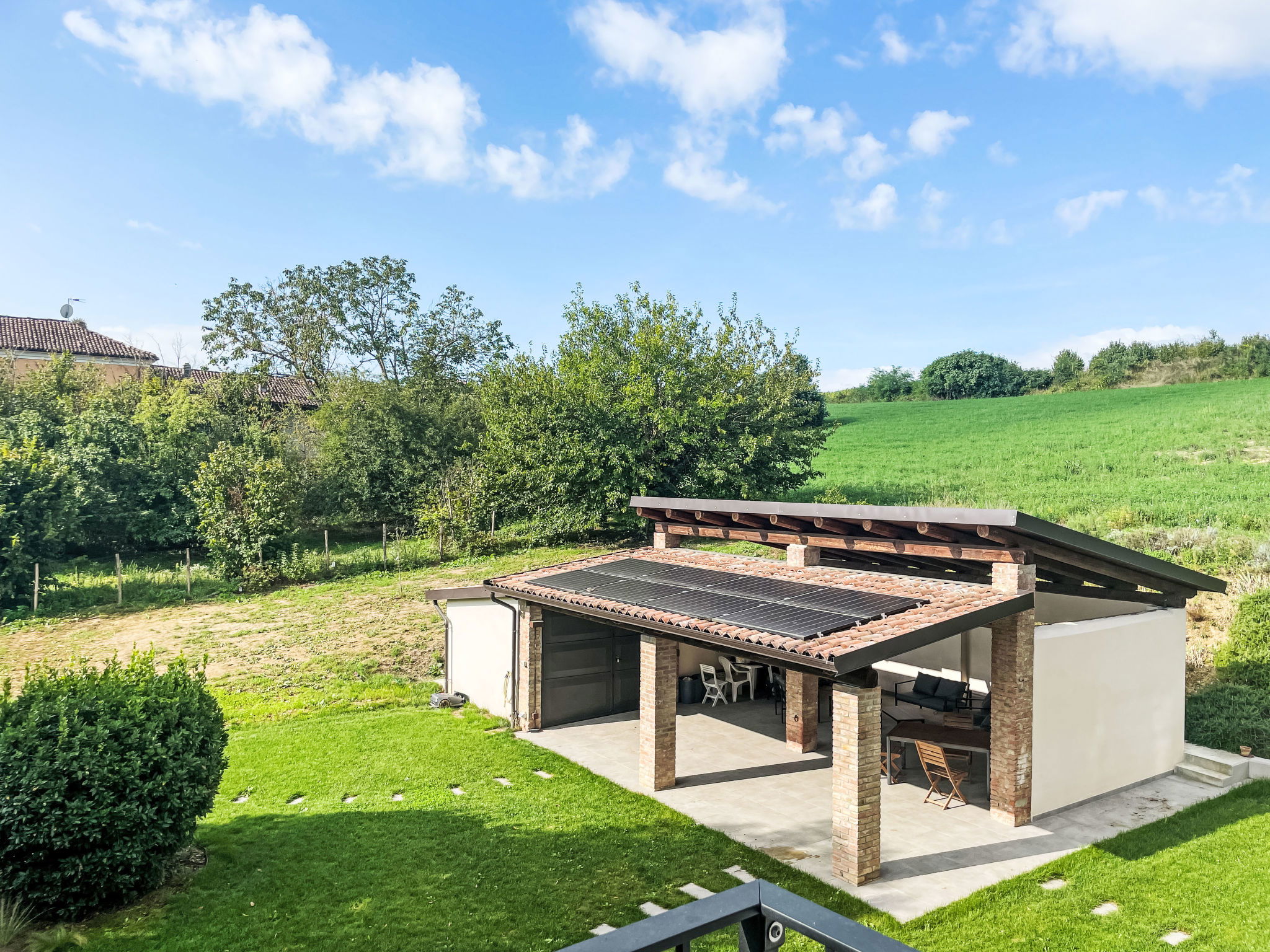 Very modern single-family house "CUADRAT", 2 storeys, built in 2025, surrounded by trees, fields and vineyards. Outside the resort, 2 km from the centre of Isola d'Asti. Private: property 2'000 m2 (fenced), garden with meadow, swimming pool (above ground) (7 x 3 m, seasonal availability: 28.Mar. - 15.Oct.). Parking at the house on the premises. Shopping centre 2 km, restaurant 2 km, bus stop 2 km, railway station "Asti" 10 km. Nearby attractions: Asti 10 km, Alba 30 km, Turin 70 km. Please note: car recommended. Residence with electric gates.