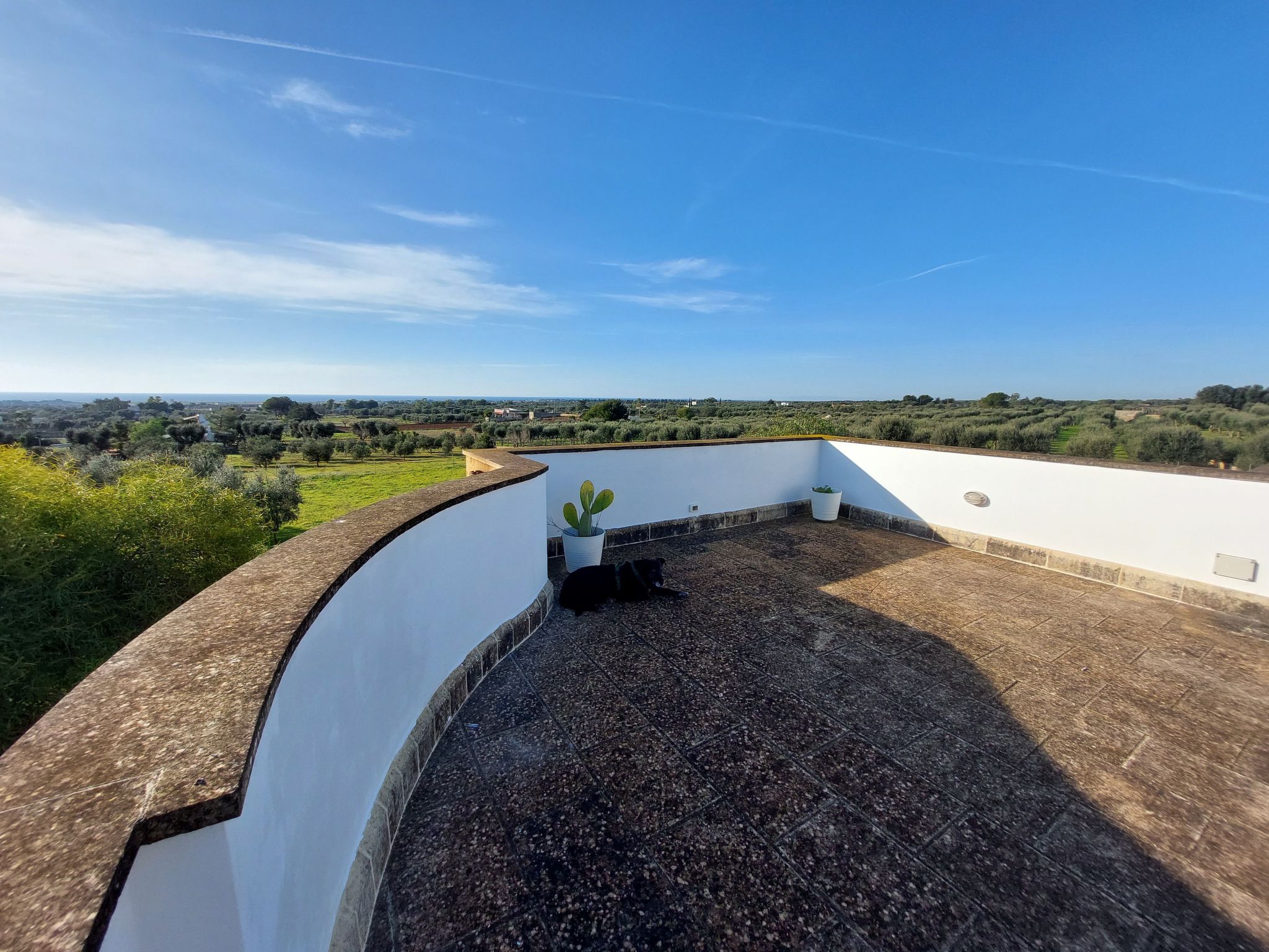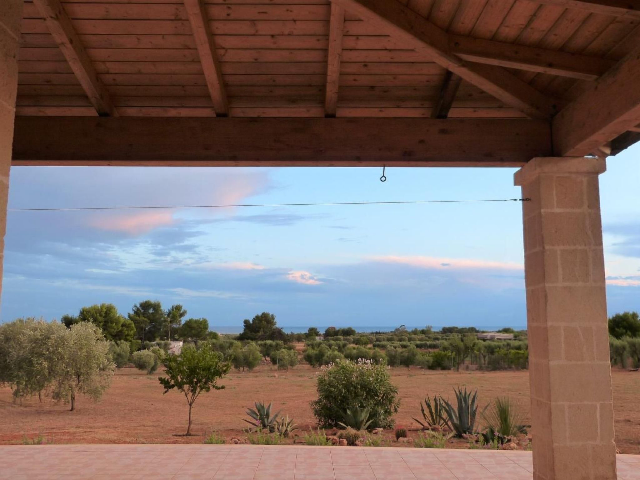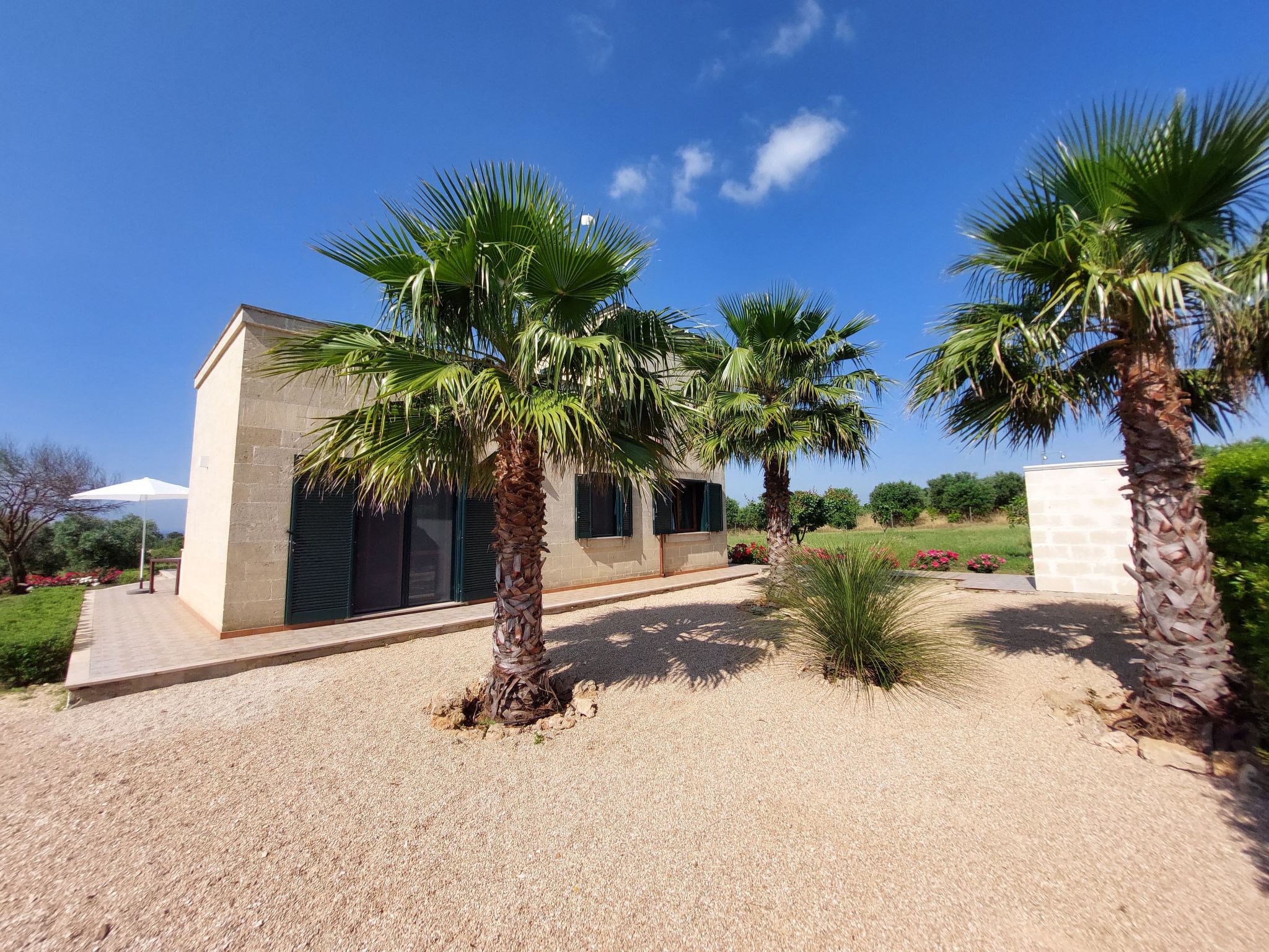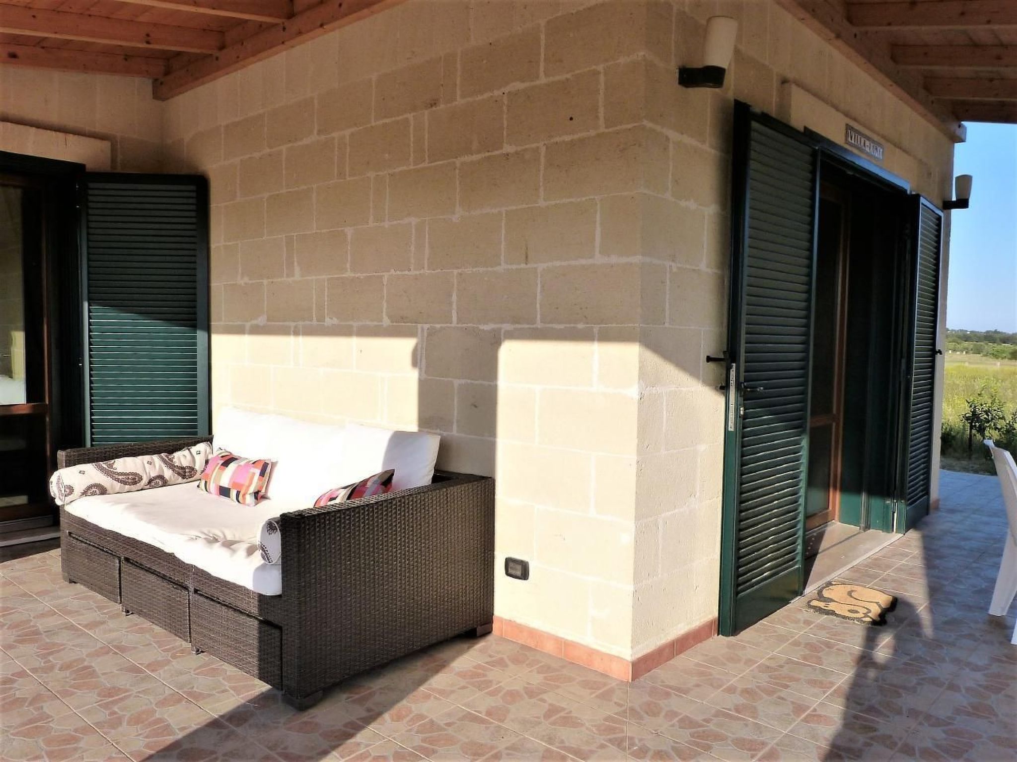 Villa Lona is situated in a slightly elevated and quiet location and offers a fantastic panoramic view of the sea and the surrounding area. Over olive groves and vineyards you can see as far as Gallipoli. There are only neighbours below the house, to the rear the villa borders directly on a nature reserve with the typical Macchia Mediterranea, a subtropical vegetation. The nearest towns with restaurants and shops are San Pietro in Bevagna (3 km) and Maruggio (6 km).
