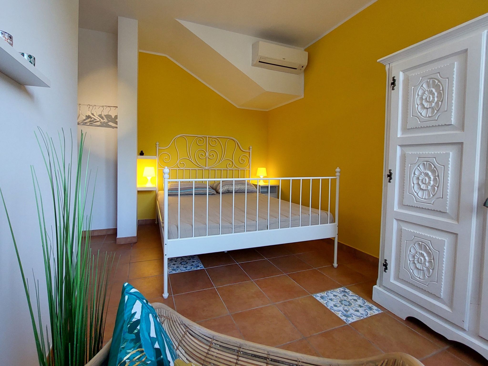 - Bedroom 3 (10 sqm): French bed (width 1.40), open wardrobe, air conditioning, terrace exit