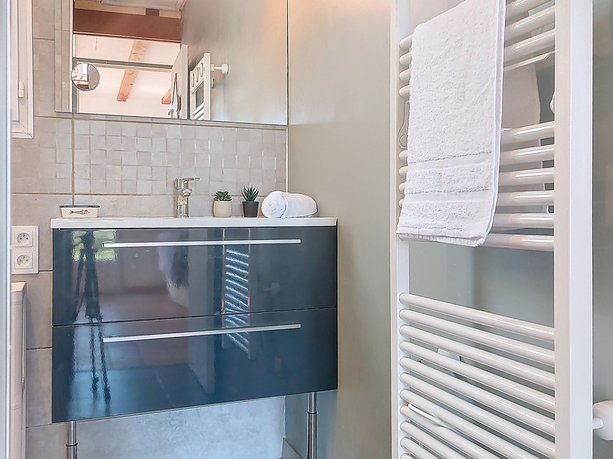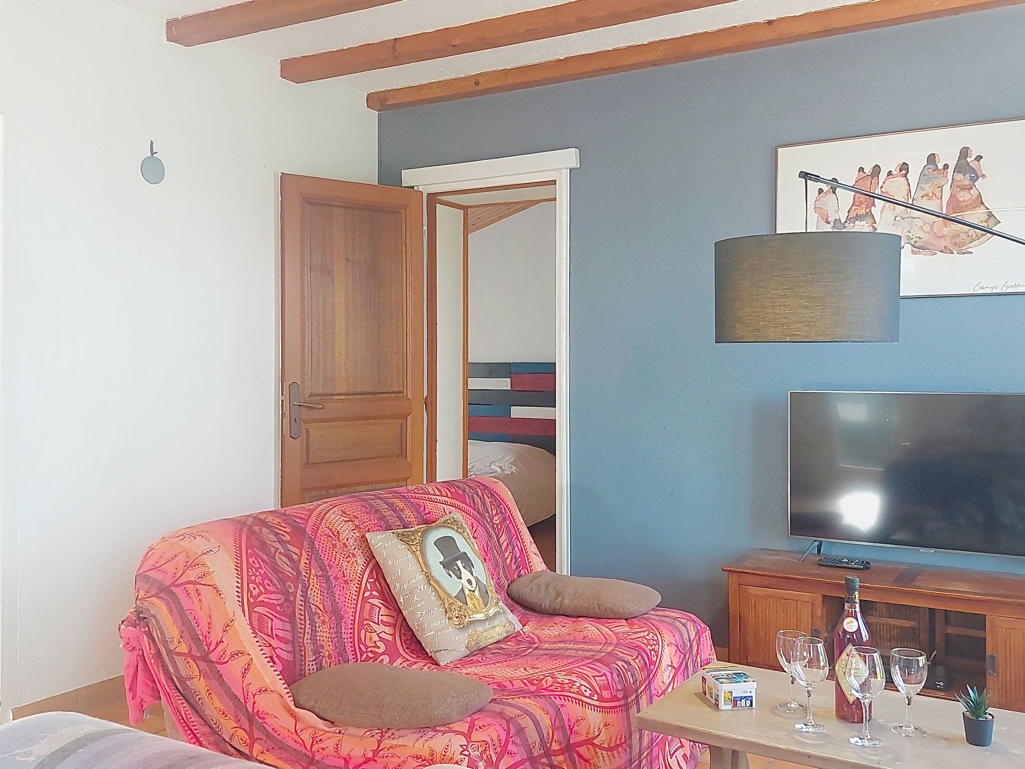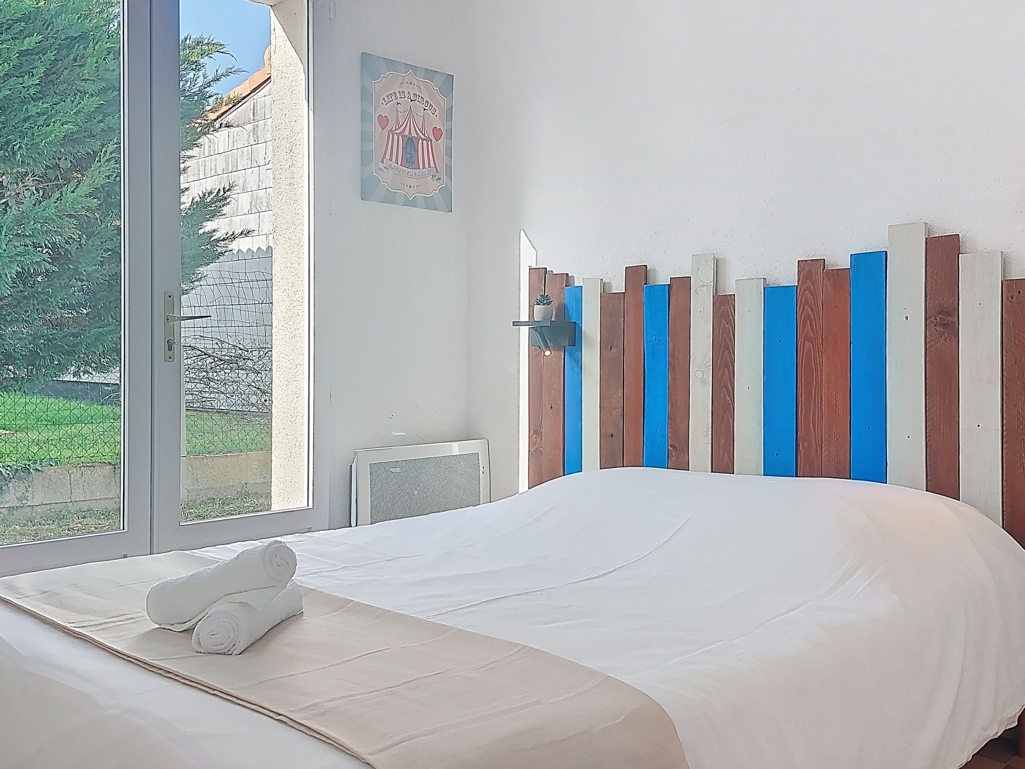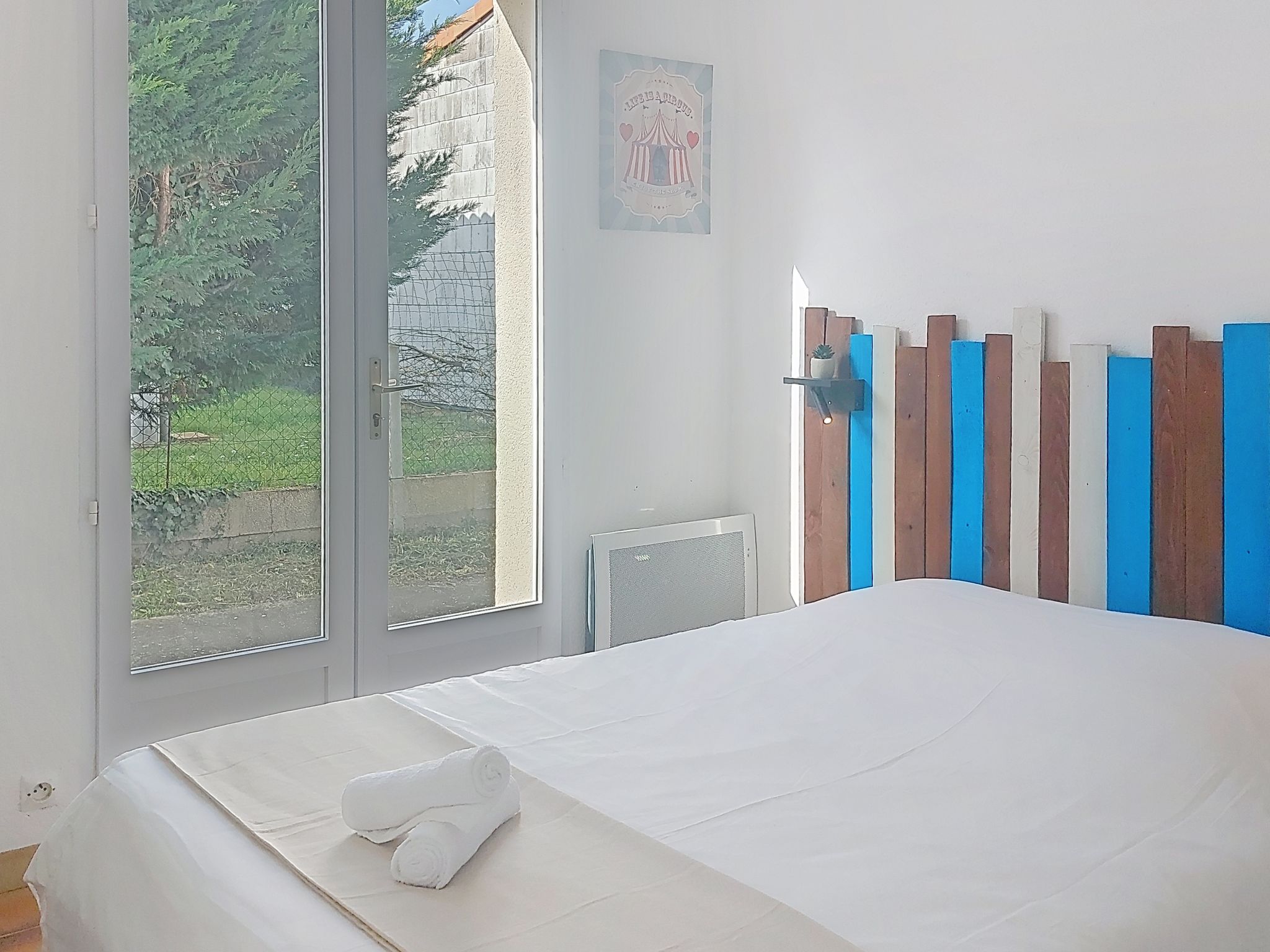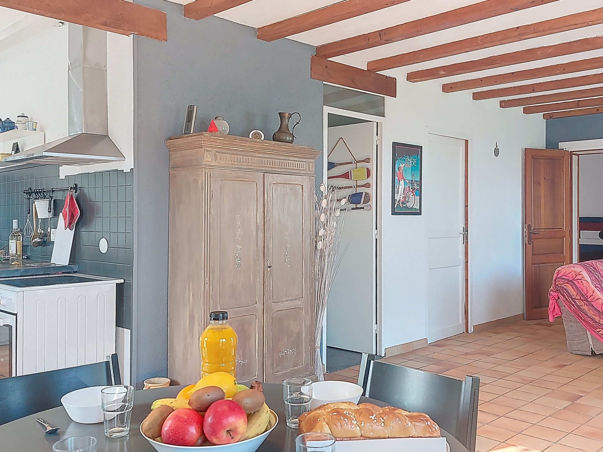 "La Bétaudière", 3-room house 78 m2. Simple and beautiful furnishings: living/dining room with TV (flat screen). Exit to the terrace. 1 room with 1 french bed (1 x 140 cm, length 190 cm). 1 room with 1 french bed (1 x 140 cm, length 190 cm). Open kitchen (oven, dishwasher, 4 induction hot plates, toaster, kettle, microwave, electric coffee machine). Bathroom, sep. WC. Electric heating. Terrace 70 m2. Terrace furniture, barbecue. Facilities: washing machine, hair dryer. Internet (WiFi, extra). Parking (fenced). Please note: non-smoking house. Maximum 1 pet/ dog allowed. Smoke alarm. Offer by a private individual according to Art. 155, IV of CGI. 17323000262A9