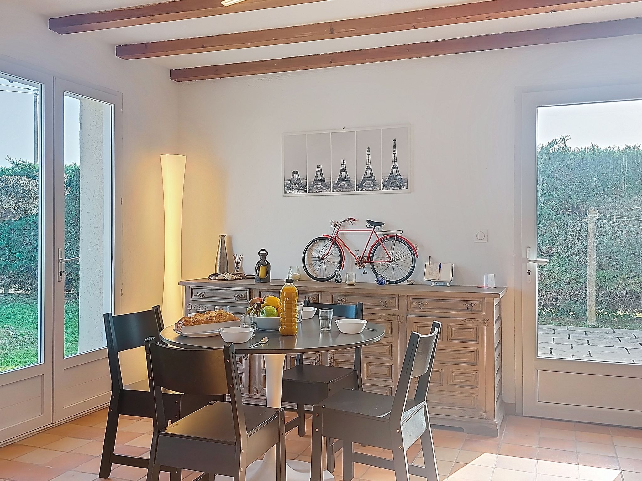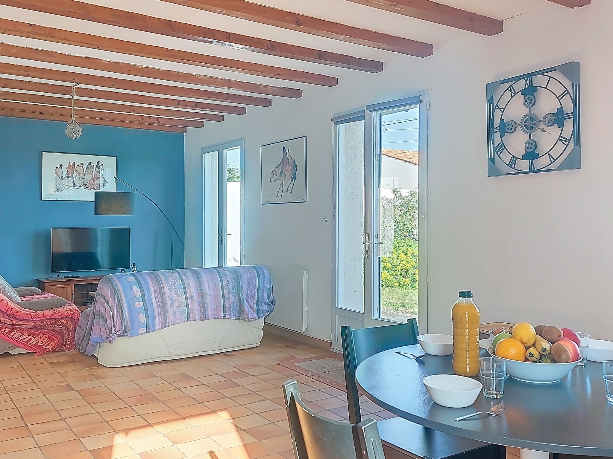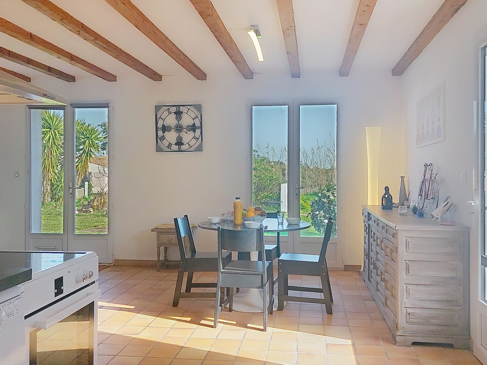 Beautiful single-family house "La Bétaudière". In the resort 2 km from the centre of Saint Denis d'Oléron, in a quiet position, 1.5 km from the sea, 1.5 km from the beach. Private: large garden (fenced), parking on the premises. Shop 2 km, grocery 2 km, supermarket 11 km, restaurant 2 km, bar 2 km, bakery 2 km, café 2 km, pedestrian zone 2 km, bicycle rental 2 km, bus stop "Cheray D734" 6 km, railway station "Rochefort sur Mer" 56 km, sandy beach "Les Huttes" 1.5 km. Sports harbour 2.6 km, golf course (9 hole) 18 km, surf school 1.5 km, sailing school 2.6 km. Nearby attractions: Centre aquatique Iléo 18 km, Phare de Chassiron 5 km, Port de la Cotinière 15 km, Corderie Royale Rochefort 56 km, La Rochelle 86 km.