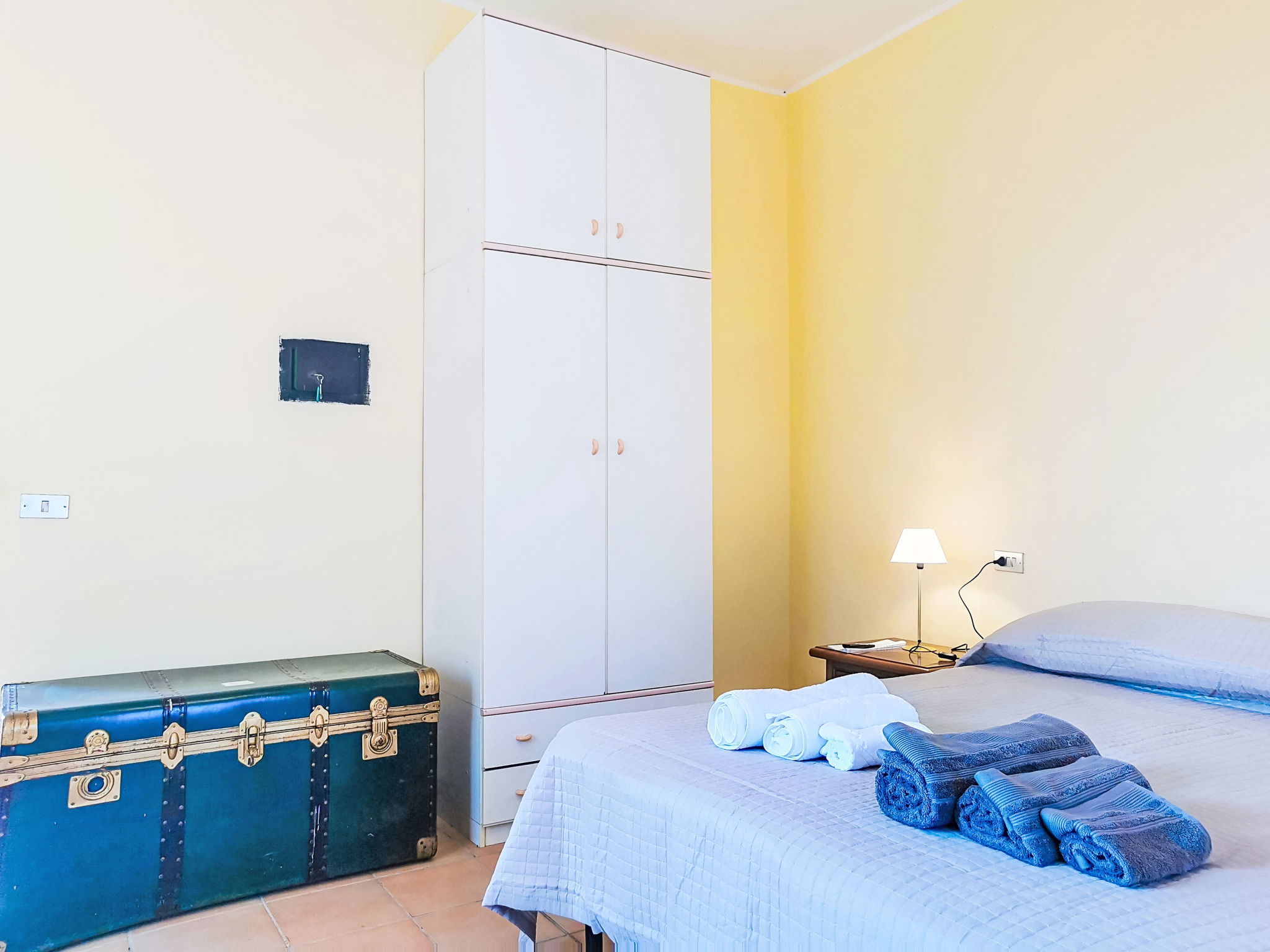 "Velia's House", 3-room cottage 130 m2 on 2 levels. Practical and comfortable furnishings: living/dining room with dining table and TV. Exit to the garden. Open kitchen (4 hot plates, oven, kettle, electric coffee machine, Capsules for coffee machine (2) free). Sep. WC. Upper floor: 1 room with 1 double bed. 1 room with 1 double bed. Open walk-through room with 1 double sofabed. Shower/bidet/WC. Beautiful view of the valley. Facilities: washing machine, children's high chair, baby cot for up to 2 year olds, hair dryer. Internet (WiFi, free). Maximum 2 pets/ dogs allowed. IT068031C2DYZW7C8W
