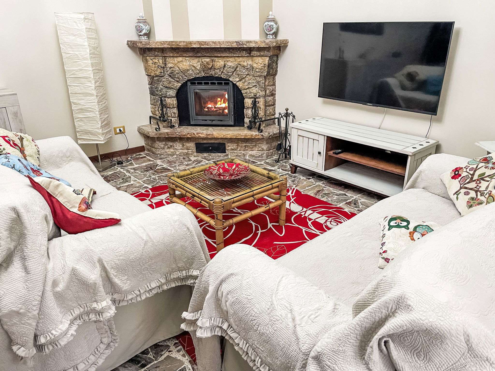5-room house 180 m2. Beautiful and cosy furnishings: living room with open-hearth fireplace, dining table, TV and air conditioning. Exit to the balcony. 2 double bedrooms. Exit to the balcony. 1 room with 1 bed. Kitchen (oven, dishwasher, Gas stove, 4 gas rings, toaster, kettle, microwave, electric coffee machine). Exit to the balcony. Bath/WC, shower/bidet/WC. Heating. Heating available only from 15.10. to 15.04. On the lower ground floor: living/sleeping room with 1 double bed and shower/WC. Exit to the garden. Open kitchen (oven, Gas stove, 4 gas rings, microwave). Natural stone floors. Large terrace 50 m2, large terrace 30 m2. Terrace furniture, barbecue, deck chairs (4). Very beautiful panoramic view of the countryside. Facilities: washing machine, baby cot. Internet (WiFi, free). Please note: one double bedroom is outside the apartment. 1 small pet/ dog allowed. Smoke alarm, fire extinguisher. No internal connecting door between the floors. When there are less than the maximum number of guests staying at the property, one floor will not be available for use. IT006001C2Z3TDWUWO