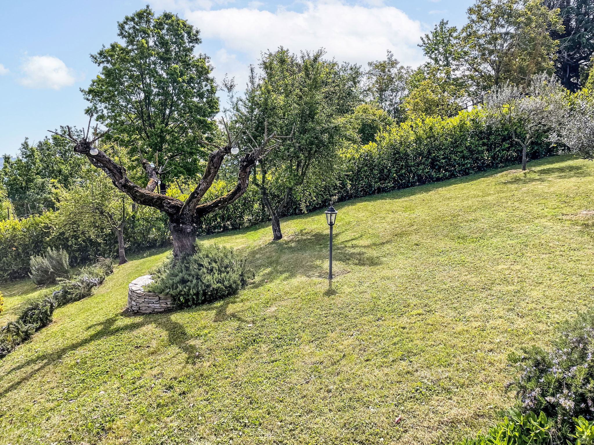 Rustic single-family house "Bellavista", 2 storeys, surrounded by trees and meadows. Outside the resort, 2 km from the centre of Acqui Terme, in a quiet, sunny position on top of a hill, 55 km from the sea. Private: natural state property 2'500 m2 (fenced) with lawn and trees, meadow, parking at the house on the premises. Shop 2 km, supermarket 2 km, restaurant 50 m, bus stop 2.1 km, pebble beach "Varazze" 55 km. Nearby attractions: Alba 50 km, Asti 40 km. Please note: car recommended. Part of the house is closed and unoccupied.