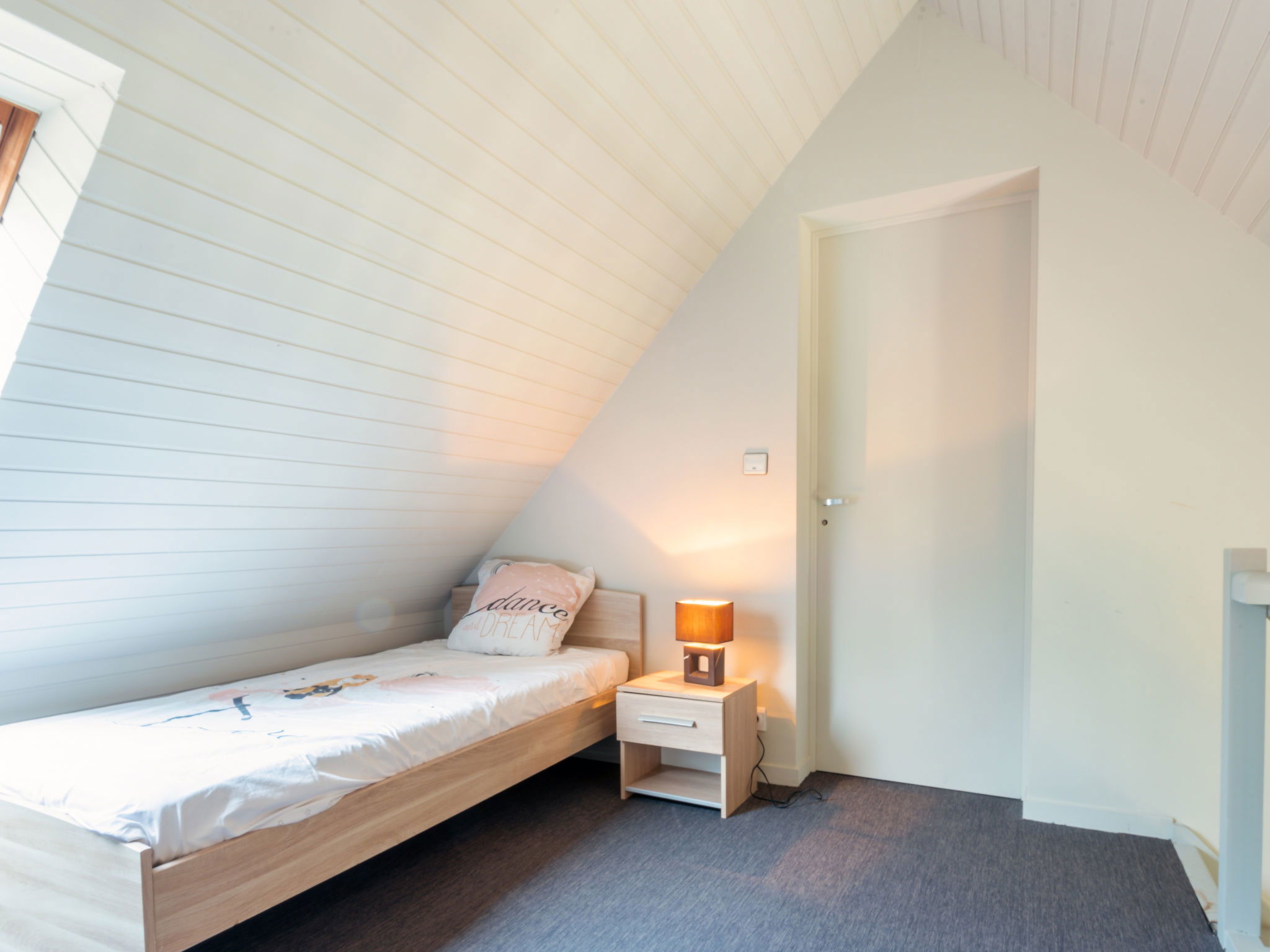 7-room house 250 m2. Comfortable and beautiful furnishings: living/dining room with panoramic window with TV (flat screen), electric heating. Exit to the terrace. 1 room with 1 french bed (160 cm, length 200 cm) with bathroom and separate WC. Open kitchen (oven, dishwasher, 3 induction hot plates, toaster, kettle, microwave, electric coffee machine). Upper floor: 2 rooms (1 x 160 cm, length 200 cm). 1 room (90 cm, length 200 cm) (1 x 160 cm, length 200 cm). 1 room with 3 beds (90 cm, length 200 cm). Bathroom, sep. WC. Facilities: washing machine, dryer. Please note: maximum 1 pet/ dog allowed. Smoke alarm.