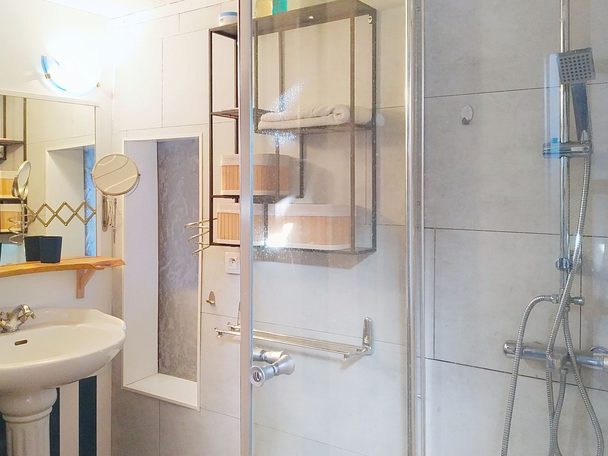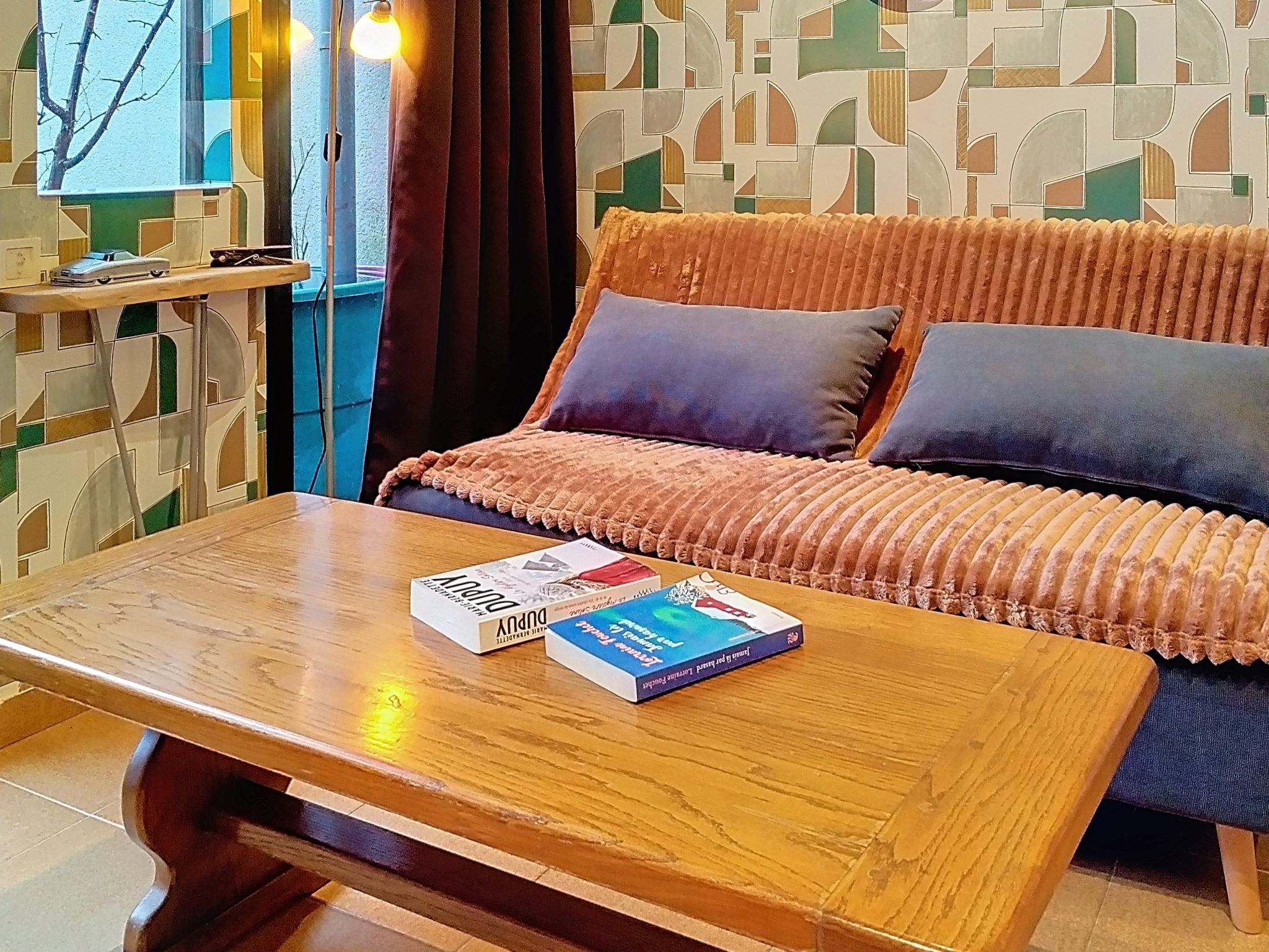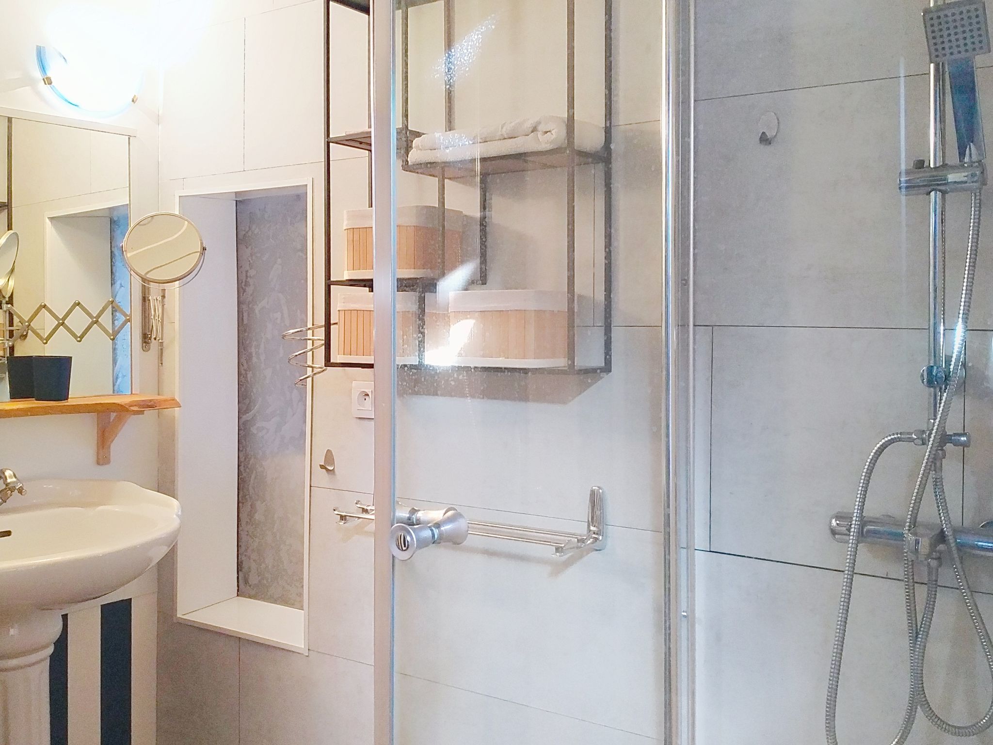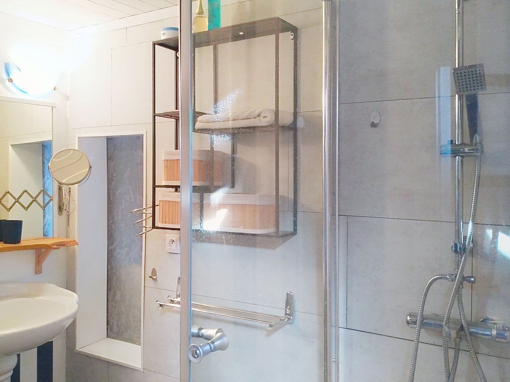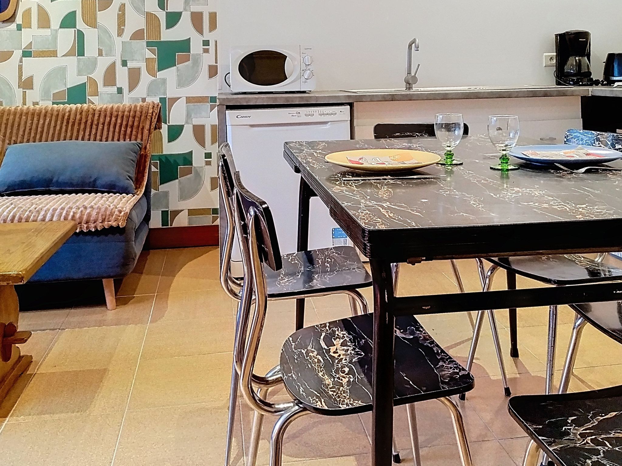 2-room house 35 m2. Comfortable and cosy furnishings: lounge with TV (flat screen). Exit to the terrace. Living/dining room. 1 room with 1 french bed (140 cm, length 190 cm). Open kitchen (4 hot plates, oven, toaster, kettle, microwave, electric coffee machine). Shower/WC. Parking (1 car). Please note: non-smokers only. Maximum 1 small pet/ dog allowed. Smoke alarm. Offer by a private individual according to Art. 155, IV of CGI.