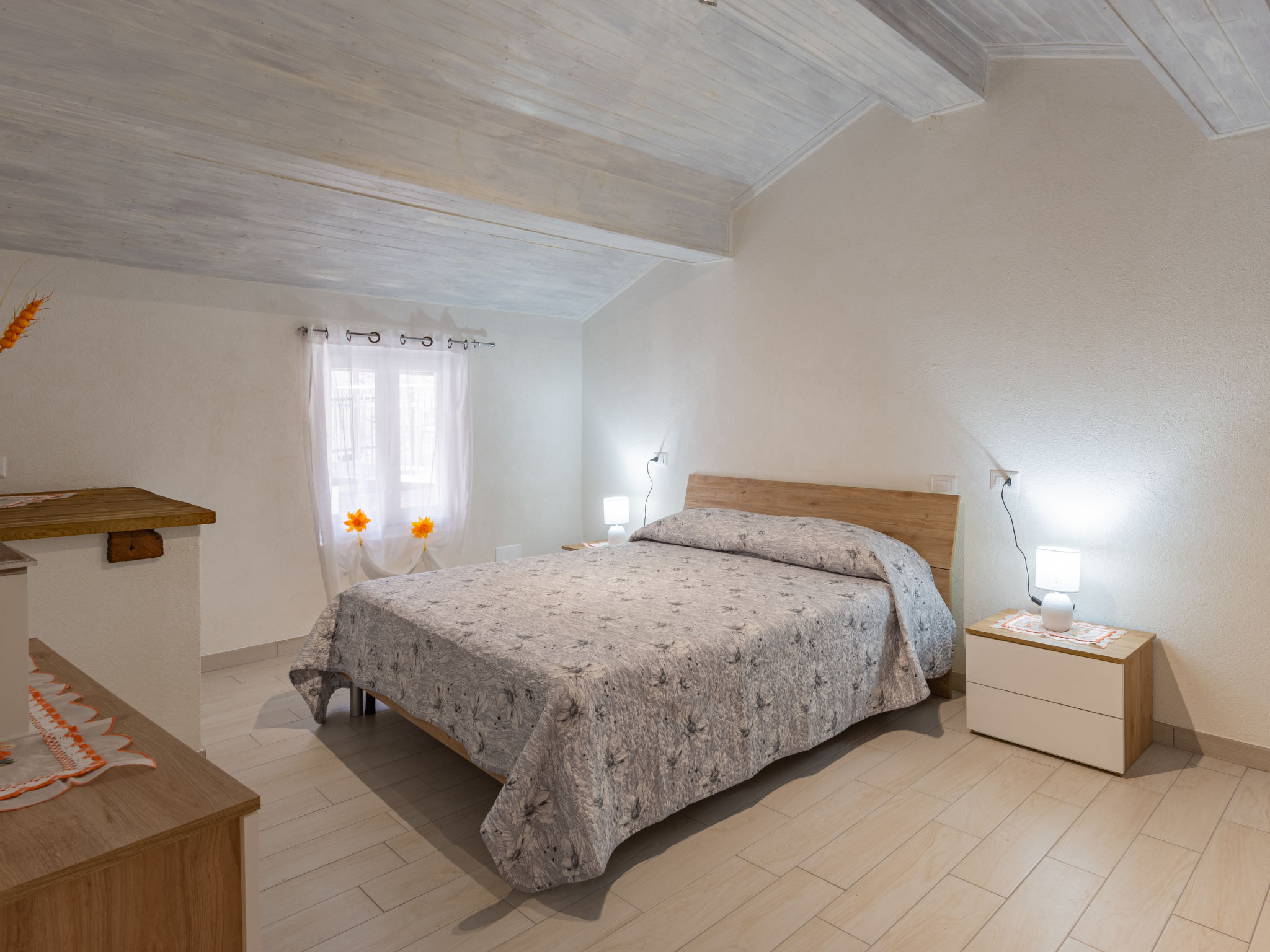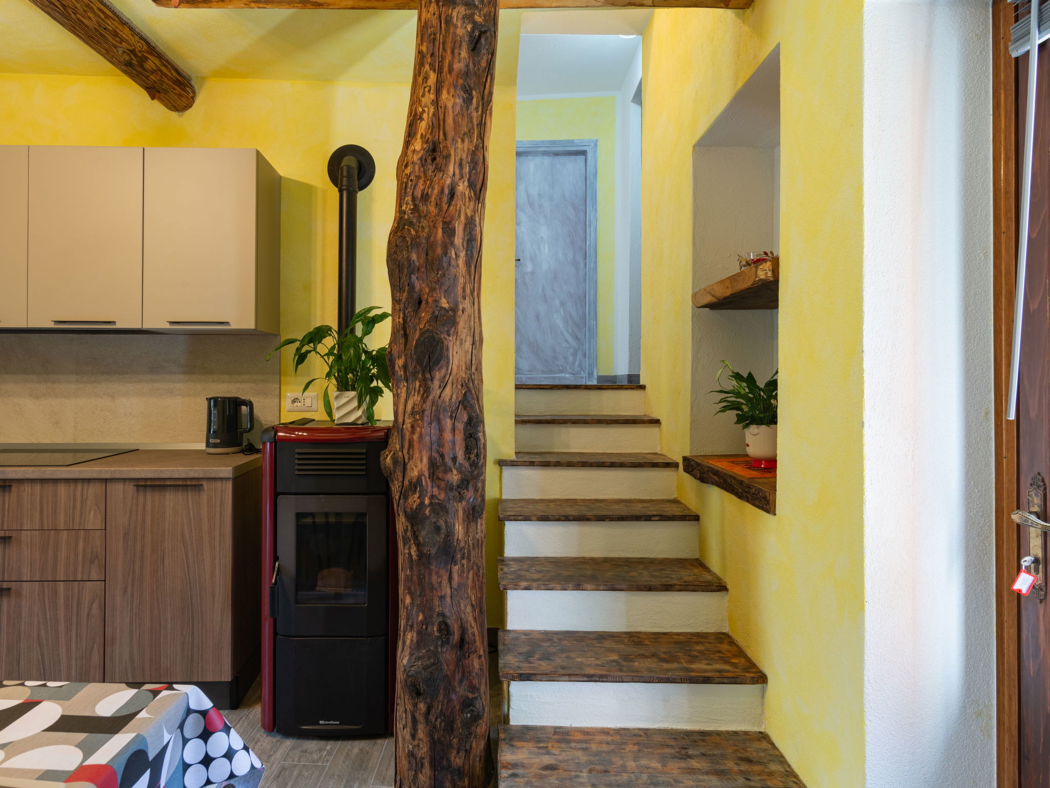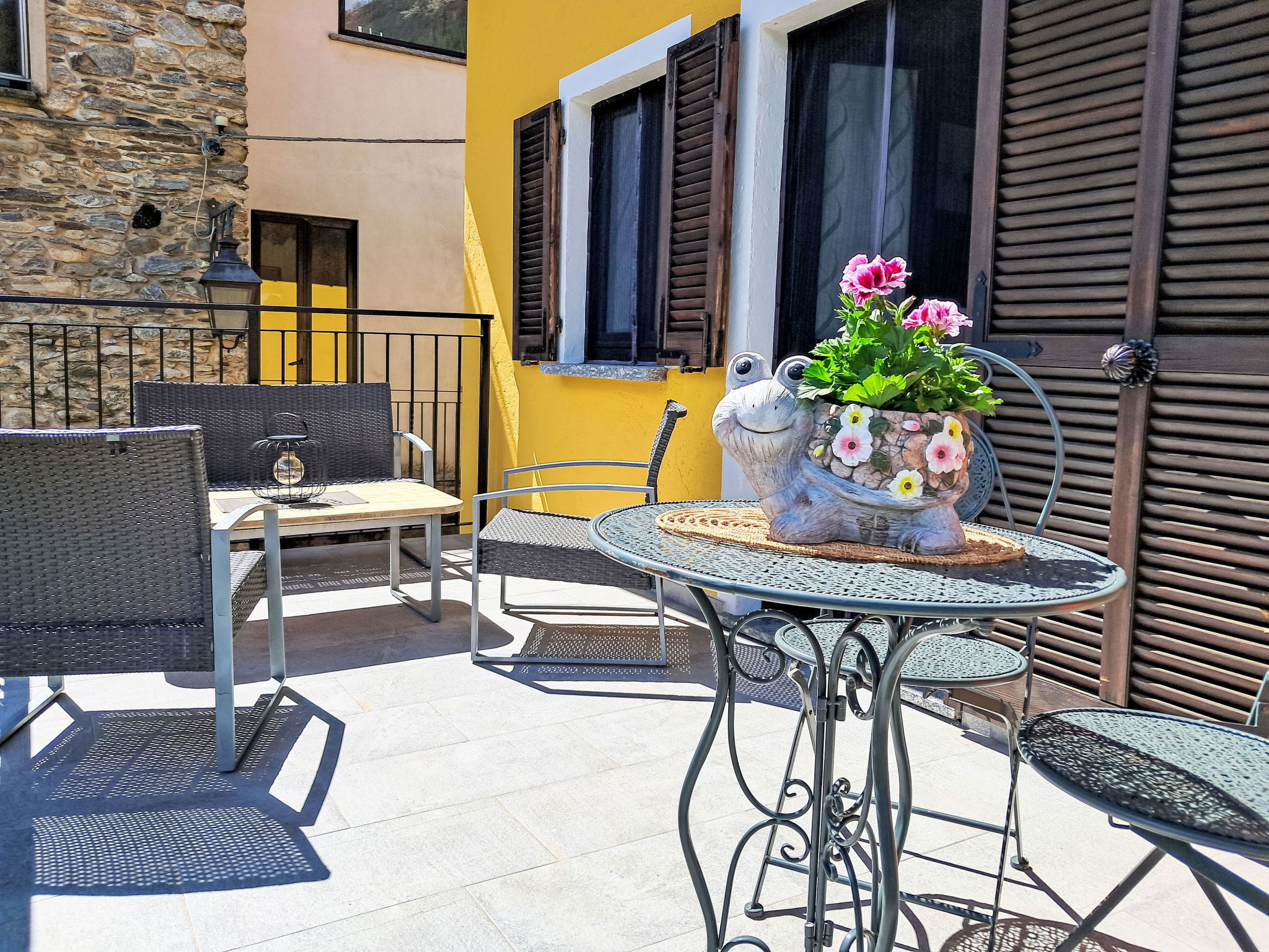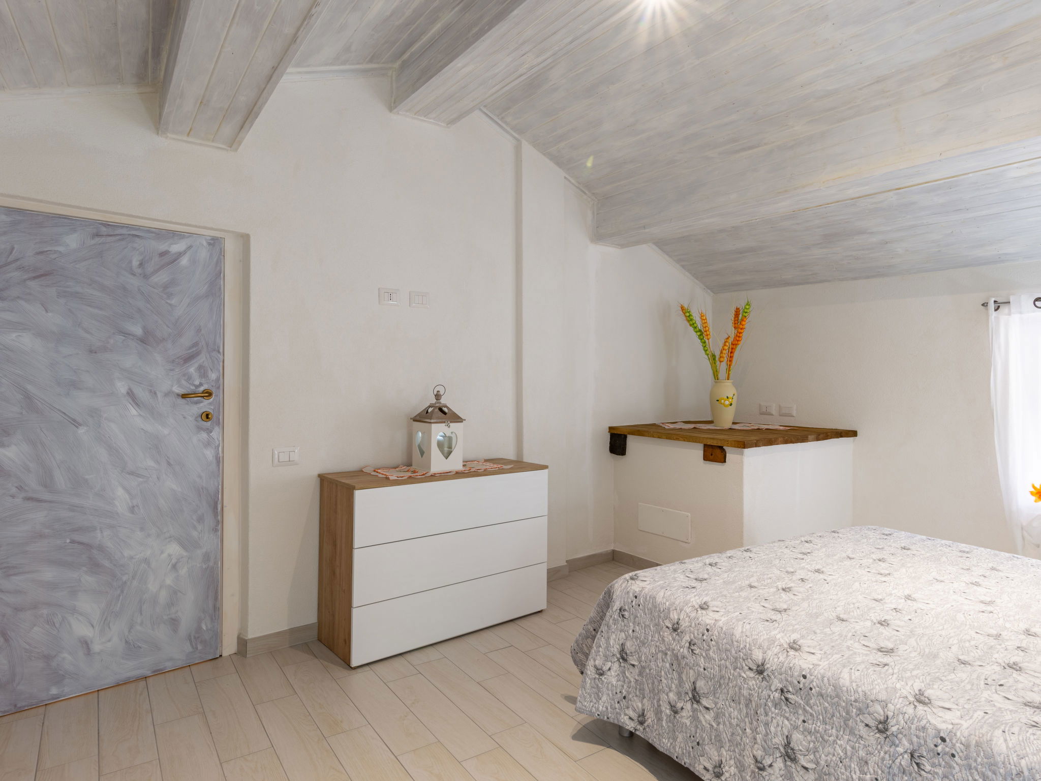 3-room house 100 m2 on 3 levels, on the upper ground floor. Rustic and tasteful furnishings: open living room with TV. Exit to the balcony. 1 double bedroom. Large, open kitchen (oven, dishwasher, 4 induction hot plates, toaster, electric coffee machine) with dining table. Exit to the terrace. Hip bath/bidet/WC. Heating. Heating not available in all rooms. Upper floor: 1 room with 1 x 2 bunk beds, 1 double bed. Small balcony, small terrace, large patio. Terrace furniture, balcony furniture, barbecue, deck chairs (2). Marvellous view of the mountains. Facilities: washing machine, children's high chair, baby cot for up to 2 year olds, hair dryer. Internet (WiFi, free). Please note: non-smoking house. Maximum 1 pet/ dog allowed. IT013216C2F82B9EYI