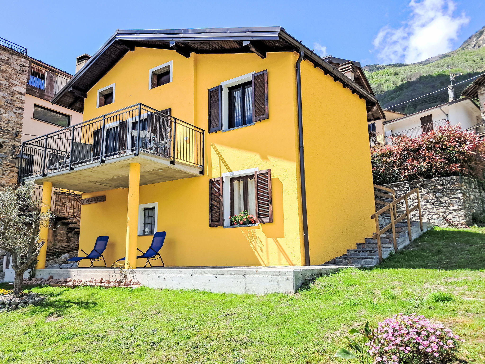 House "Leonardo", 420 m a.s.l., semi-detached. In the hamlet Albonico 9 km from the centre of Sorico, 70 km from the centre of Como, 55 km from the centre of Lecco, on a slope, 9.5 km from the lake, 7 km from the river. Private: property 500 m2, garden (not fenced). Hot tub. 9 km long narrow motor access to the house (mountain road). Public parking 50 m. Supermarket 9.5 km, bus stop 6 km, railway station "Colico" 17 km, sandy beach "Sorico (La Punta)" 9.5 km, outdoor swimming pool 11 km. Marina 11 km, golf course (18 hole) 40 km. Nearby attractions: Cycle path Sorico - Domaso, Chiesa San Miro. Well-known lakes can easily be reached: Lago di Mezzola. Hiking paths: Pian di Spagna. Please note: car recommended. Loading and unloading of baggage is possible at the holiday house.