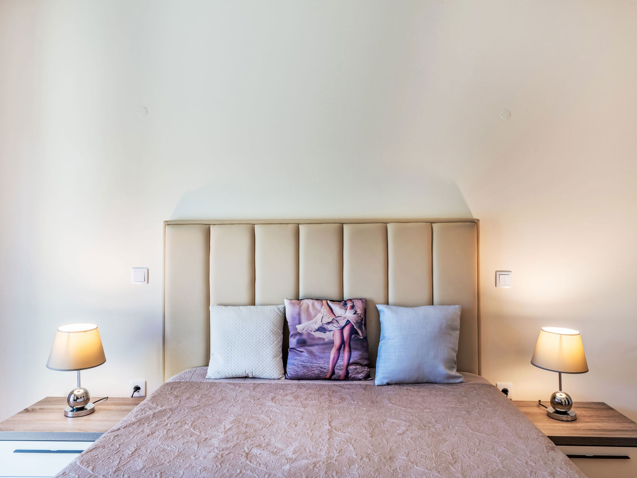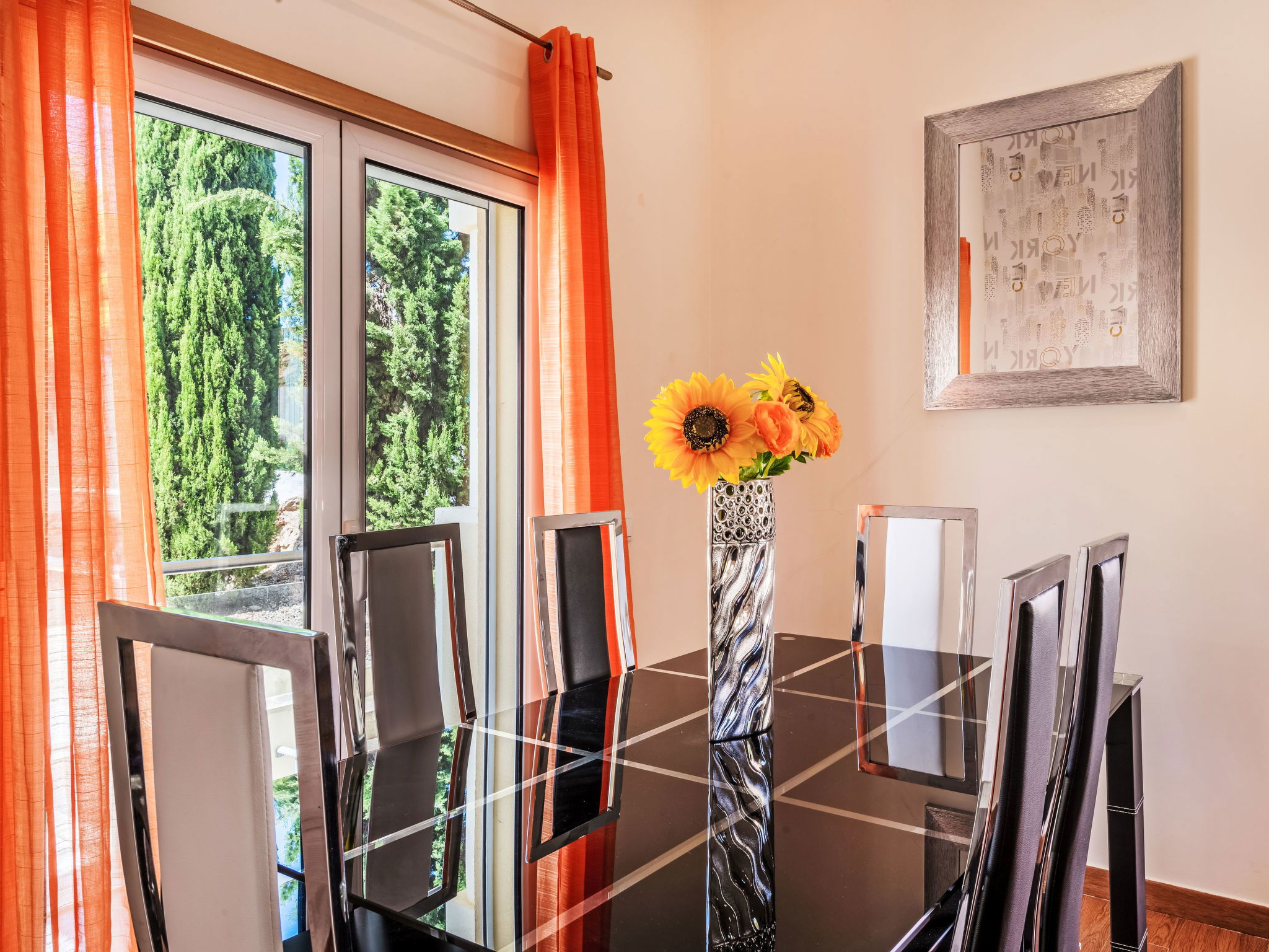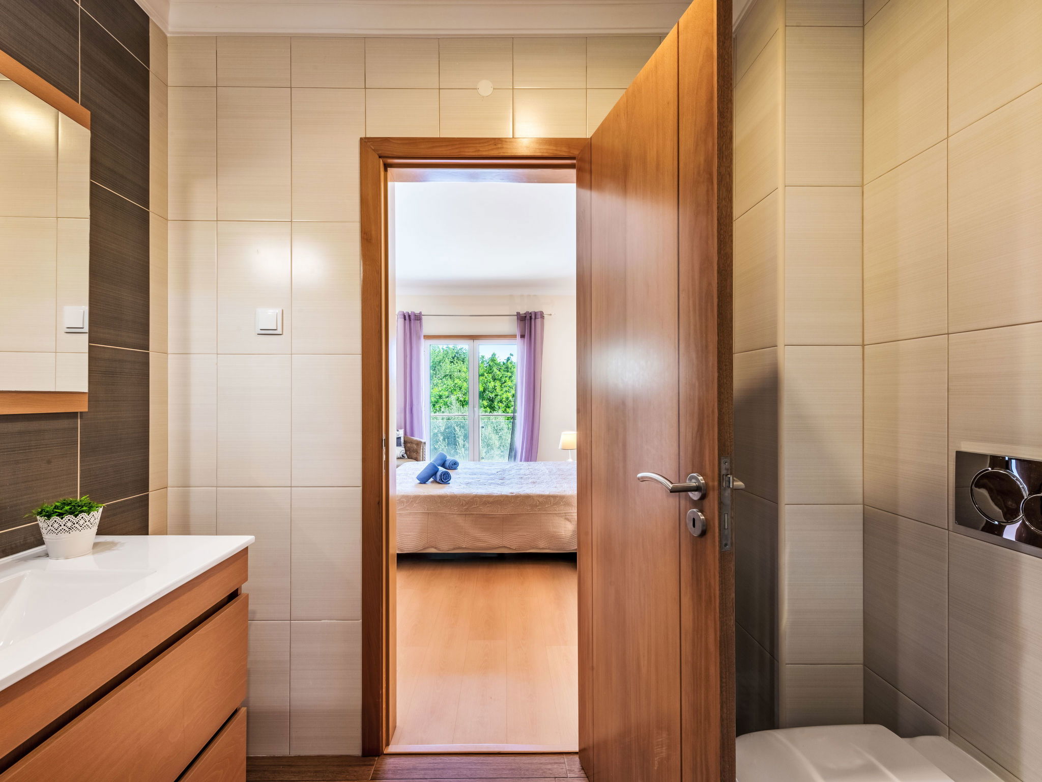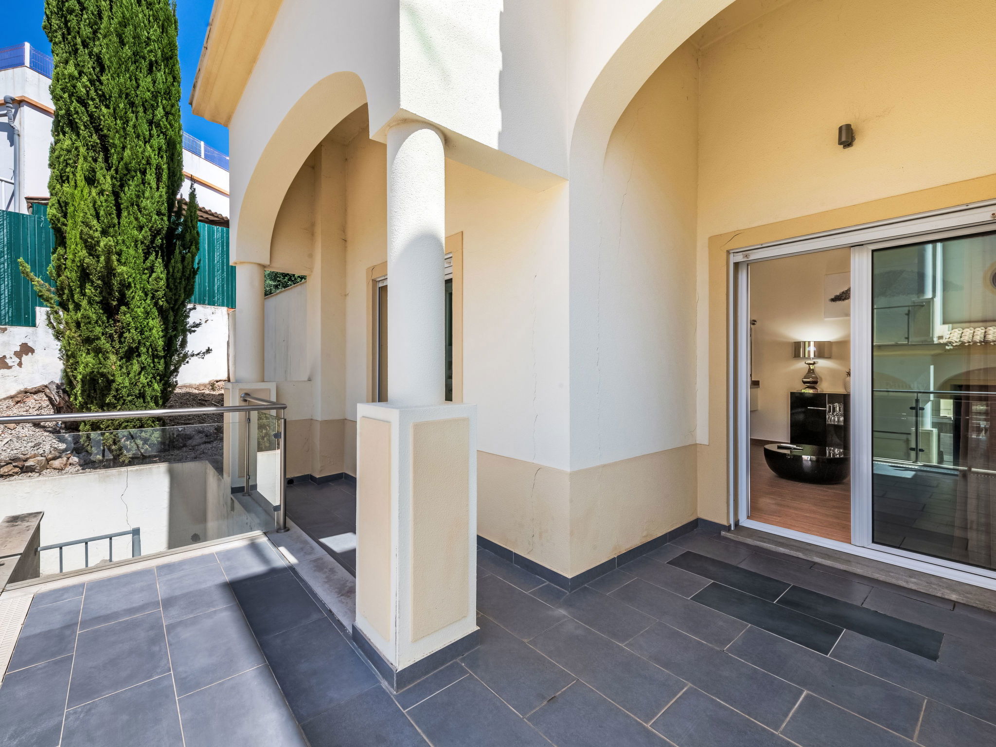 "Vila Parra", 3-room terraced house 137 m2. Very comfortable and cosy furnishings: kitchen (oven, dishwasher, 4 ceramic glass hob hotplates, toaster, kettle, microwave, freezer, electric coffee machine, Capsules for coffee machine (Dolce Gusto Not Incl)). Sep. WC. On the lower ground floor: living/dining room with cable TV, international TV channels, flat screen, air conditioning and forced-air heating. Exit to the terrace. Upper floor: 2 rooms, each room with 1 french bed (160 cm, length 200 cm), bath/WC, air conditioning and forced-air heating. Exit to the balcony. Terrace furniture, barbecue, deck chairs (4). View of the swimming pool. Facilities: washing machine, iron, children's high chair, baby cot for up to 2 year olds, hair dryer. Internet (WiFi, free). Parking at the house. Suitable for families. 1 small pet/ dog allowed. 157713/AL