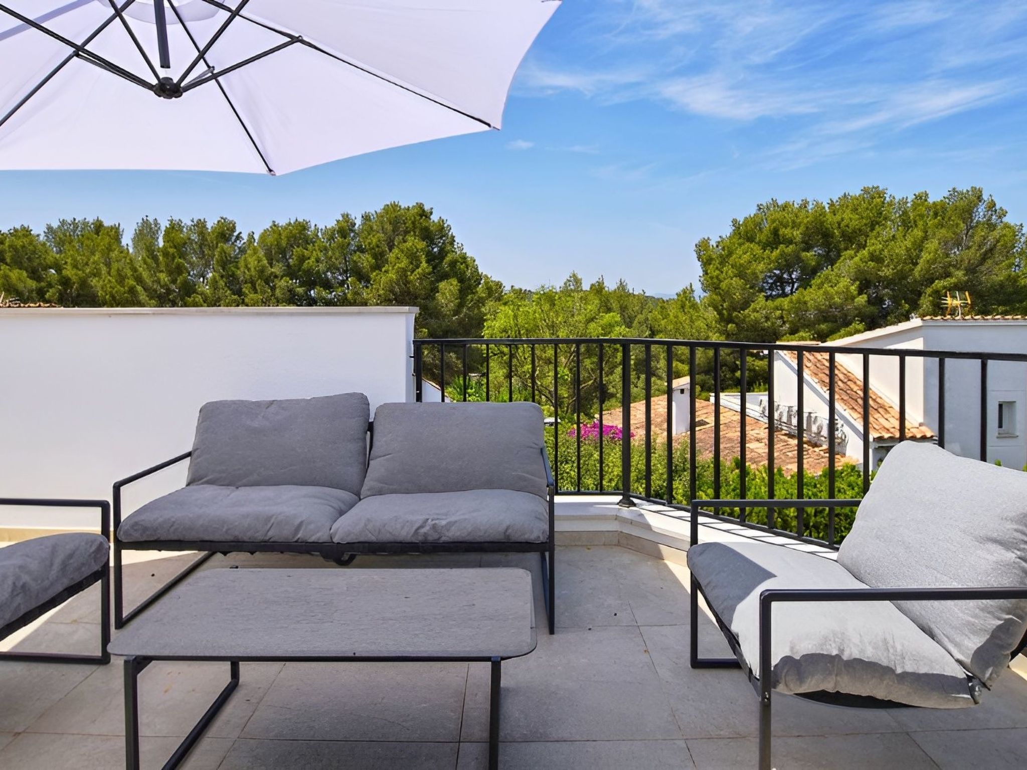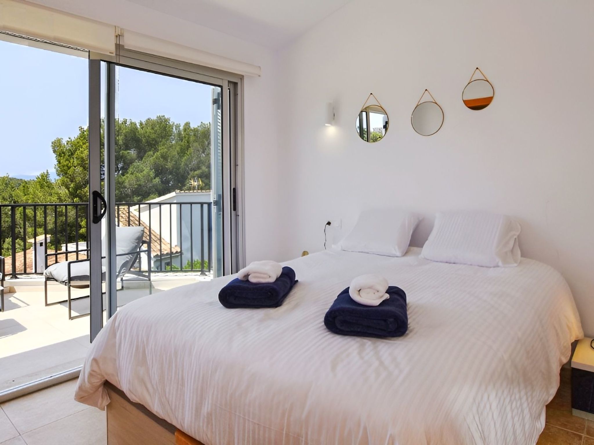 The property, located on a plot of 400 m², offers the ideal retreat. With approximately 130 m² of living space, the house offers four bedrooms on two floors (all with double beds) and two bathrooms with shower, one of them en suite. One of the four bedrooms and one of the bathrooms are located on the upper floor, ideal for those looking for even more privacy. This bedroom opens onto a small terrace with sofa set, from where you can enjoy fantastic views of the sea and the entire bay of Pollença.