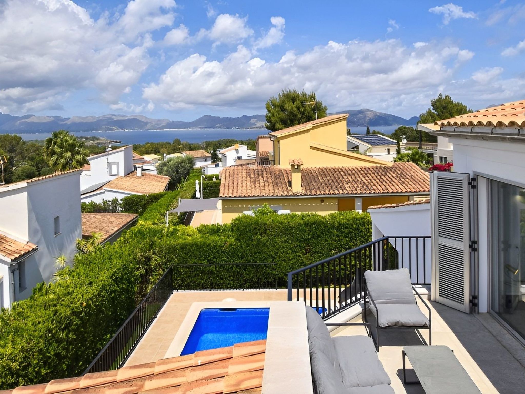 A perfect holiday home for those who are looking for a quiet holiday in an exclusive environment. The villa is located on one of the highest points of this residential area and offers spectacular views over the bay of Pollença from the cosy terrace on the floor. The famous sandy beaches of Alcudia, "Sant Joan" and "Sant Pere", are only 5 minutes away by car or, of course, on foot.
