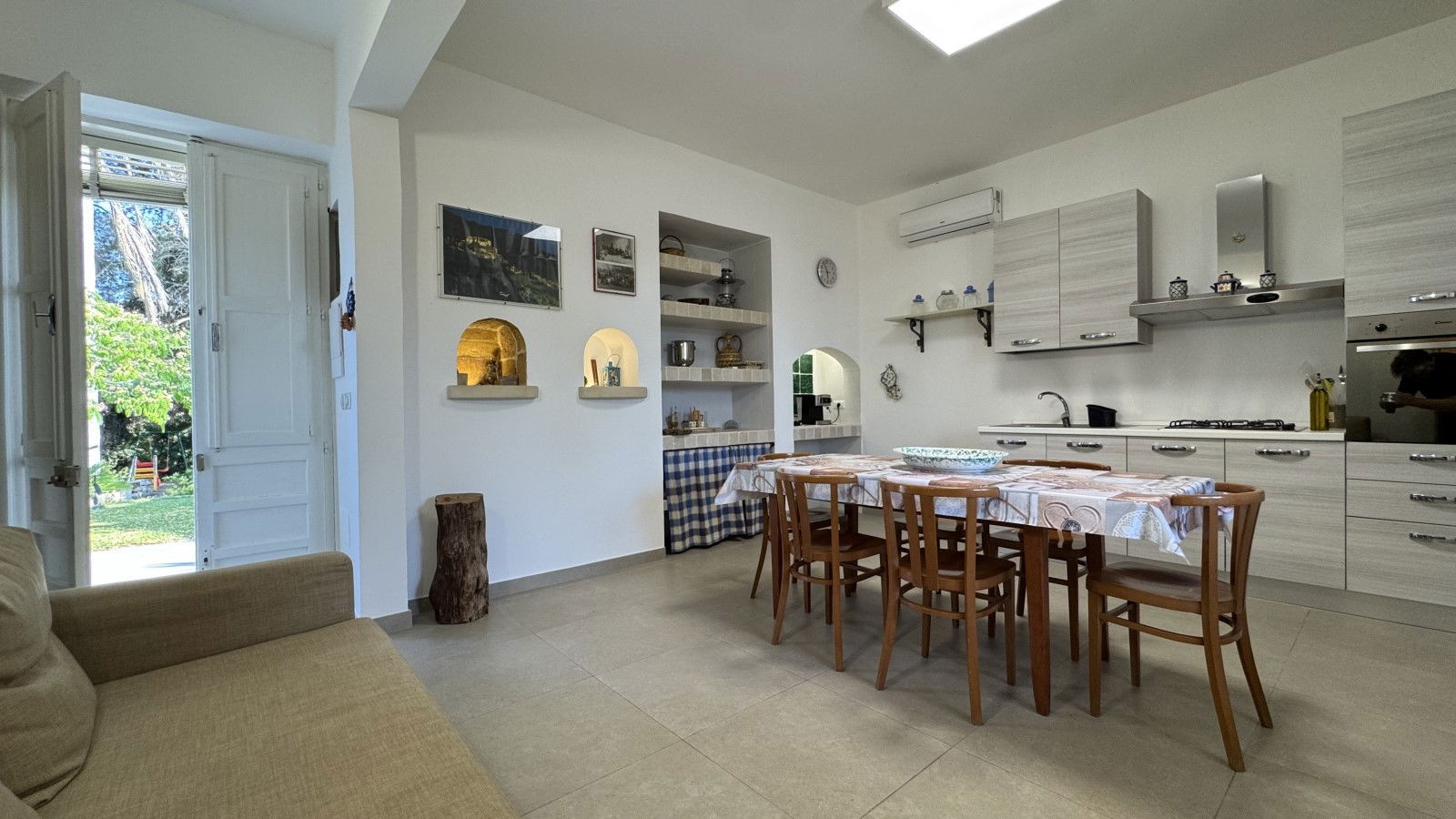 The lush and well-kept garden is a real oasis of tranquility, perfect for relaxing in the cool shade of the many trees. The veranda equipped with outdoor furniture, gazebo and barbecue allows you to organize outdoor lunches and dinners, enjoying the climate and sea air of the Ionian coast. In addition, the villa has a washing machine and a comfortable outdoor shower.