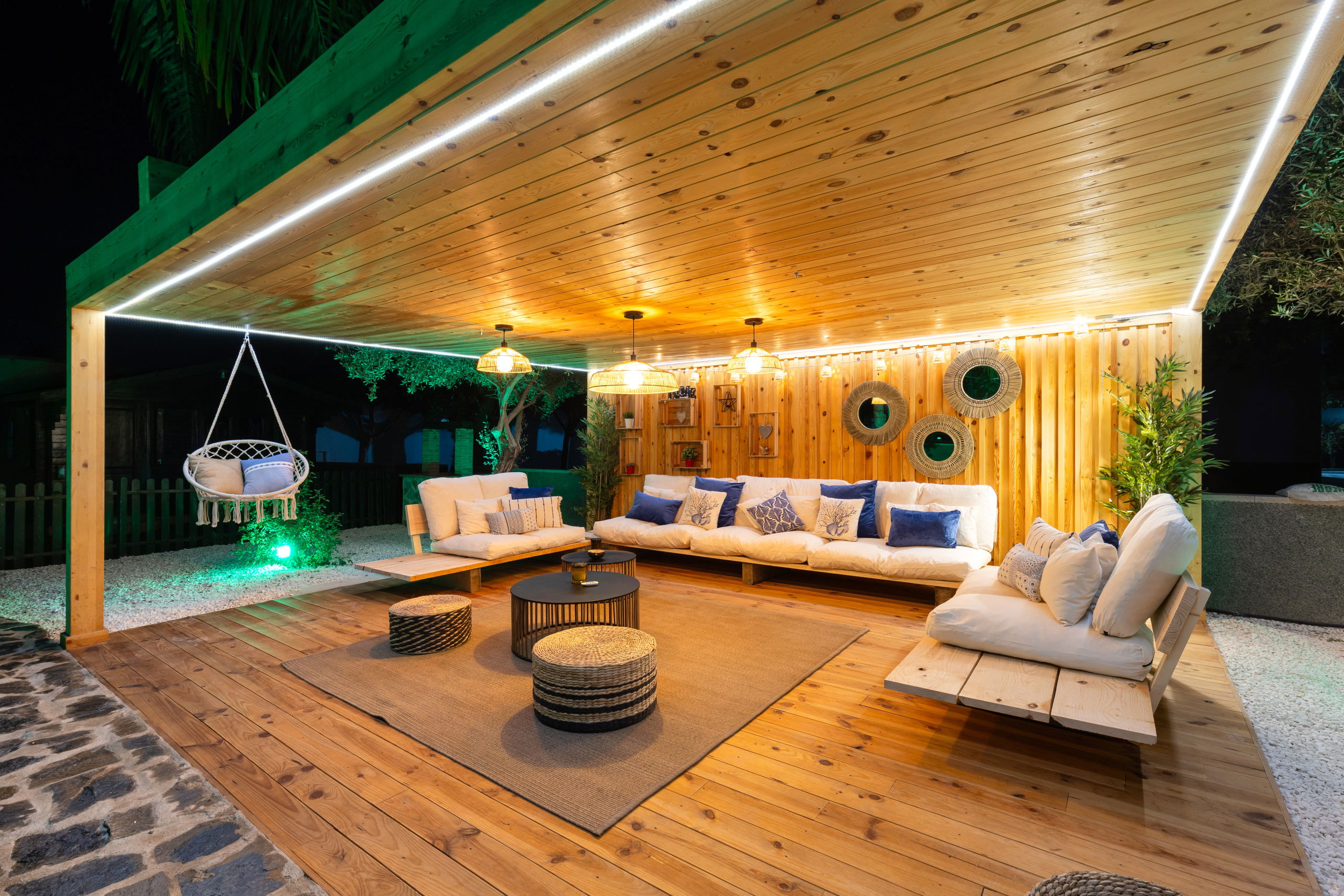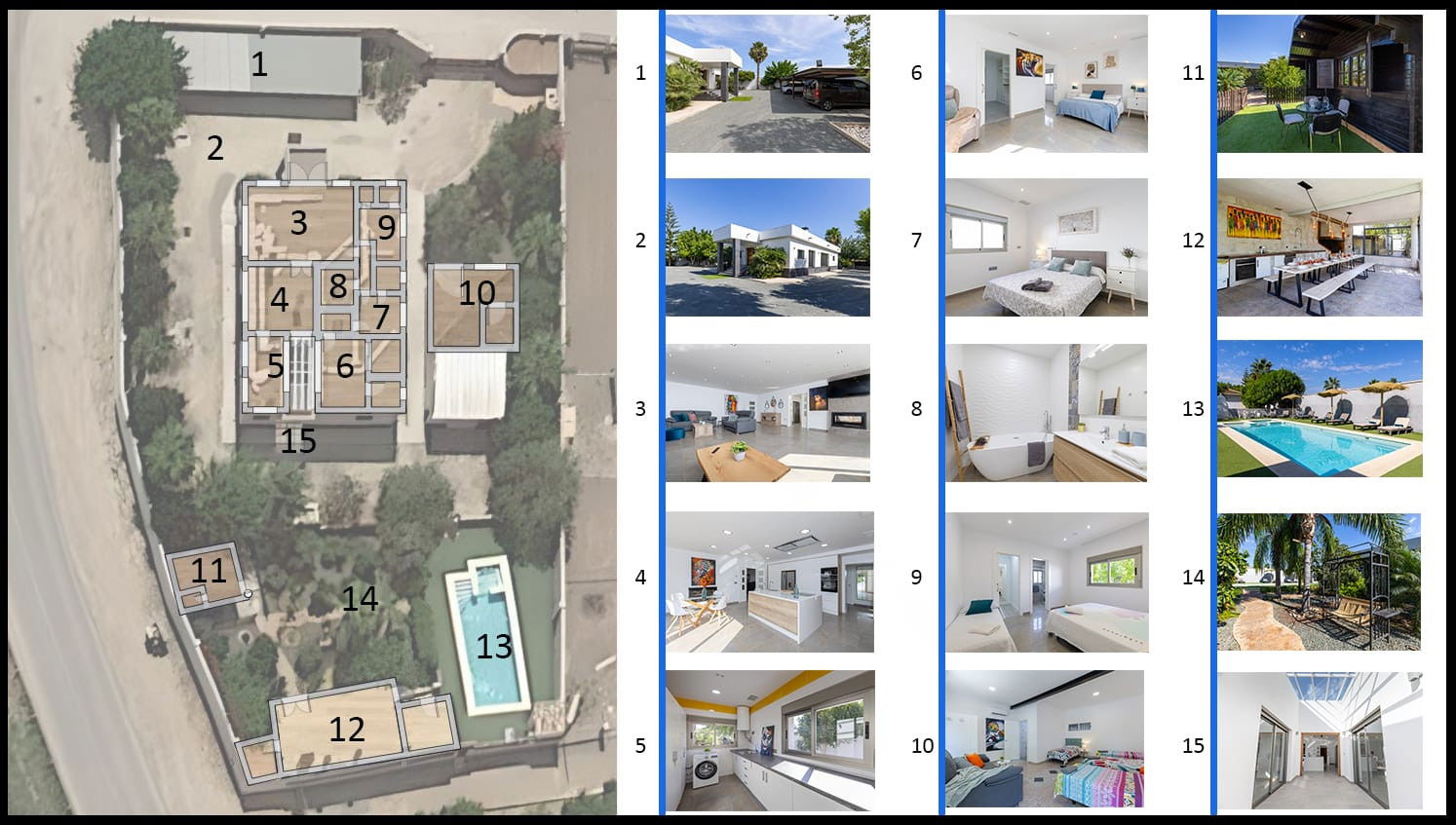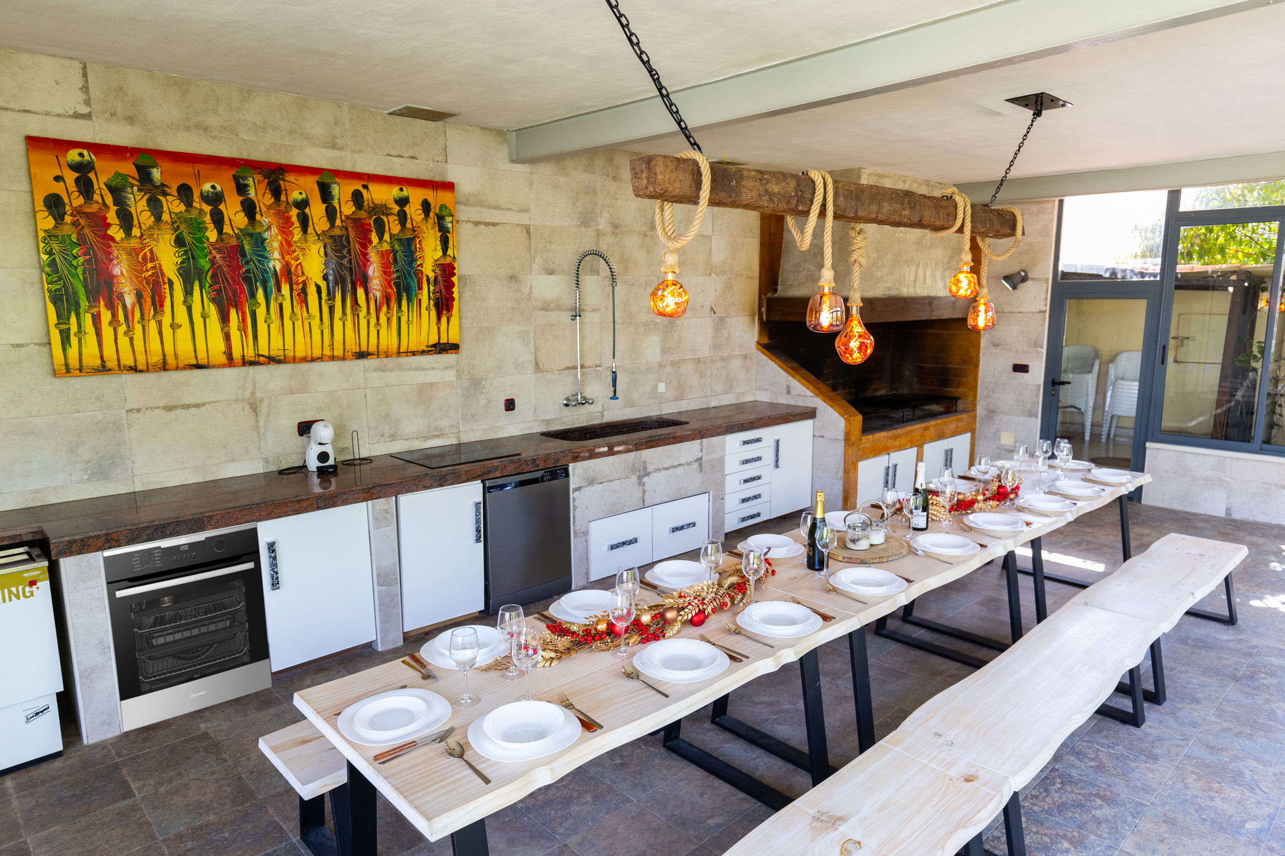 This villa offers a spacious and luxurious environment to accommodate a large group of guests. The variety of buildings and services ensures that there is something for everyone, from the main house with elegant rooms and en-suite bathrooms to the wooden house for a more rustic experience. The children's room offers a dedicated space for them, while the barbecue house and outdoor common areas make this villa an ideal place to relax and have fun.