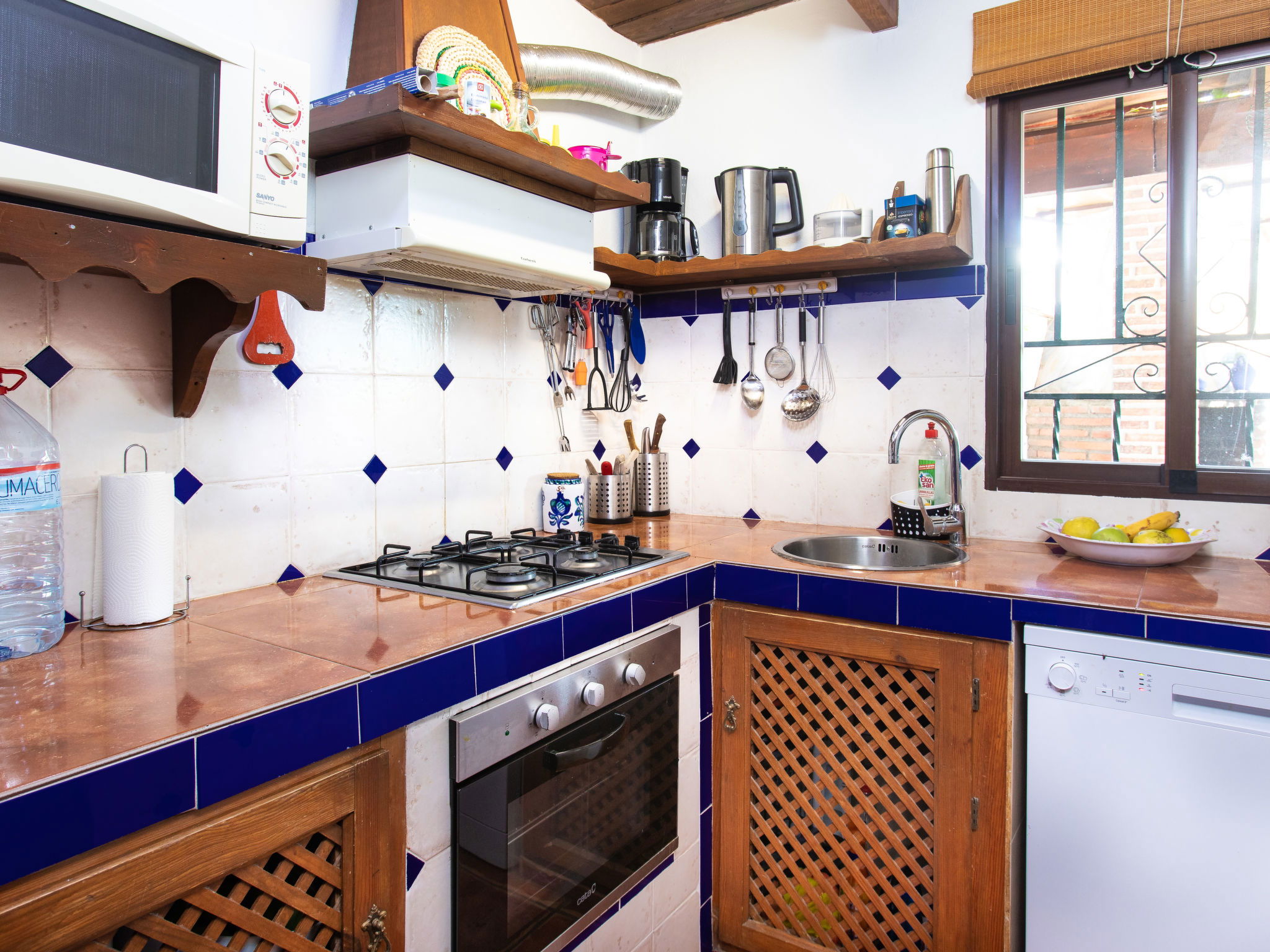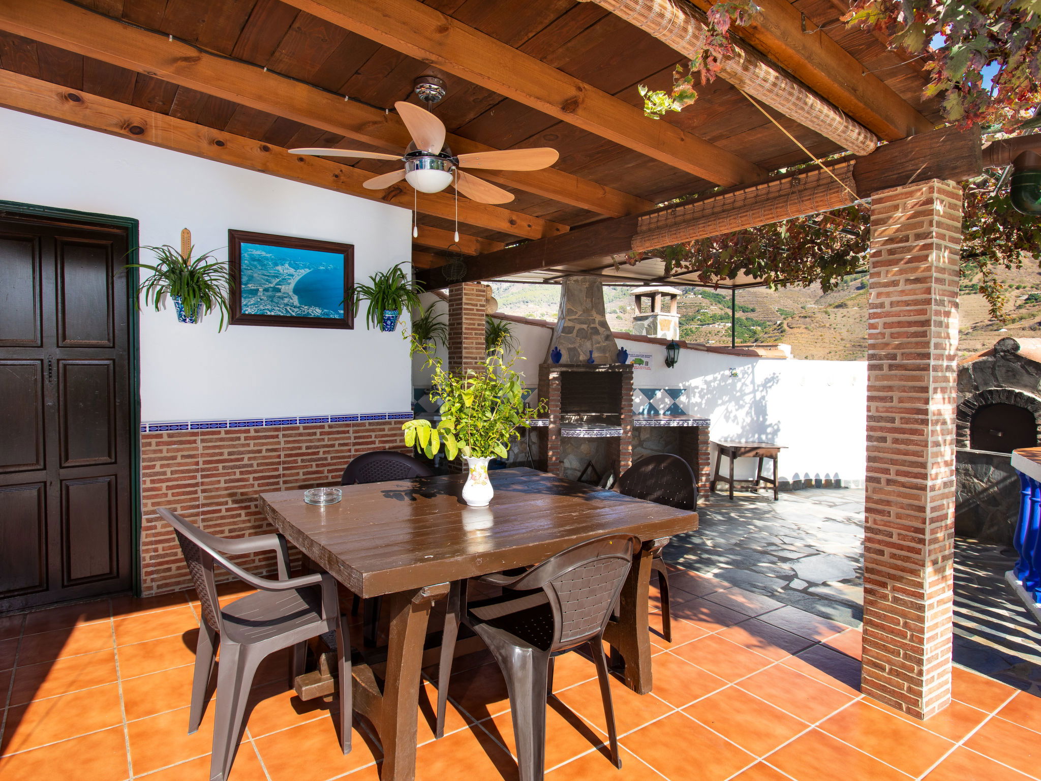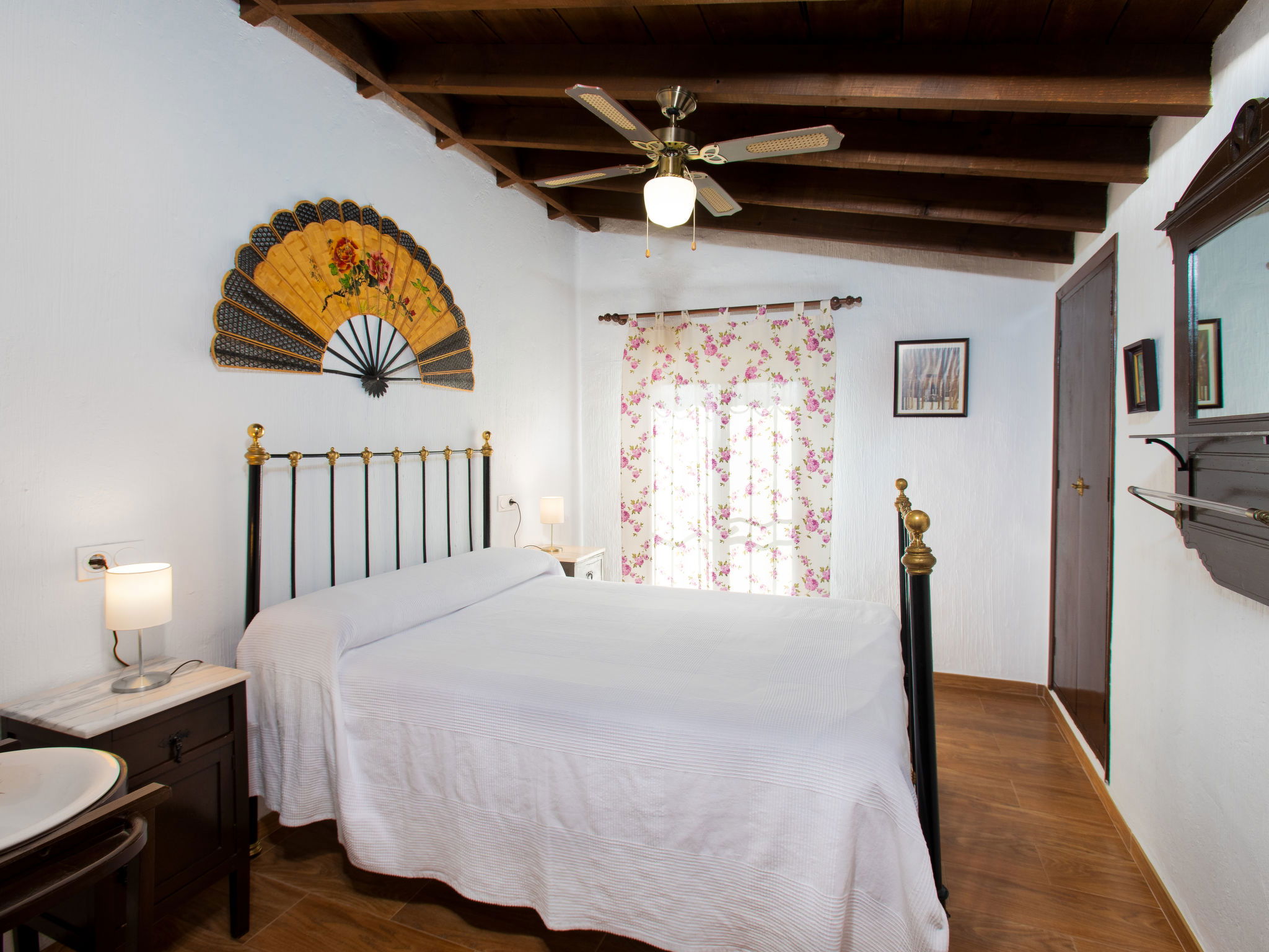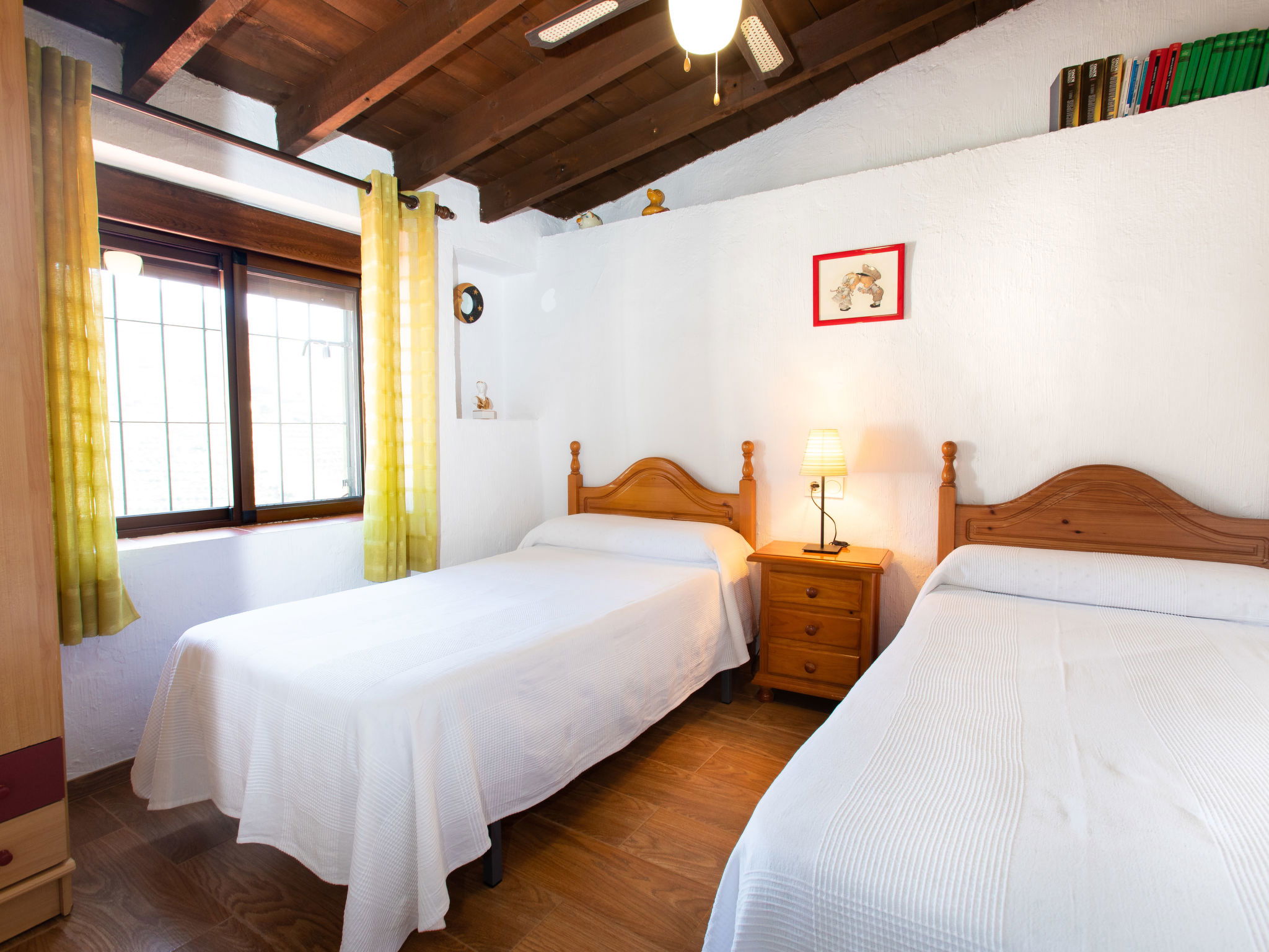 "La Cordobilla", 3-room house 70 m2 on 2 levels. Object suitable for 4 adults + 1 child. Rustic and cosy furnishings: living/dining room with open-hearth fireplace, dining table, satellite TV and fan. Exit to the terrace. Kitchen (oven, dishwasher, 4 gas rings, toaster, kettle, microwave, freezer, electric coffee machine, Capsules for coffee machine (Nespresso)). Exit to the terrace. Upper floor: 1 room with 1 french bed (135 cm, length 190 cm), fan. 1 room with 2 beds (90 cm, length 190 cm), fan. Shower/WC. Terrace roofed. Terrace furniture, barbecue, deck chairs (3). Panoramic view of the mountains. Facilities: washing machine, safe, iron, mosquito net, children's high chair, baby cot for up to 2 year olds, hair dryer. Internet (WiFi, free). Please note: 1 small pet/ dog allowed. Smoke alarm, fire extinguisher. VTAR/GR/02355