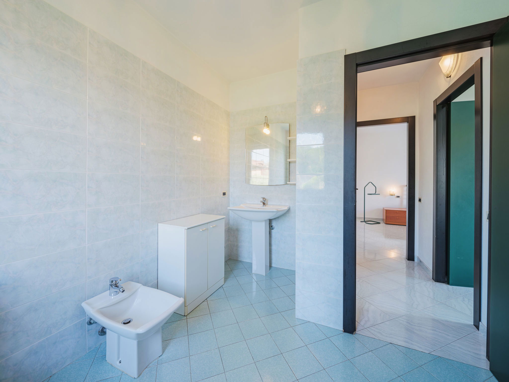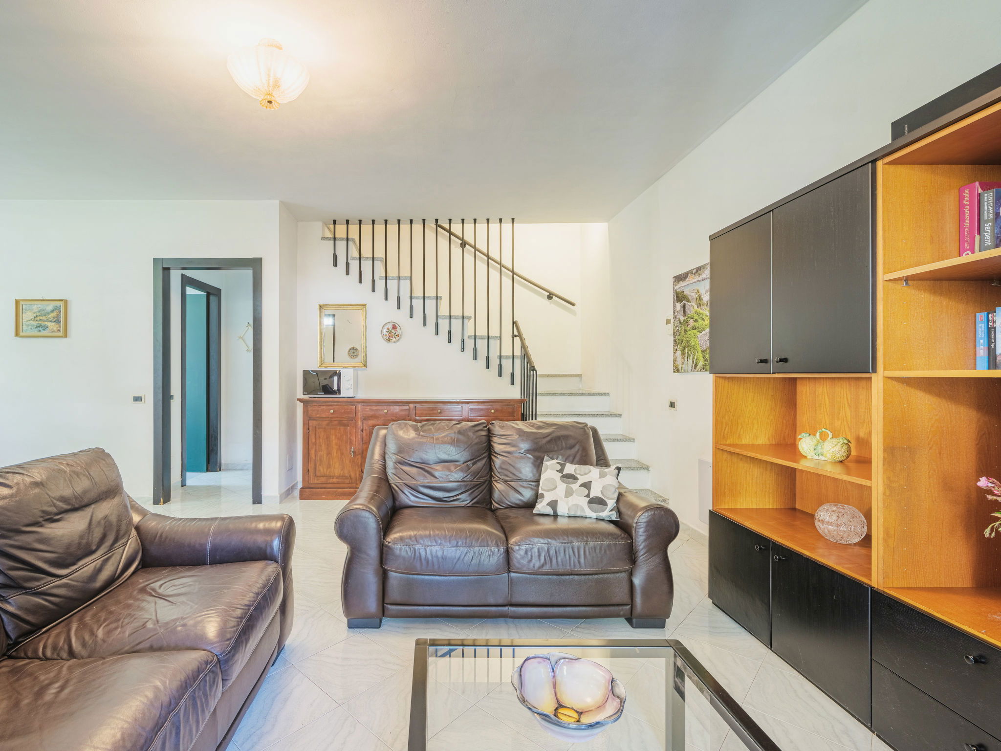 3-room terraced house 110 m2 on 2 levels. Practical furnishings: large living/dining room with satellite TV. Exit to the patio. Open kitchen (4 hot plates, oven, dishwasher, toaster, freezer). Sep. WC. Upper floor: 1 double bedroom. Exit to the terrace. 1 room with 2 beds and 1 pull-out bed. Exit to the terrace. Bath/bidet/WC. Heating. Heating available only from 01.11. to 15.04. Terrace, patio, garden 150 m2. Terrace furniture. Facilities: washing machine, hair dryer. Internet (WiFi, free). Parking (fenced 1 car). Please note: non-smoking house. Maximum 1 pet/ dog allowed. Private entrance, smoke alarm, fire extinguisher. IT011001C23F9F985R