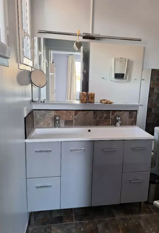 On the ground floor, the fully equipped kitchen with oven, microwave and dishwasher opens onto a bright interior, complemented by a modern shower room and everything you need for your comfort, including an iron and a hairdryer.