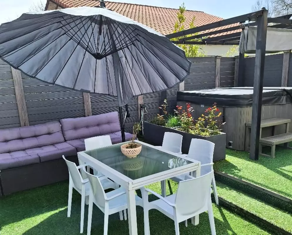 The real advantage of this accommodation is its private courtyard with a jacuzzi, perfect for your moments of relaxation, as well as a pleasant terrace bathed in light.
