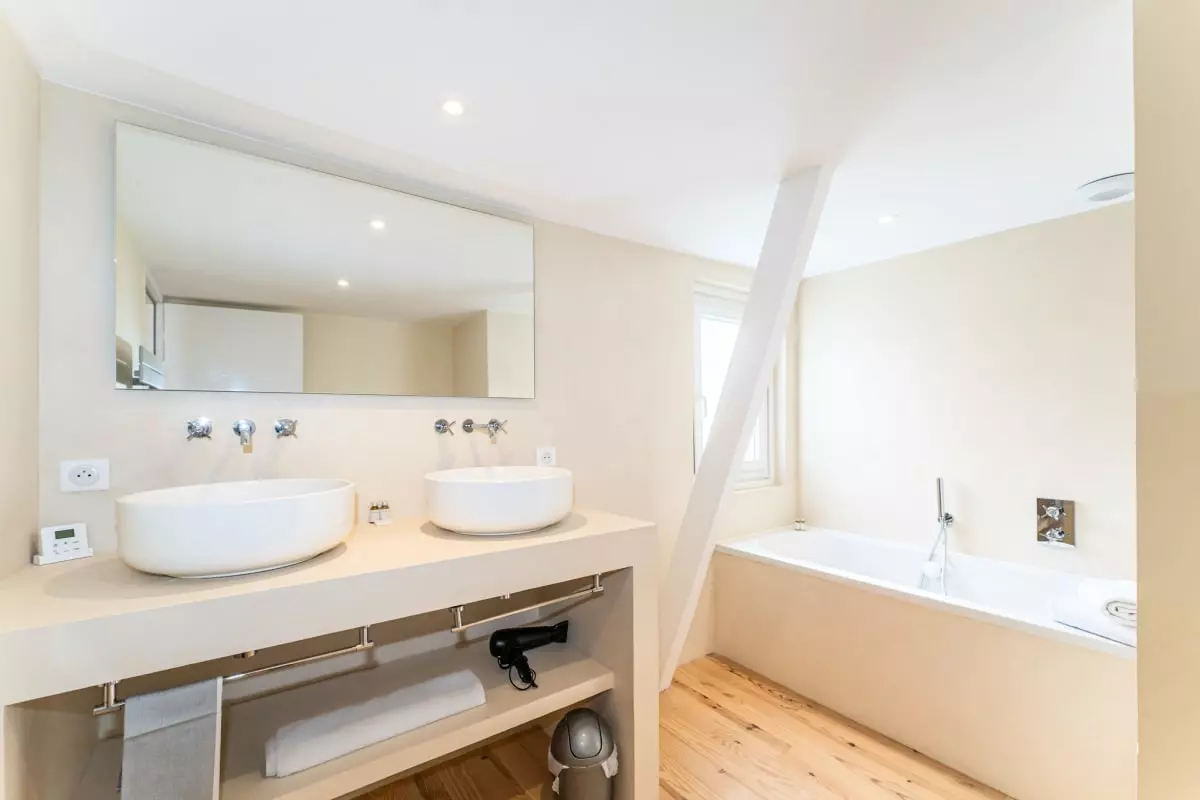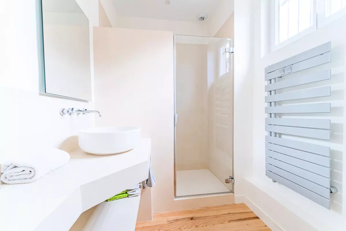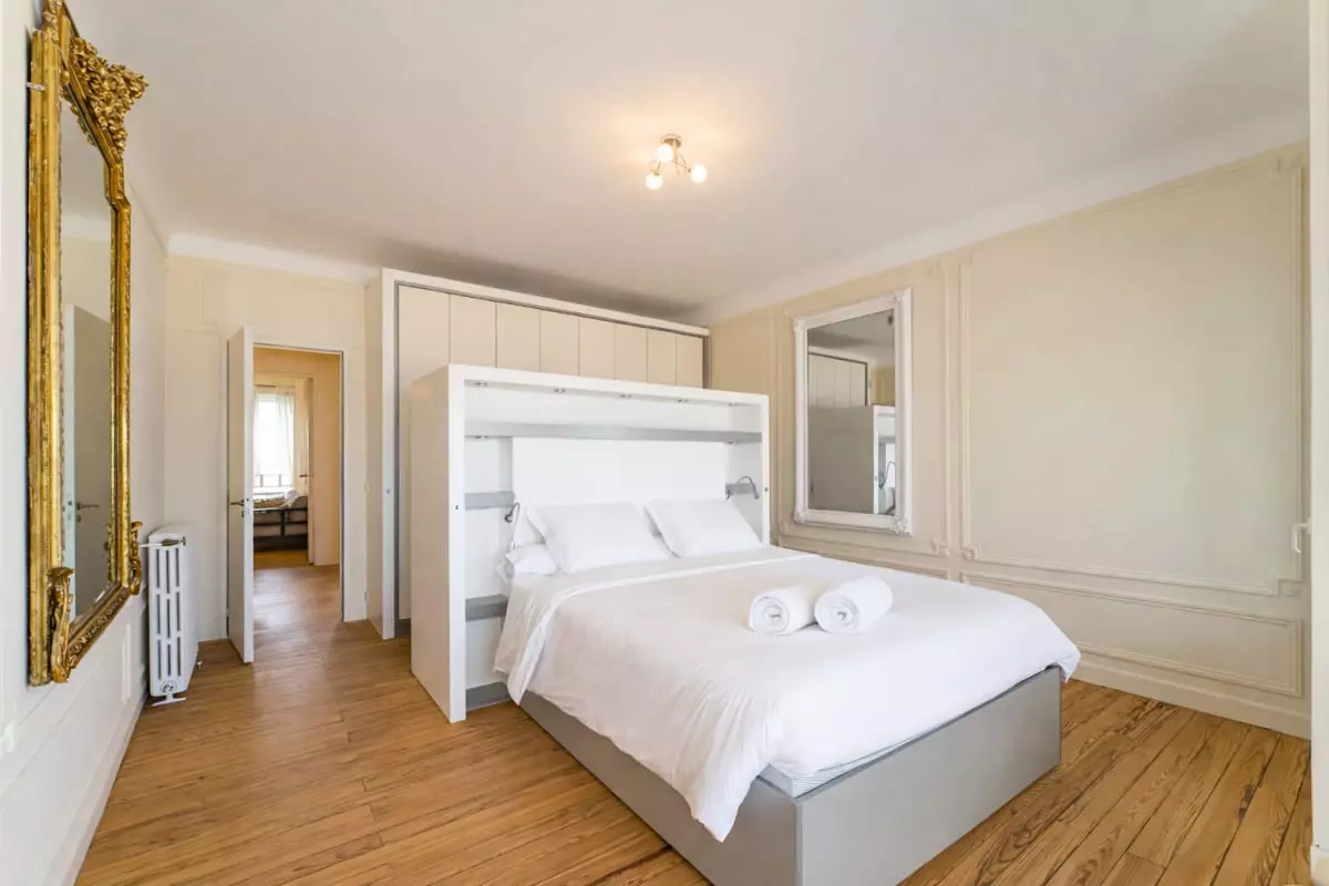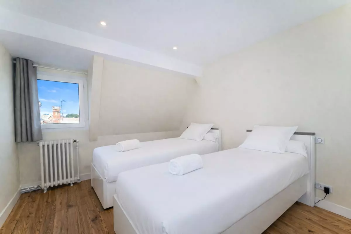The second floor serves three other bedrooms, each with a queen-size bed (160 cm). One bedroom has its own private bathroom, and the last bathroom is shared by the other two.