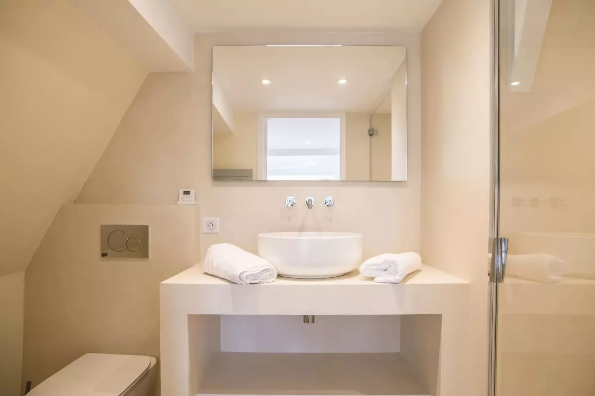 Then access the 1st floor where you will find a superb master suite offering a sea view, with a queen size bed (160 cm) and private bathroom, with shower. Two additional bedrooms are added on this level, the has a queen size bed (160 cm) and the second 2 beds *90 with its own private bathroom.