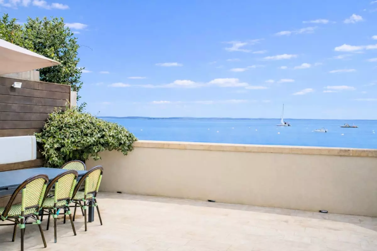 The third and final terrace is accessible by a staircase and overlooks the beach, allowing you to get there instantly thanks to direct and private access.