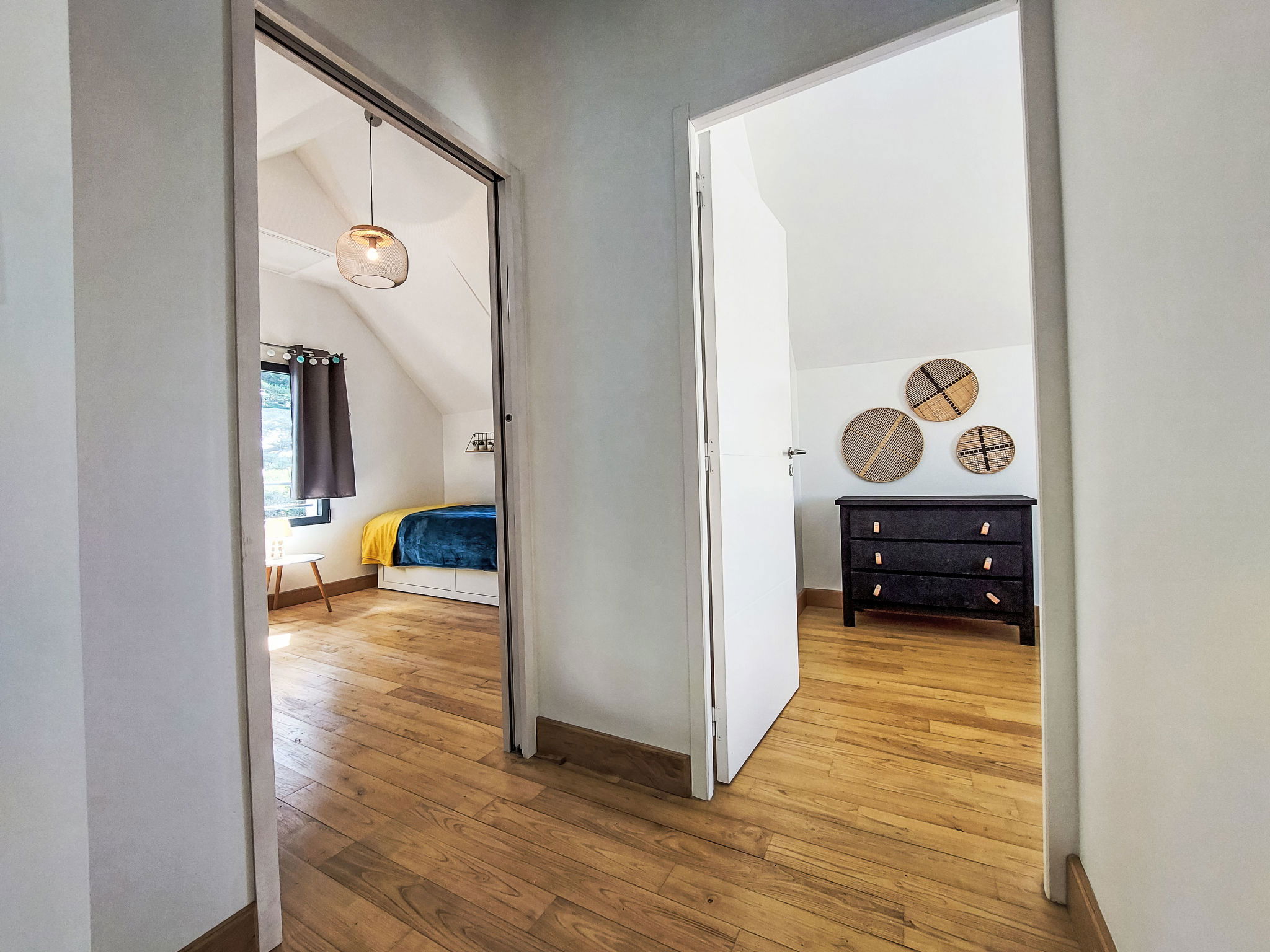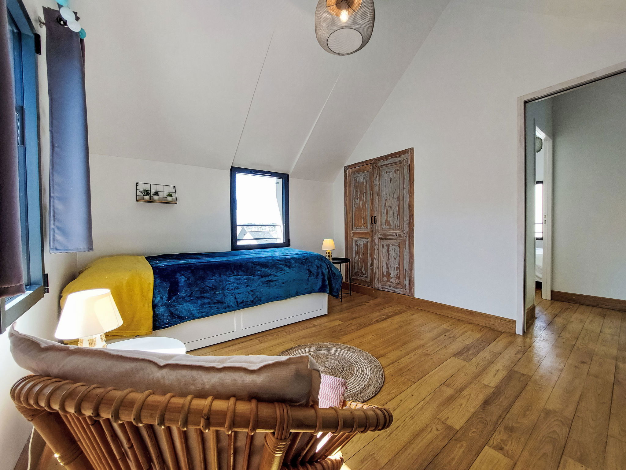 "Er Blei Mor", 4-room house 80 m2 on 2 levels. Very beautiful furnishings: living room with Scandinavian wood stove and TV (flat screen). Exit to the terrace. 1 room with 1 french bed (160 cm, length 200 cm), shower/WC. Open kitchen (oven, dishwasher, 3 induction hot plates, toaster, kettle, microwave, freezer, electric coffee machine). Exit to the garden. Upper floor: 1 room with sloping ceilings with 1 pull-out bed (2 x 80 cm, length 200 cm). 1 room with sloping ceilings with 1 french bed (140 cm, length 200 cm). Shower/WC. Electric heating. Small terrace, south-east facing position, large terrace, north-west facing position. Terrace furniture, barbecue (portable), deck chairs (2). Facilities: washing machine. Internet (WiFi, free). Please note: non-smoking house. Maximum 1 pet/ dog allowed. Smoke alarm. Offer by a private individual according to Art. 155, IV of CGI.